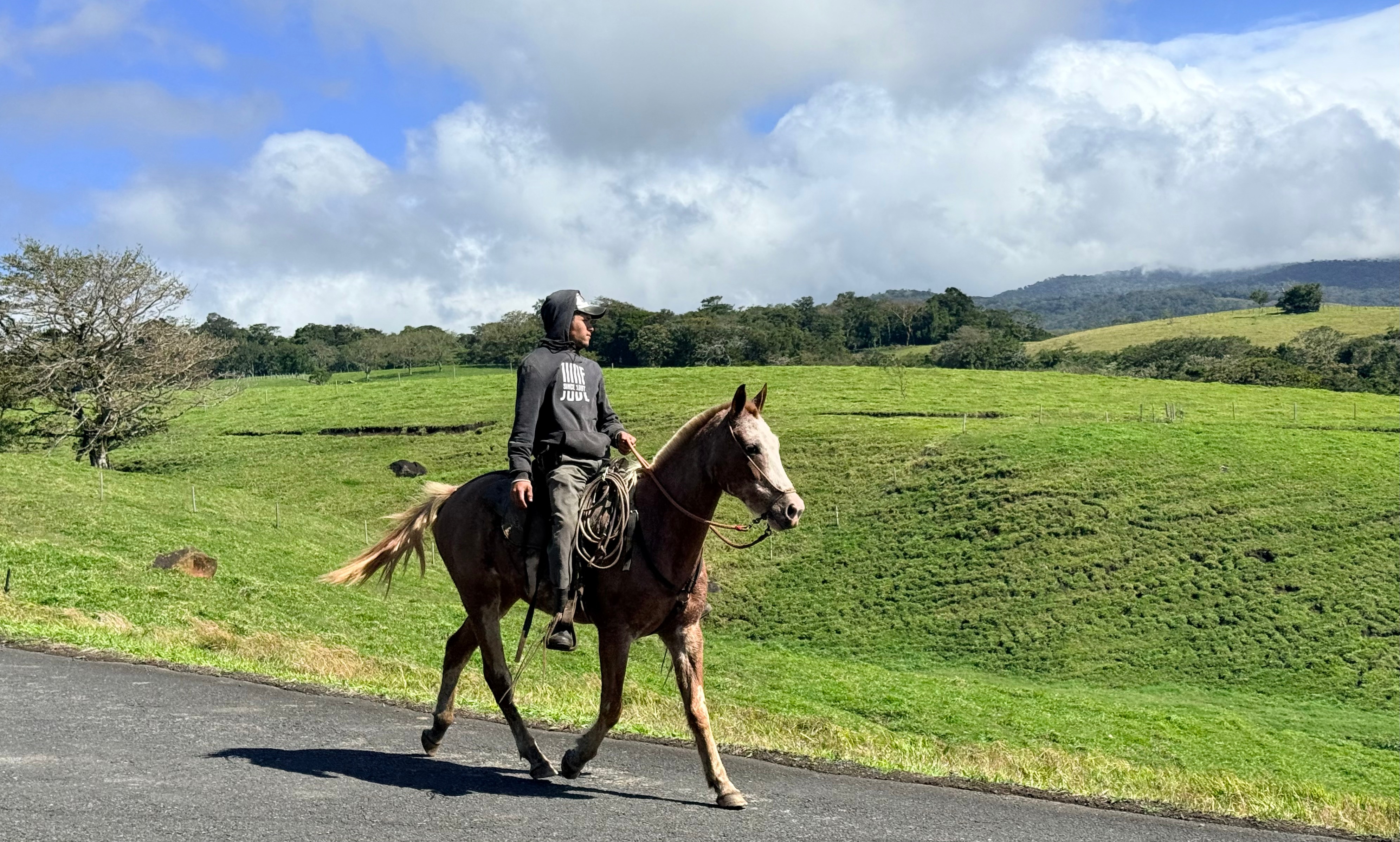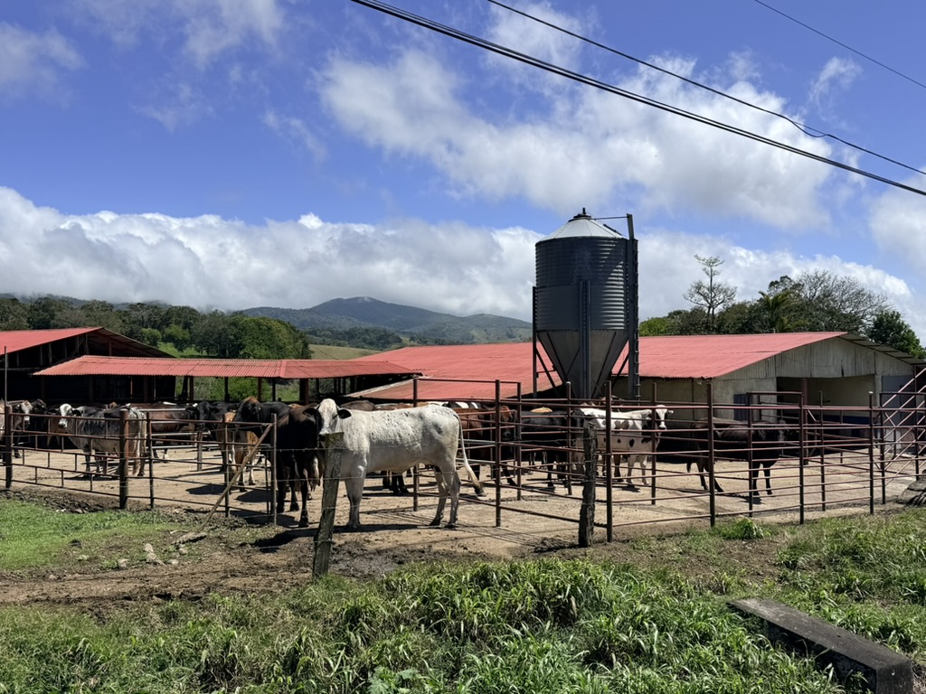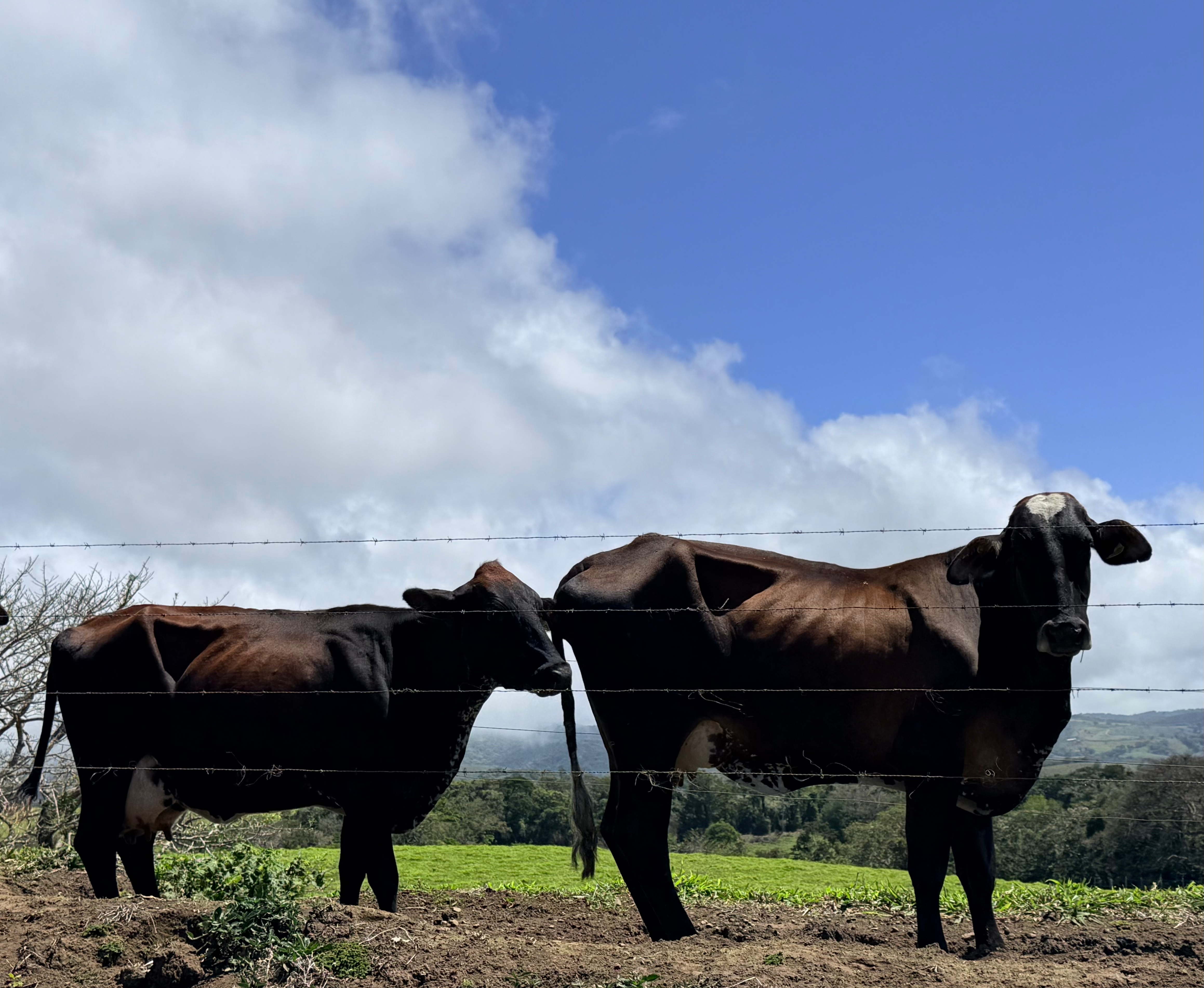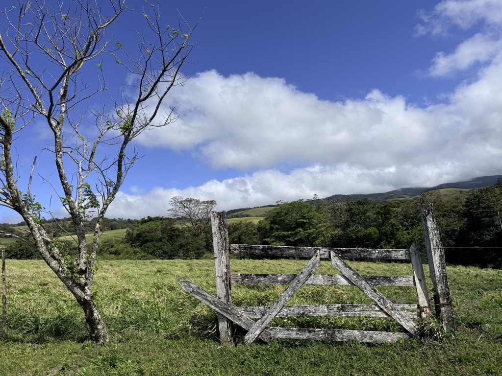 After getting birthday calls via WhatsApp from both Sarah and Adam, we walked up near Sabalito where we watched the dairy cows lining up to be milked. It was breezy and sunny, and the scenery was magnificent.