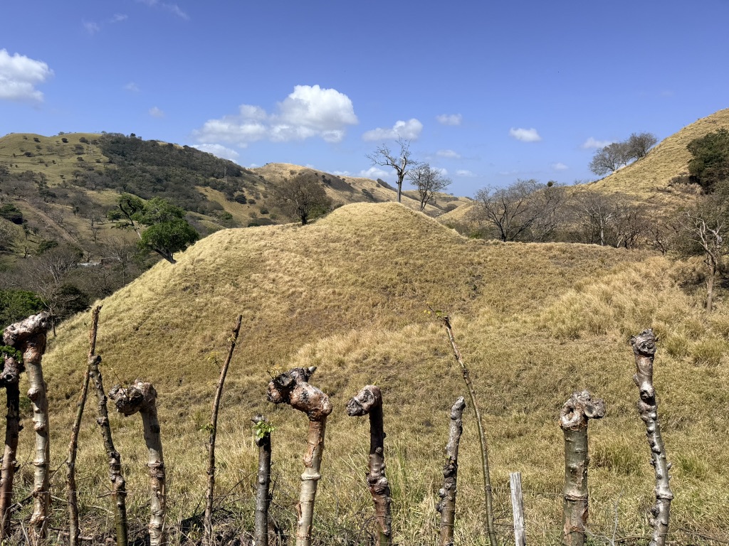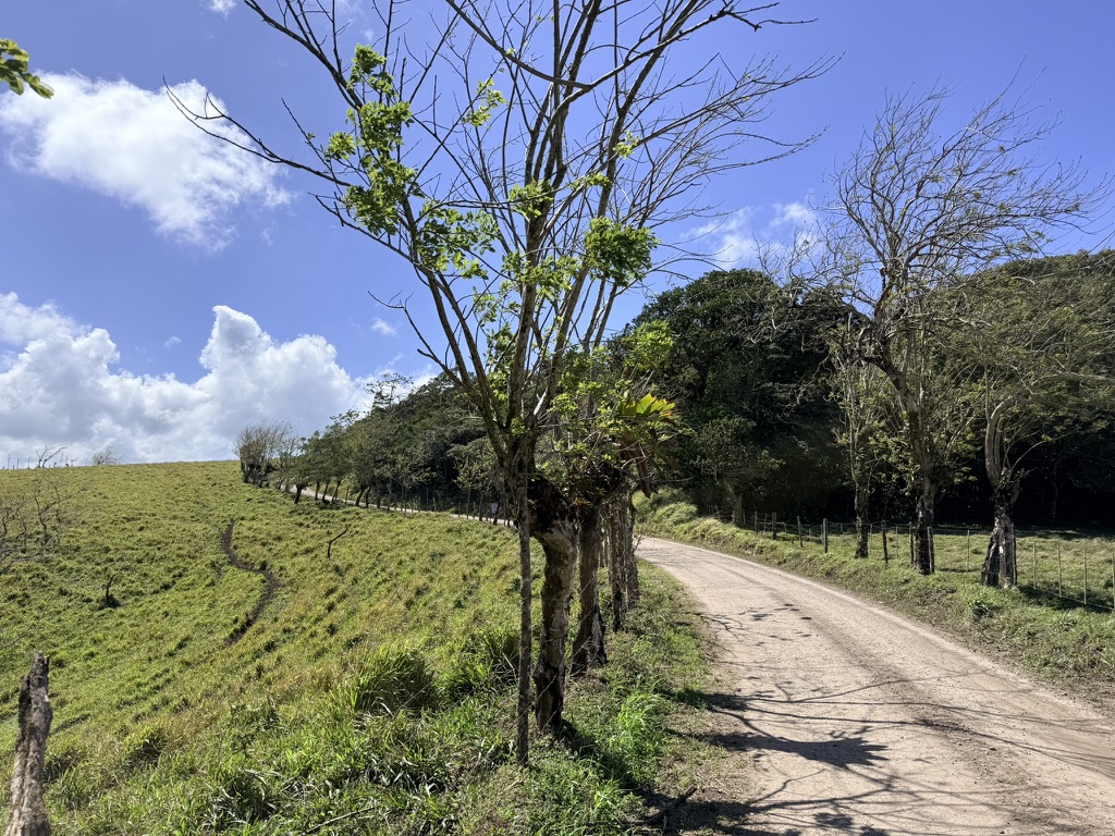 Because of cold, rainy, and windy weather, we were only able to walk a few times this month. On Tuesday the 3rd, we walked around Tronadora and on Saturday morning the 7th, we walked uphill from Sabalito toward the ridge, past the dairy farm and to amazing views toward the Pacific coast. The wind was blowing like crazy and we could barely keep our hats on. But for once, we enjoyed a gorgeous blue sky. Once Sarah left to return home, we walked on the gravel road near the pickleball courts.