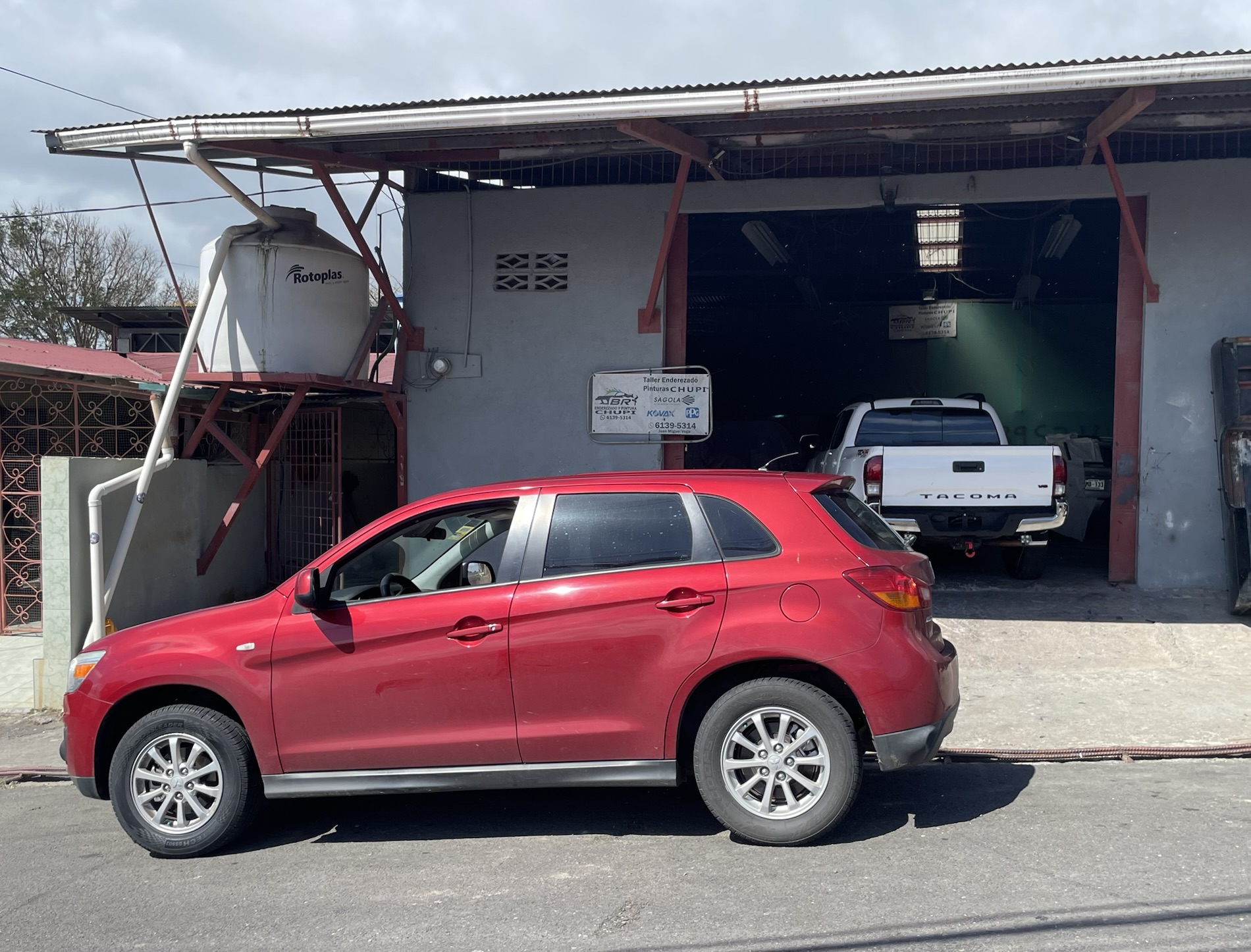 Mike got two new tires for our Mitsubishi one day. At the end of the month, we dropped the car at Taller Enderezado Pinturas Chupi (Body Repair Shop Painting Chupi) for two days to have the dent fixed from when Mike backed into a tree in Samara.