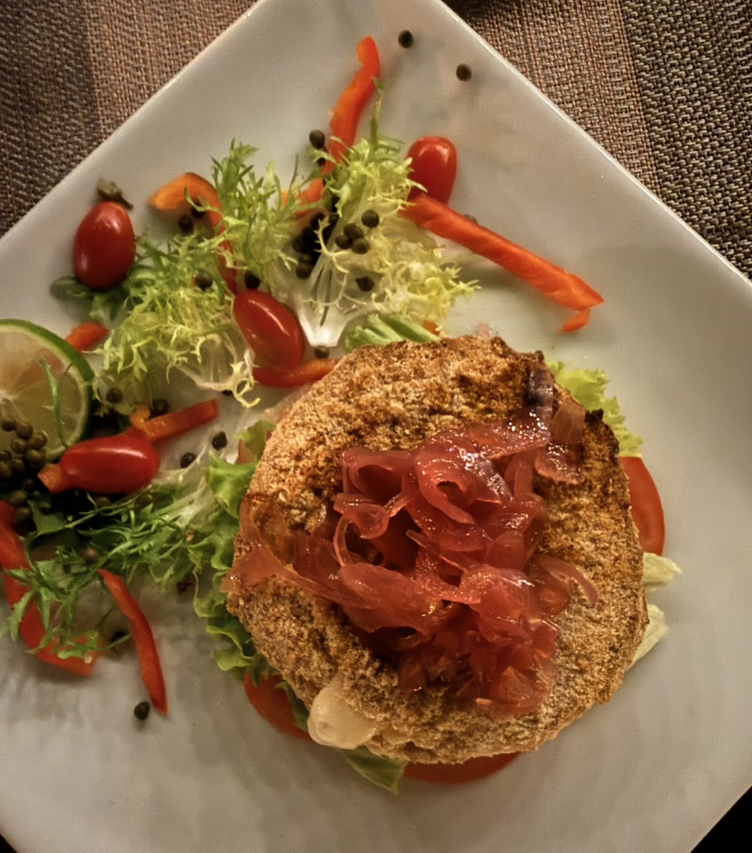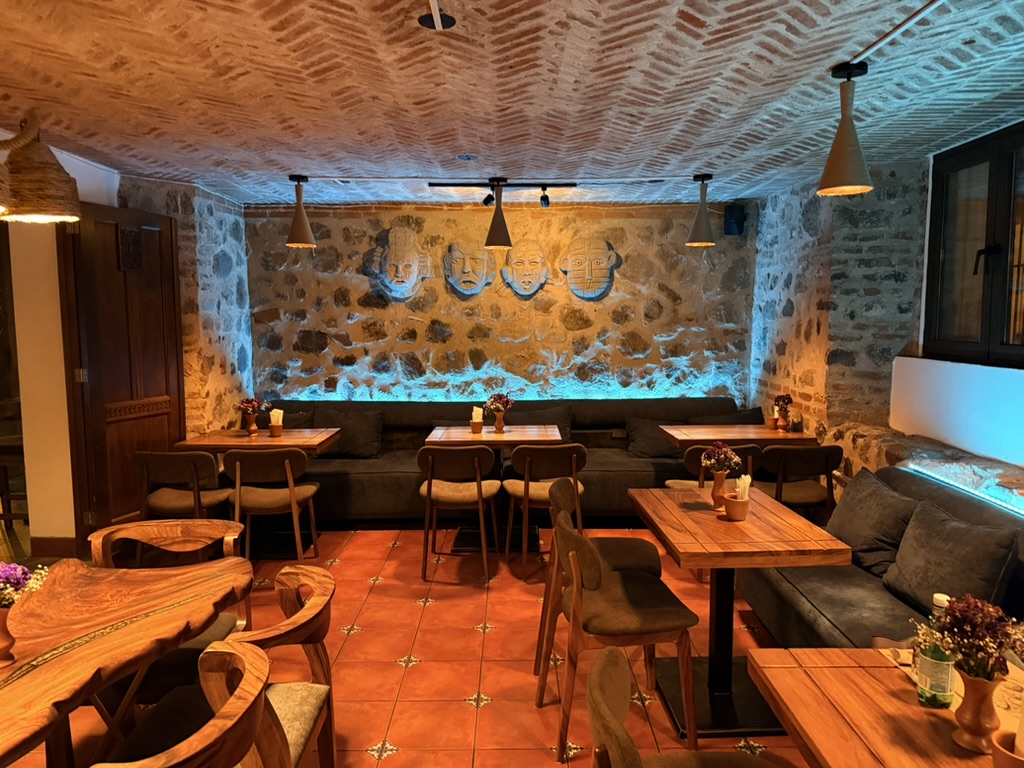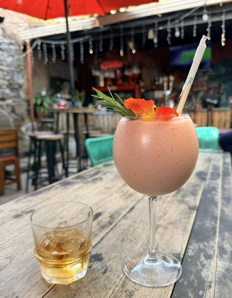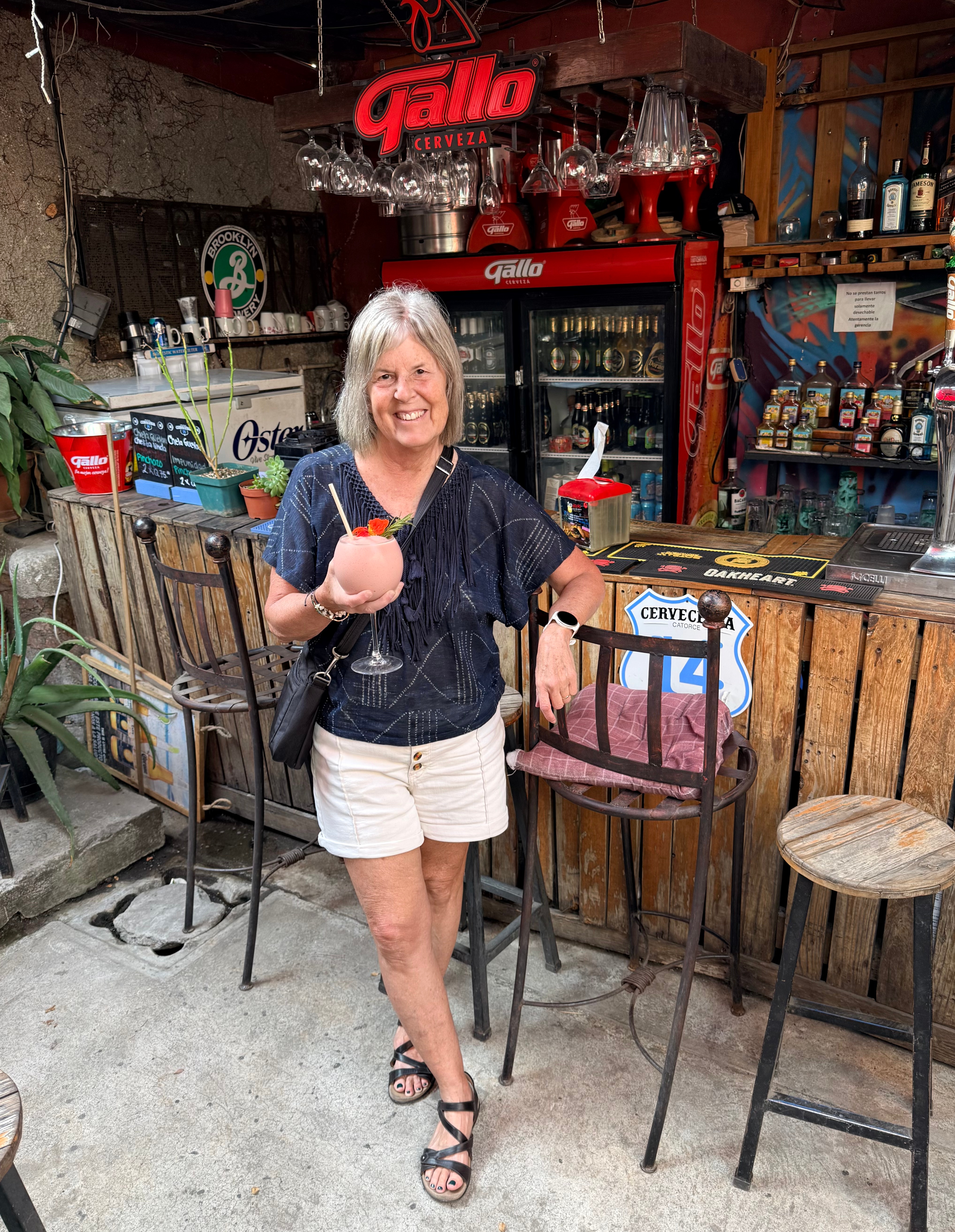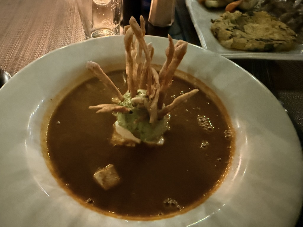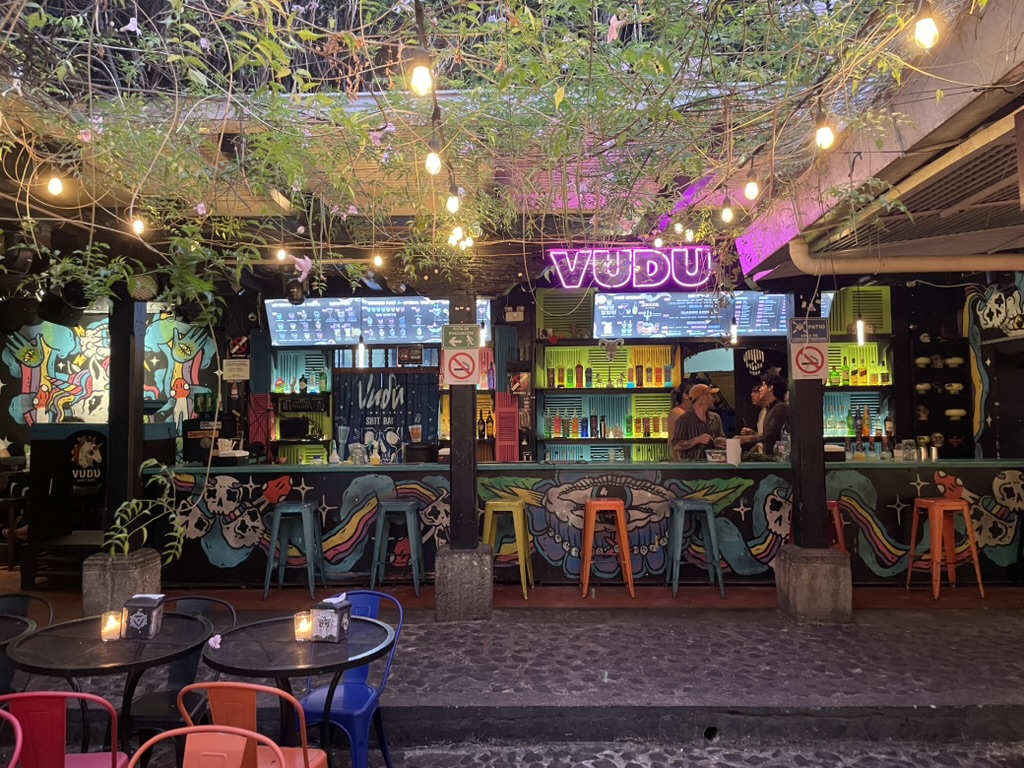 Last but not least was the coffee and the food scene that arose from the ashes of Antigua. Coffee shops abound and we stopped in them whenever we needed a break. We drank the local Gallo beer. We shared Baked Camembert with Onion Chutney, Sopa de Tortilla and pork ragout alongside a gurgling fountain in the courtyard of Las Antorchas (The Torches). At Seth and Joel’s recommendation, we ate tacos at Tacos La Loteria at a colorful food court. We stopped twice at a little bar called Red Zebra where I drank a decadent Fresa Colada (Strawberry colada) while Lost Frequencies sang “Black Friday (pretty like the sun)” and “Are you with me?” The second time I went lighter with a glass of wine to the tune of “Prayer in C” by Lillywood & the Prick & Robin Schulz. We gobbled up a Cactus (Nopal) Wrap with chicken and a Veggie Quesadilla at Union Cafe. And finally, we had authentic Mayan cuisine at Itzam: corn croquettes with Iguashte Sauce and Guatemalan BBQ (Churrasquito), and for dessert a Tamalito, neatly presented in a slit-open corn husk.