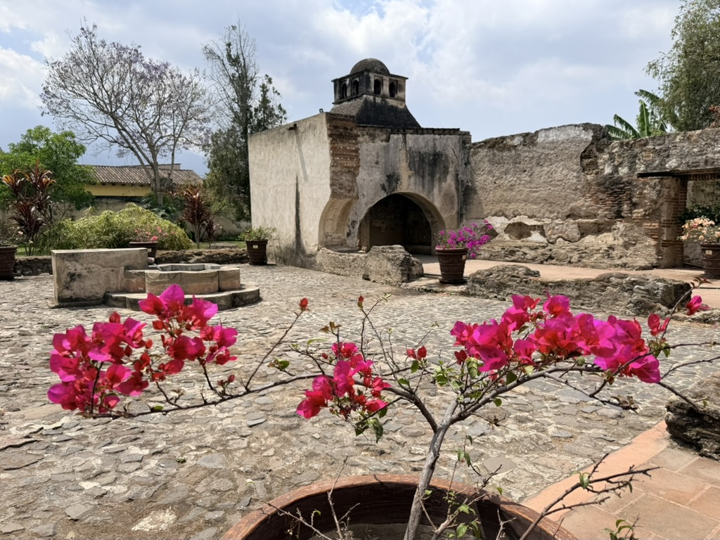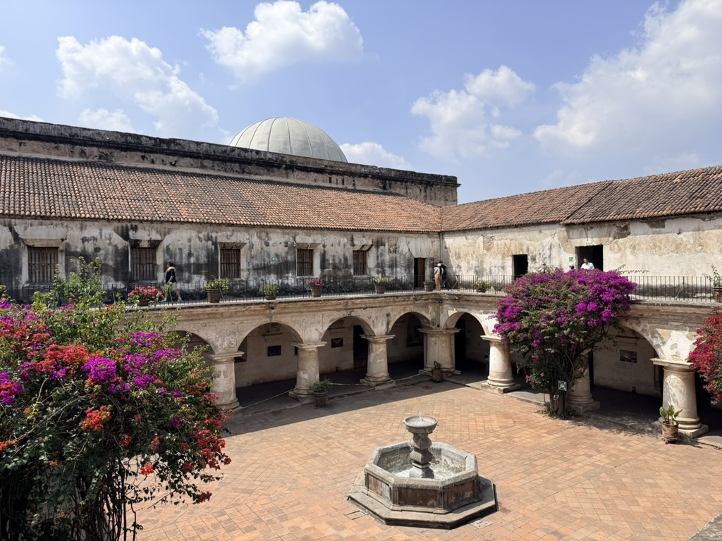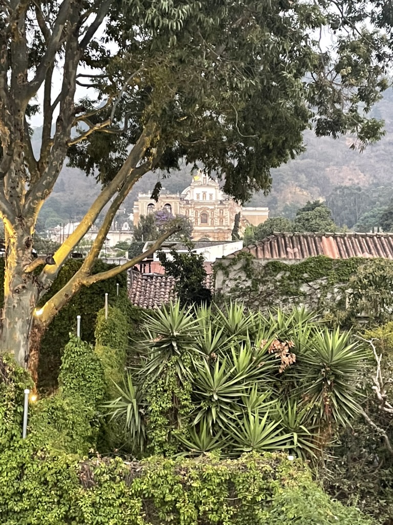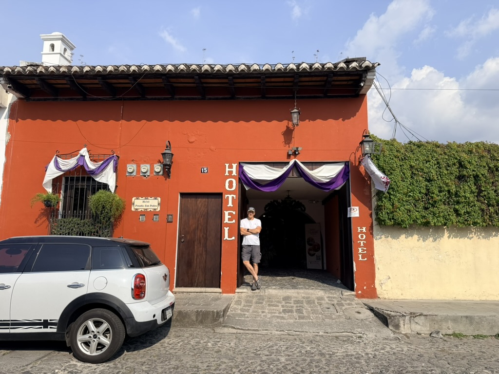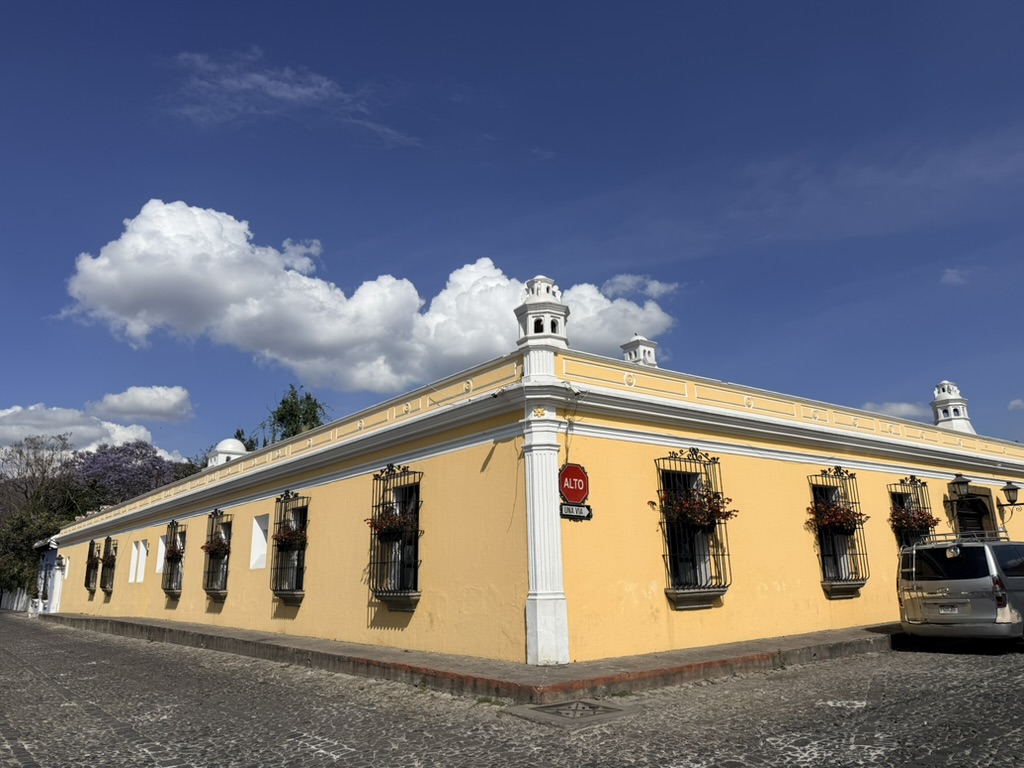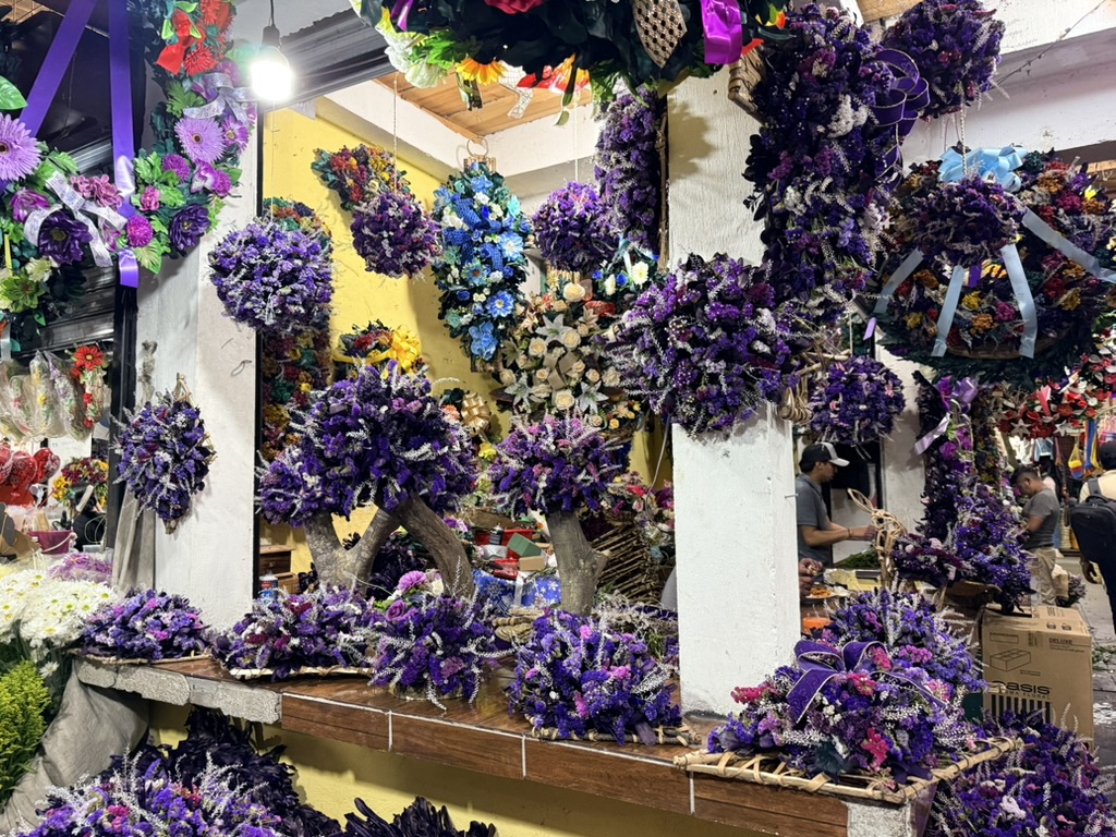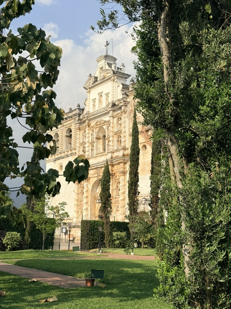 I finally figured out that Antigua is a place that takes the Lenten season (Cuaresma) seriously. Things apparently gear up during Semana Santa, but we decided after being in Colombia during Semana Santa in 2024 that we’d never again travel in Latin America during Easter Week. But it was special to be in Antigua during the Lenten season. Everything was draped in purple – statues, icons, church interiors, crosses, windows – as a symbol of mourning and anticipation of Christ’s passion. Even the jacaranda trees knew the right time to unfurl their purple blossoms. The liturgical color represents penance, mourning, humility, and spiritual reflection leading up to Easter.