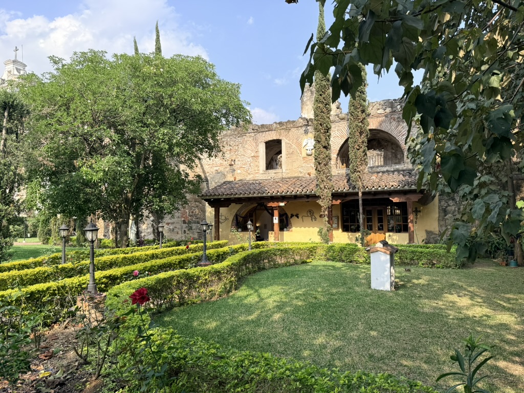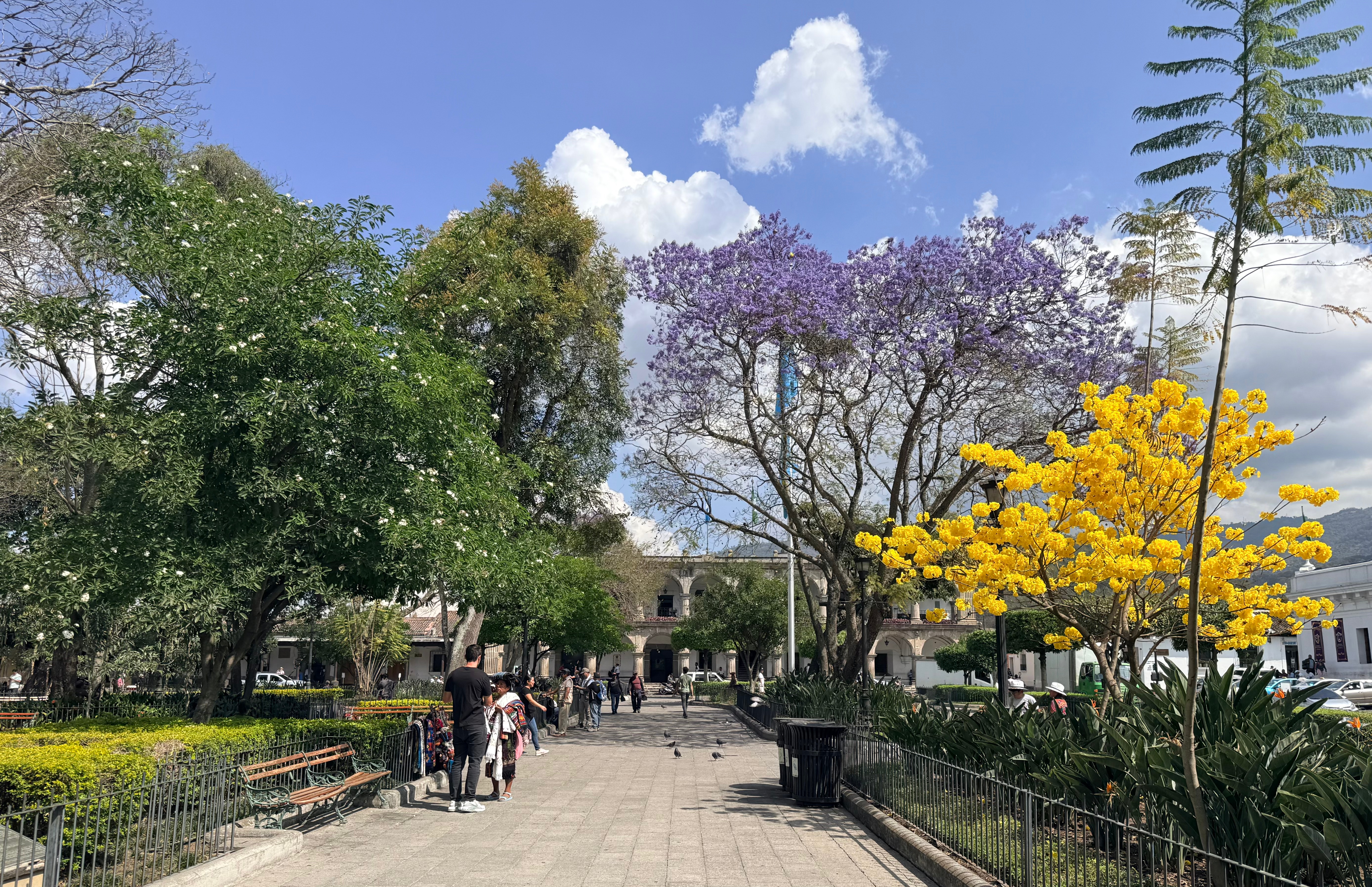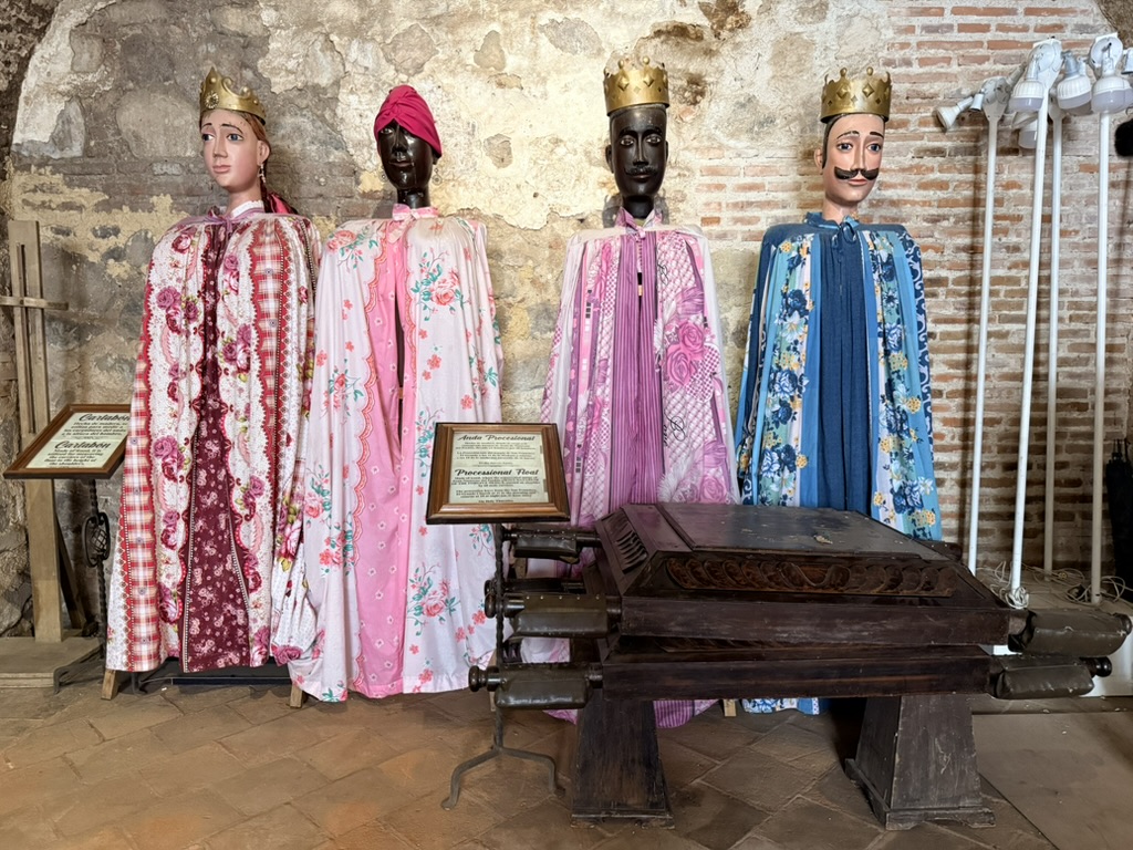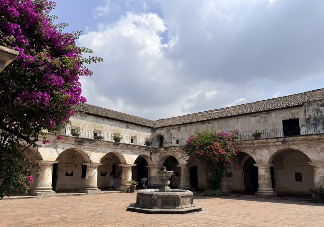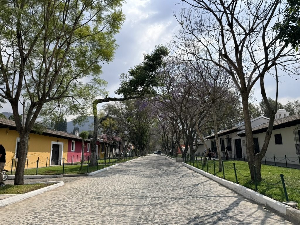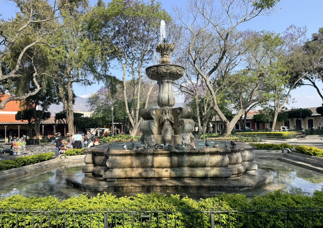 I finally figured out that Antigua is a place that takes the Lenten season (Cuaresma) seriously. Things apparently gear up during Semana Santa, but we decided after being in Colombia during Semana Santa in 2024 that we’d never again travel in Latin America during Easter Week. But it was special to be in Antigua during the Lenten season. Everything was draped in purple – statues, icons, church interiors, crosses, windows – as a symbol of mourning and anticipation of Christ’s passion. Even the jacaranda trees knew the right time to unfurl their purple blossoms. The liturgical color represents penance, mourning, humility, and spiritual reflection leading up to Easter.