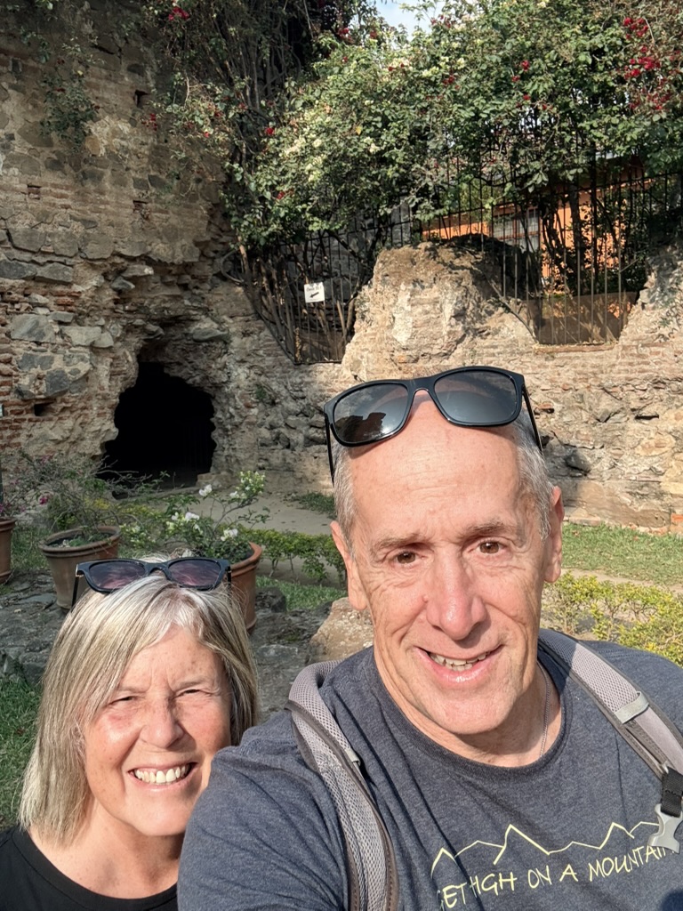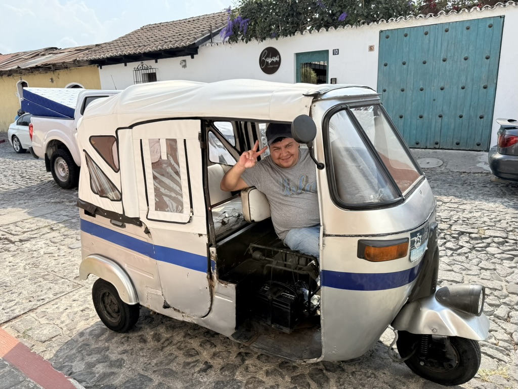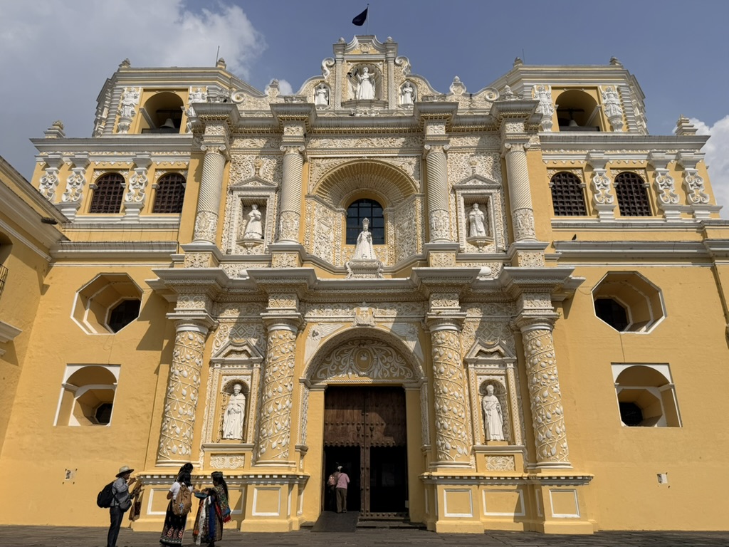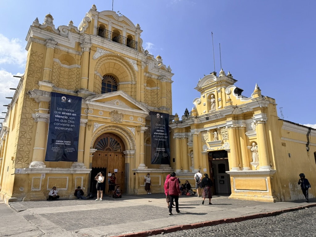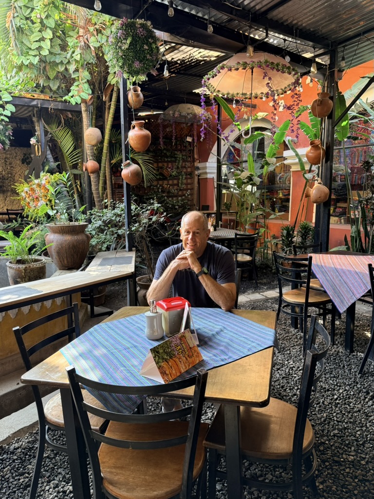 We found penitants “walking” on their knees up the aisle of the beautiful Iglesia Merced, clutching the end caps of the pews as they inched along. Whenever Mike and I go into a church, we sit on a pew and say prayers. Despite the fact that I don’t consider myself religious in the way of organized religion, I do believe in the power of prayer. I watched the penitents scoot up the aisle, knowing they must be in pain, and offered up prayers for these unknown Guatemalans. I also prayed for our continued safe travels, for the halting of endless wars, especially the ongoing Ukrainian war and the current war against Iran (a completely unnecessary war), and for an end to the hatred that infests the world and that our feckless leaders enflame. I prayed for our family members, and especially for my youngest brother, who entered the hospital the day before we left for Guatemala because he was experiencing pain in his leg and hadn’t realized, because he is practically blind, that one of his toes had turned black. He suffers from many ailments (poor kidney function, diabetes, heart disease, and excessive weight). He is barely ambulatory and doesn’t leave his house much because of all of his issues. I feared he would have to have his toe amputated, and was surprised to find out from my sisters that he’d already had toes amputated on his other foot years ago!