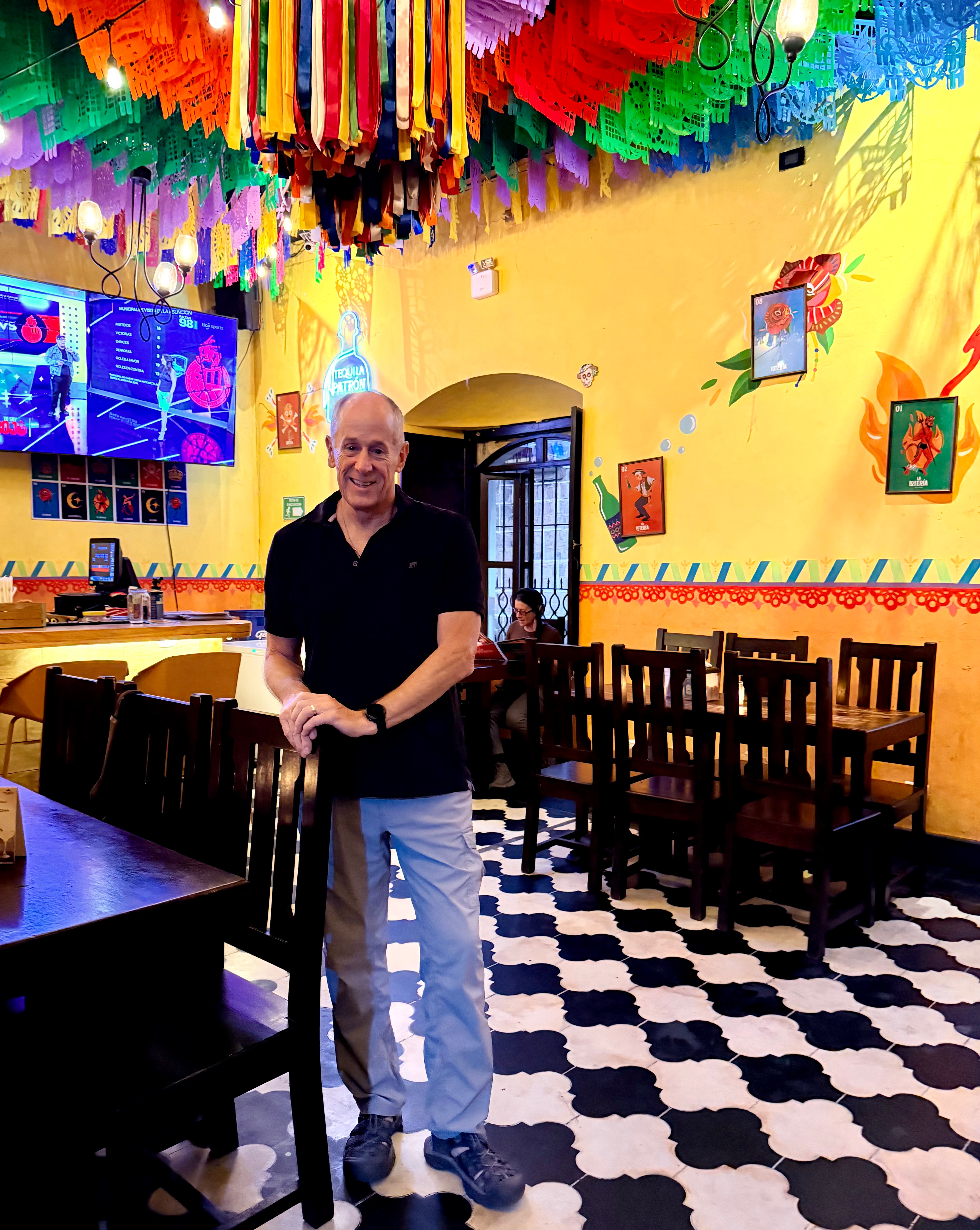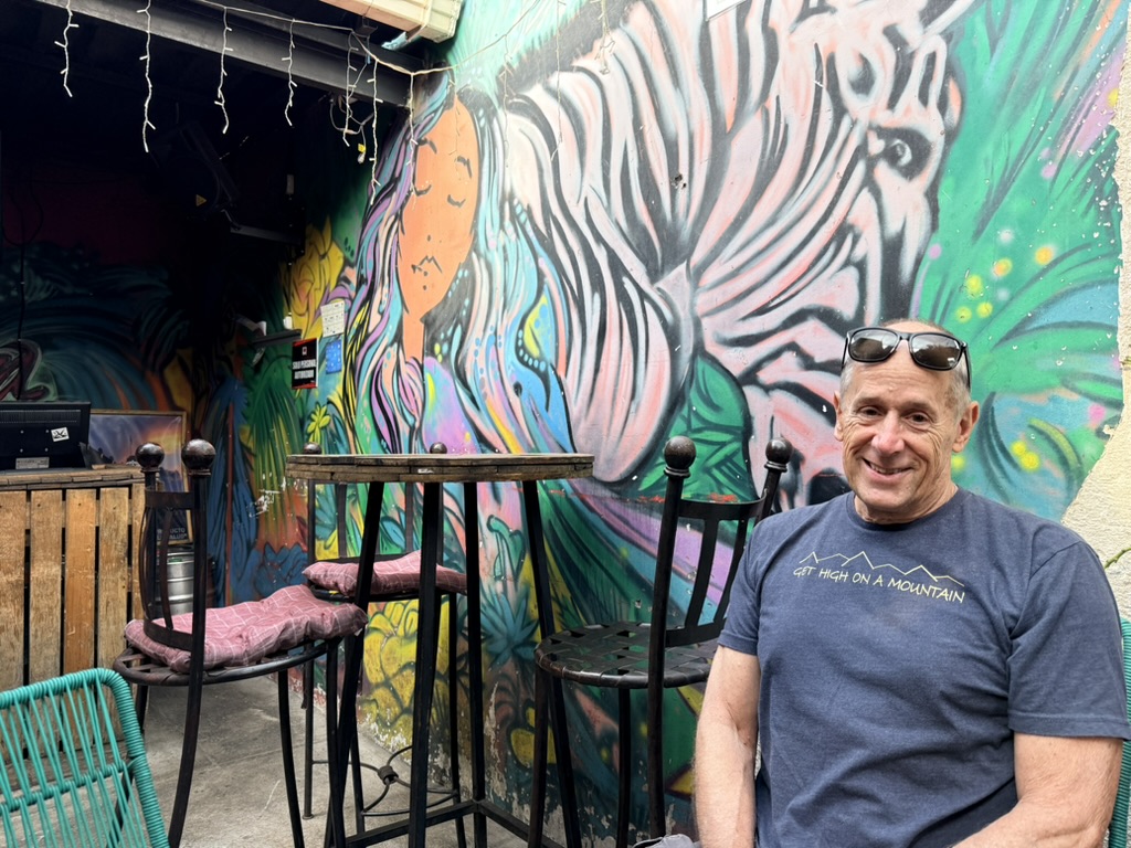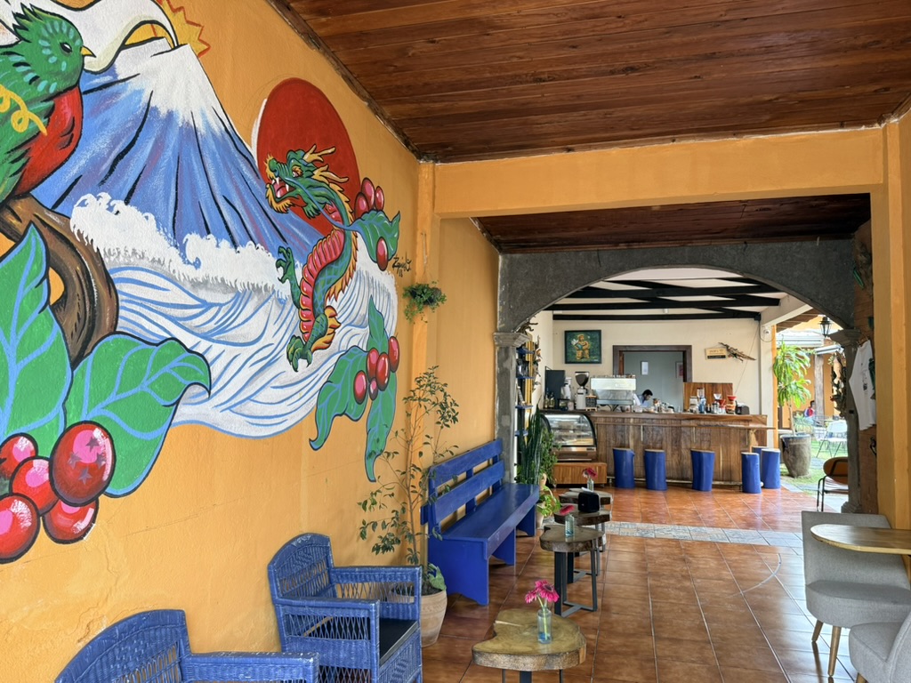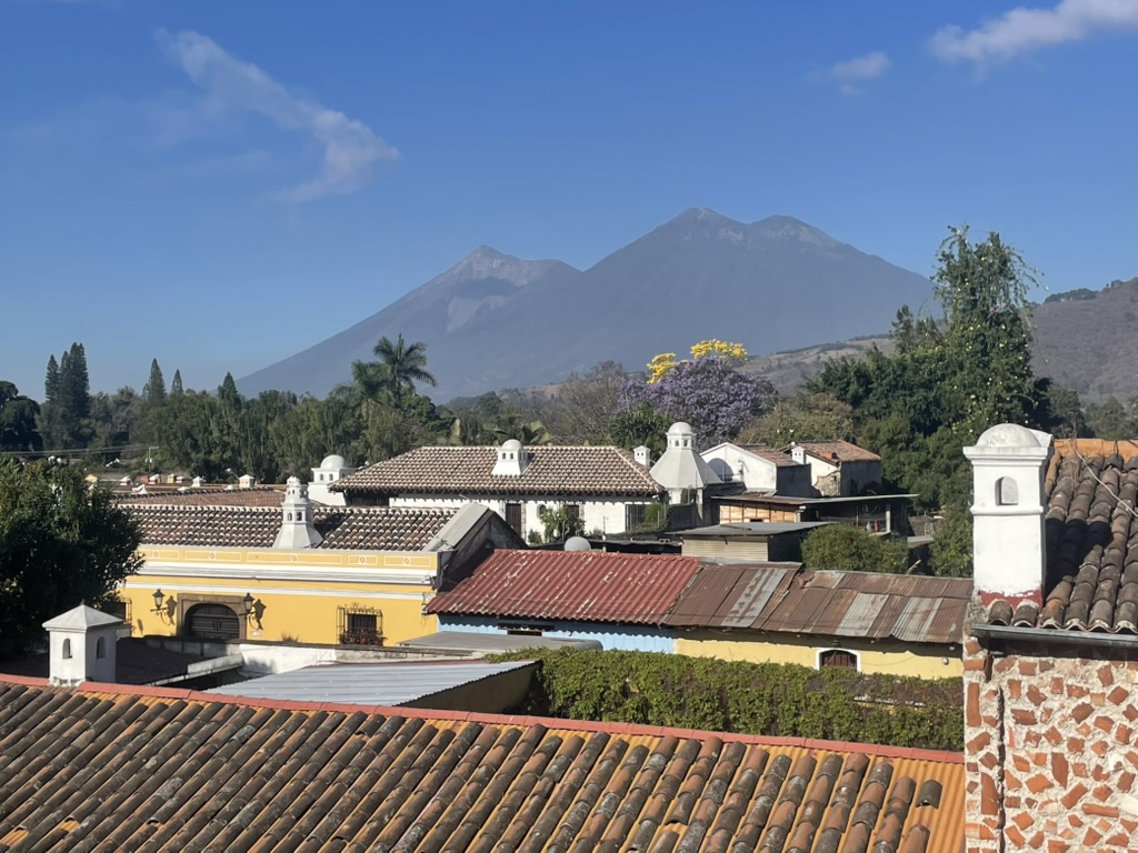 On Thursday, our first full day in Antigua, we were heading to the Mercado Local when my nephew Seth (my sister Joan’s son) texted to let us know he could meet us at any time. I looked on Google Maps for a nearby coffee shop and told him to meet us at Al Tueste Coffee House, just a block away. When my brother’s problems took him to the hospital, I had informed my sister Joan that I would be partly incommunicado for the next two weeks due to our trip to Guatemala. Surprised, she said, “Seth is going to Guatemala!” I wanted to know when, where and why, and all she could tell me was that he was going to climb a volcano with some friends as his last adventure before his baby girl is born on May 26. It turned out he would be in Antigua the same days we were there; Thursday was the only possible day we could meet because he was to climb Volcán Acatenango on Friday and Saturday, and we would leave Antigua on Saturday morning.