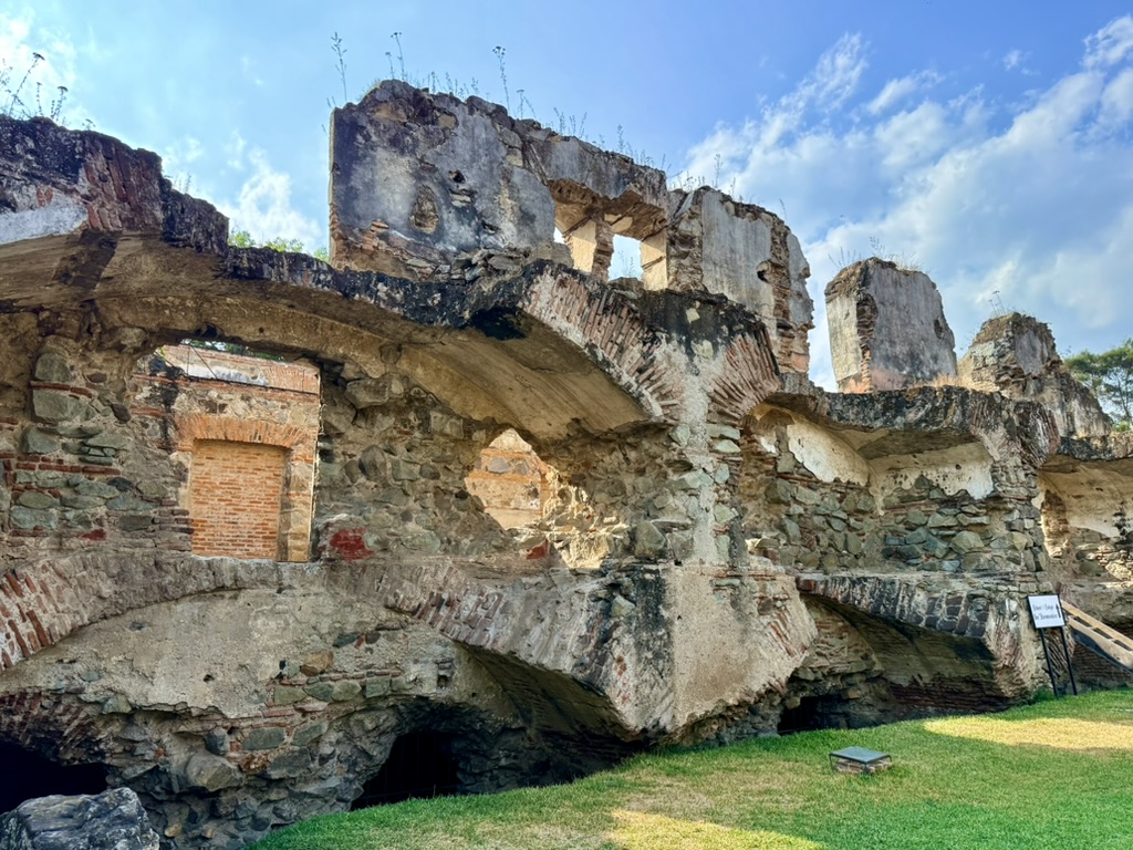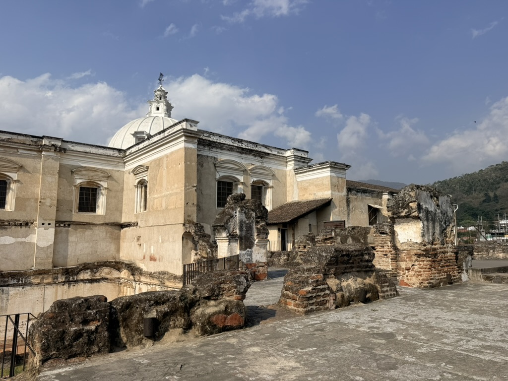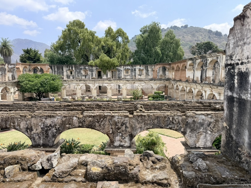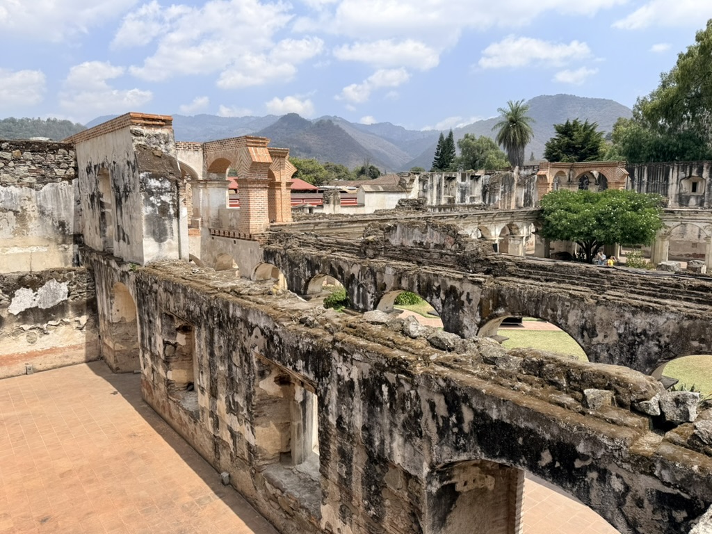 However, the attached original monastery complex remains in evocative ruins after it was destroyed by the 1773 earthquake. We walked all around the grounds of the ruined monastery on our last afternoon in Antigua. It seemed the most ruined of any others we saw.