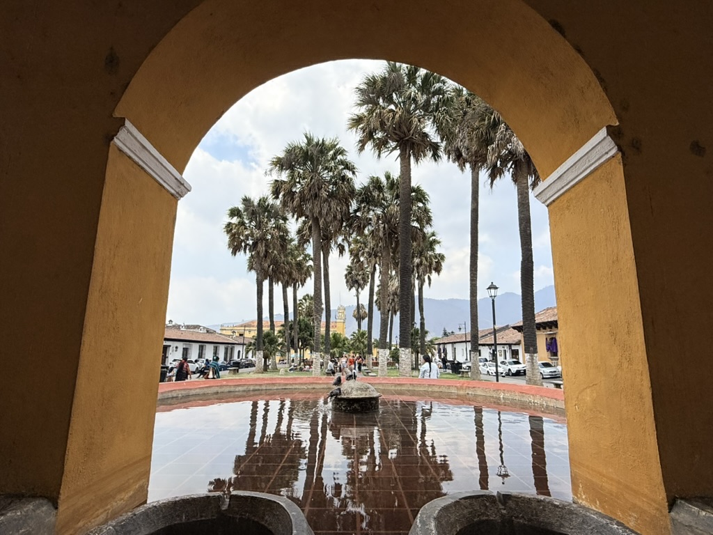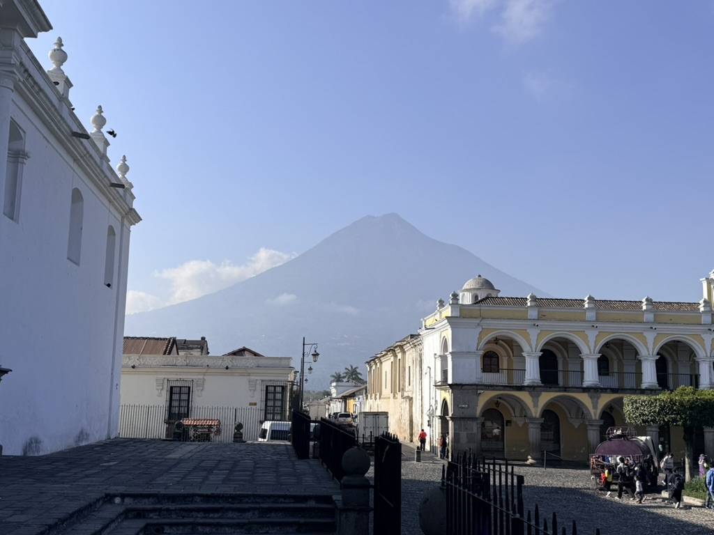 Words are not for such things as a town like Antigua that is surrounded by treacherous nature. There are three volcanoes around it: the very active Volcán Fuego, the dormant/active Volcán Acatenango, and the dormant Volcán de Agua, the most prominent volcano viewed from Antigua’s central plaza, arches and rooftops.