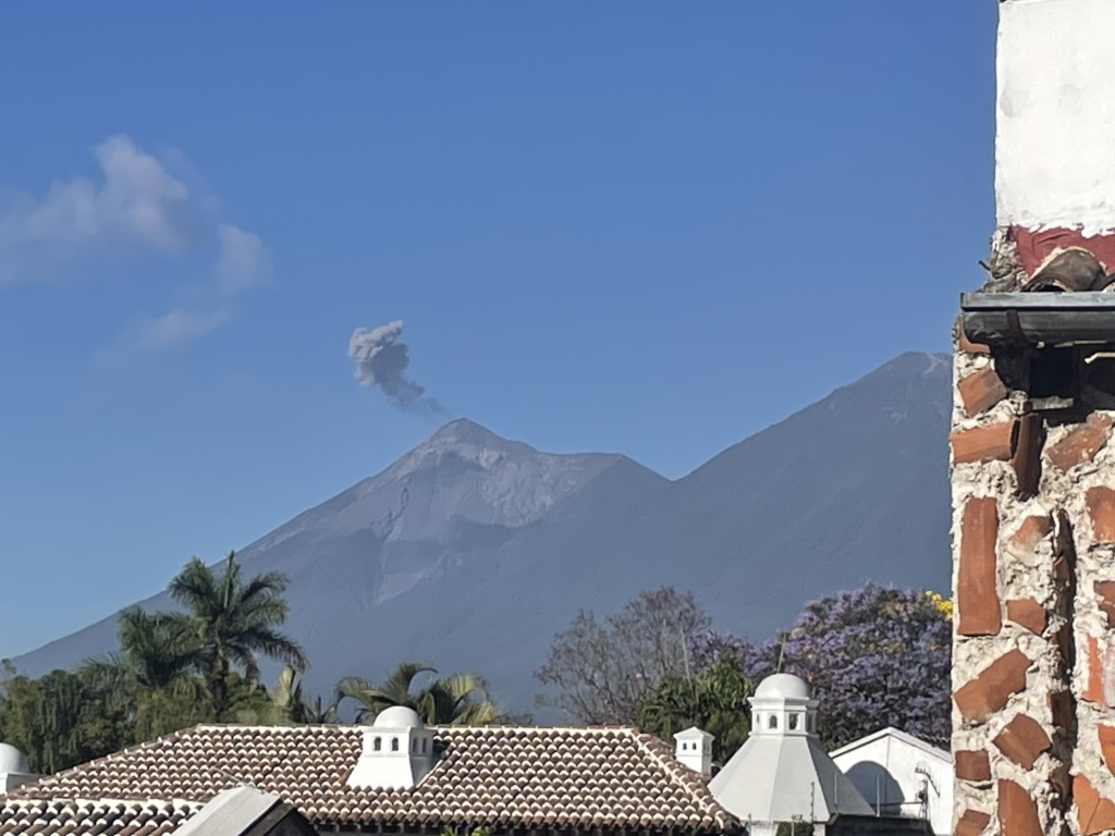 Seth and his friend Joel walked in as all this was happening, and we quickly went back into the courtyard to give the family privacy and to get out of the way. We were all shaken but eventually had some coffee and asked about Seth’s adventure. He and Joel and two other old friends would climb 5,000 feet with a guide on Friday, set up camp at 3:00 p.m., then relax for the night. At 3:00 a.m. on Saturday, they would hike to the summit of Volcán Acatenango where they would be able to see the neighboring Volcán Fuego, one of the world’s most active volcanoes, emit ash, smoke and molten lava. The volcano is consistent in its shows; it spews molten lava every 15-20 minutes.