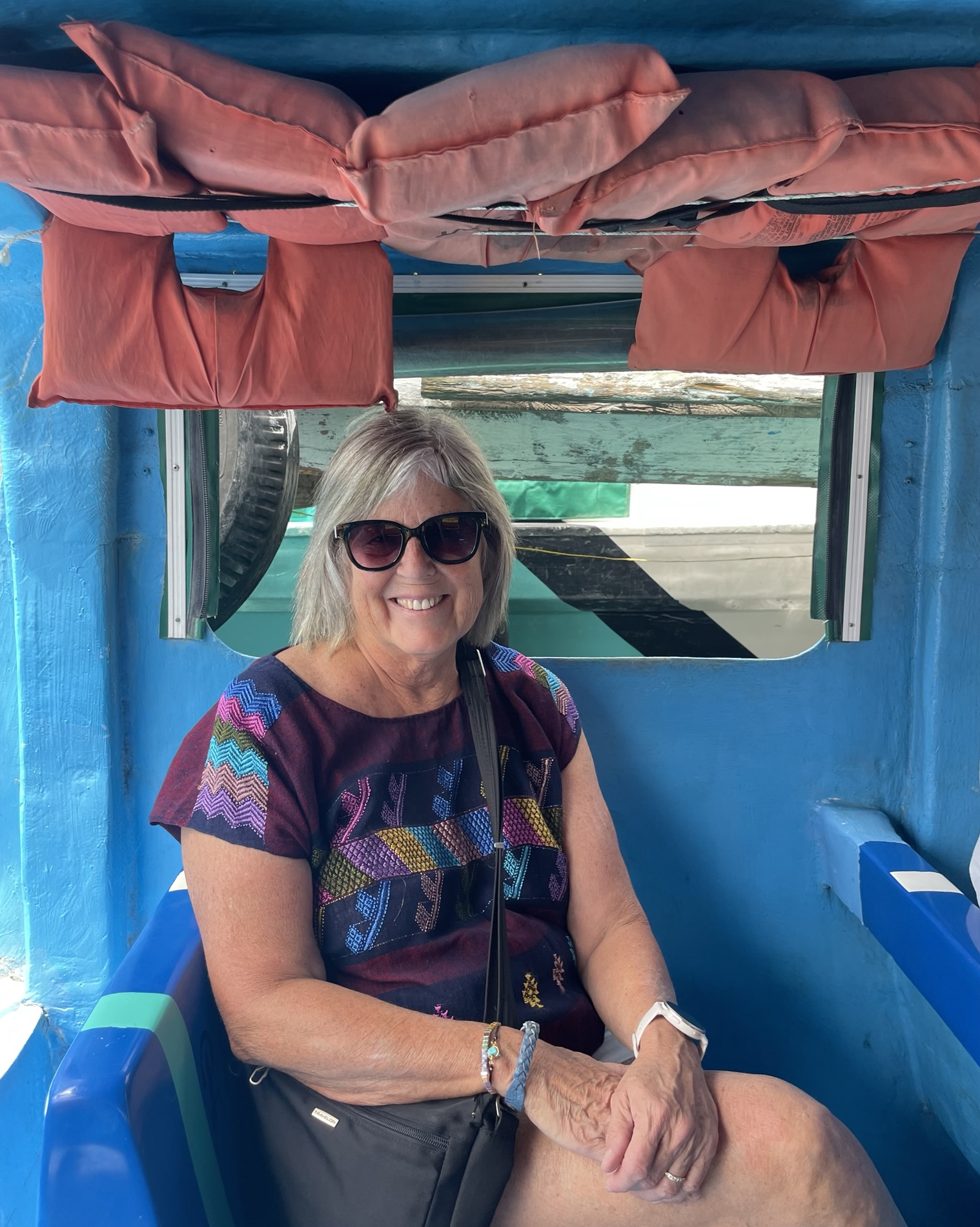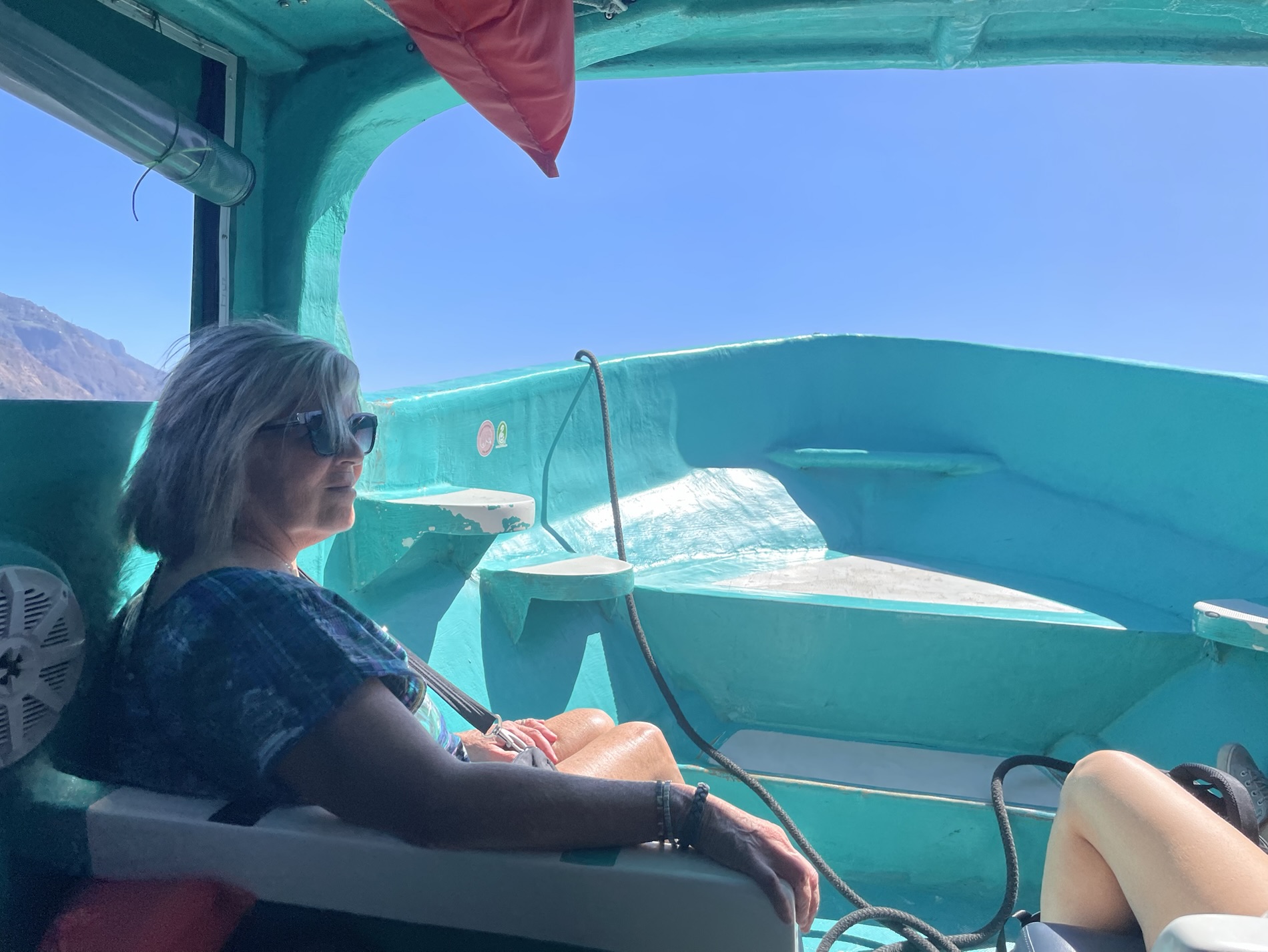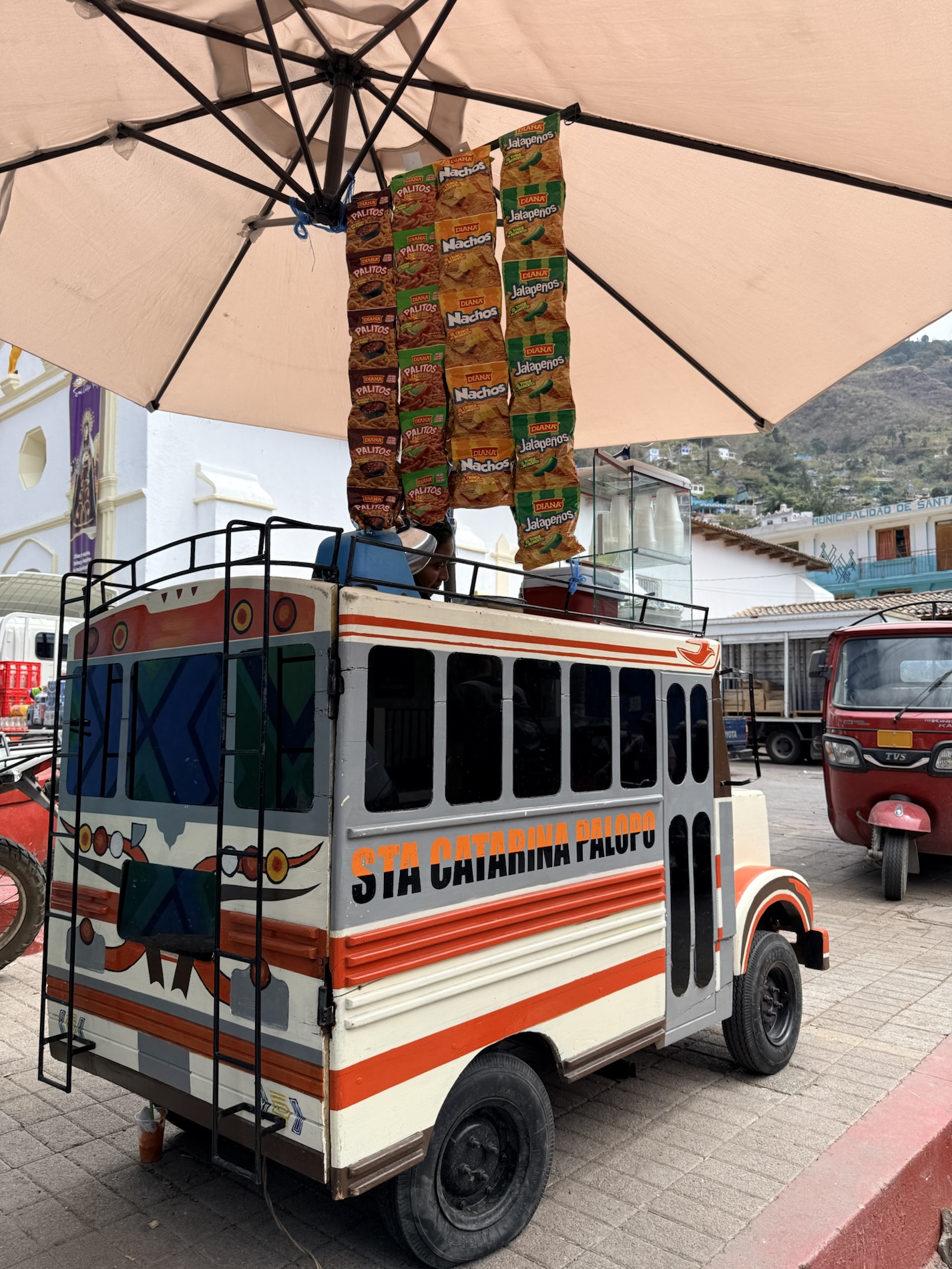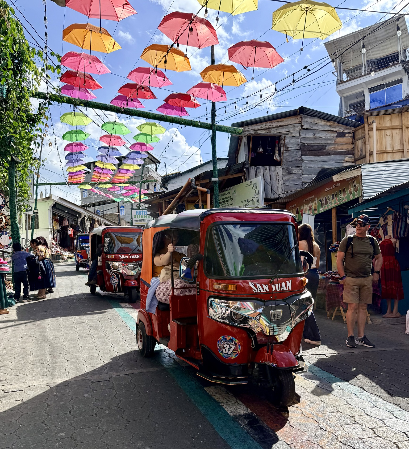 The last day, a tuk-tuk takes her east to Santa Catarina Palopó