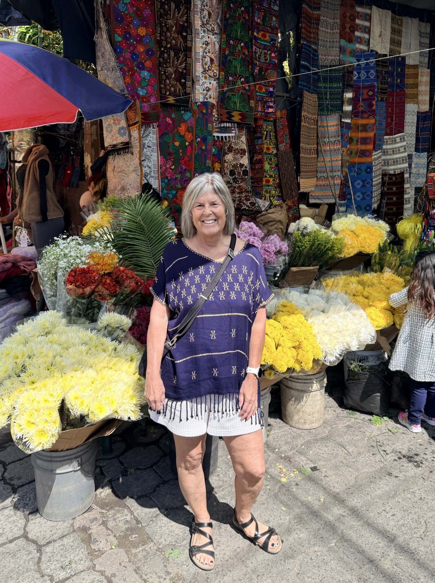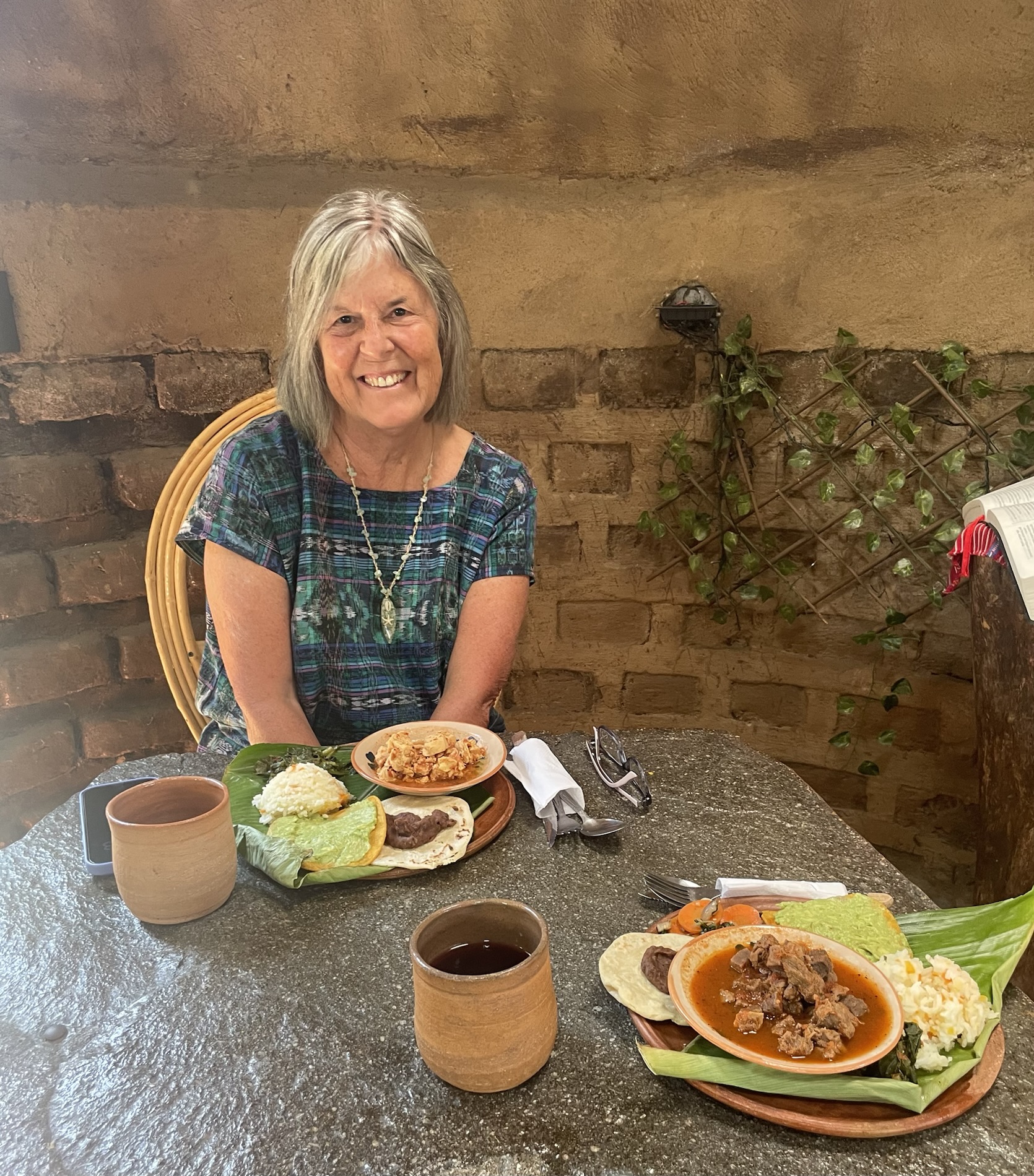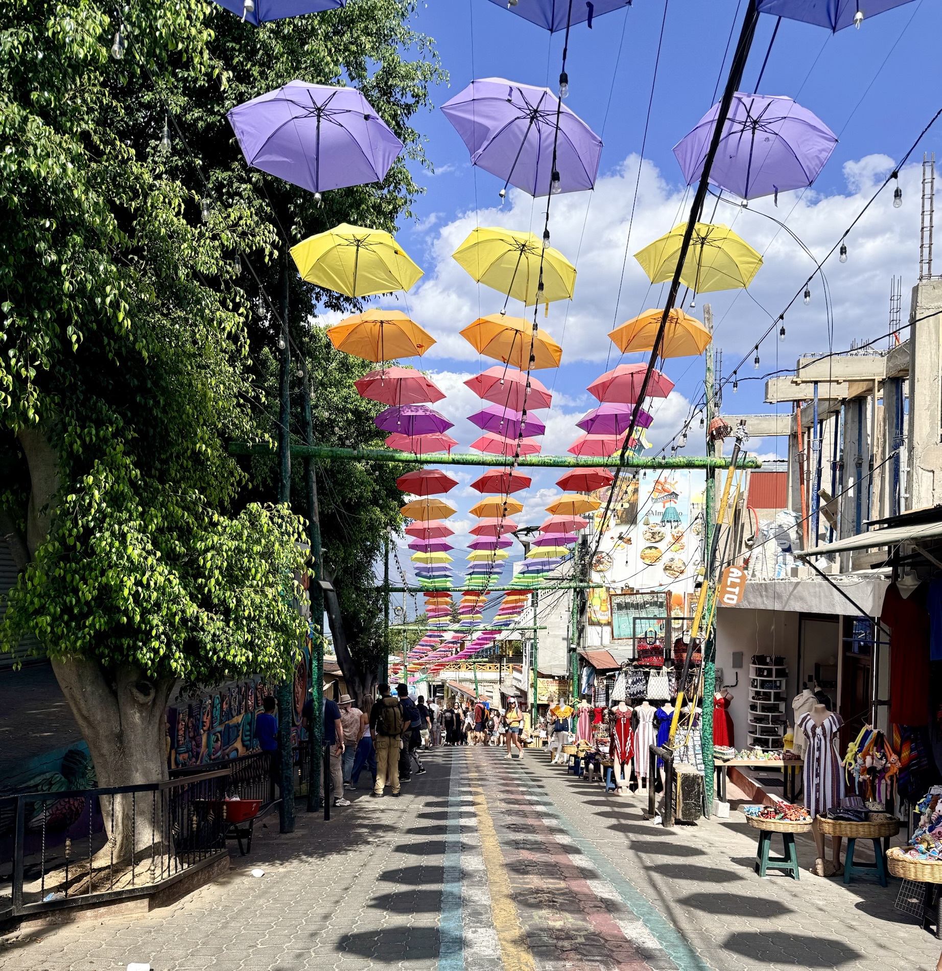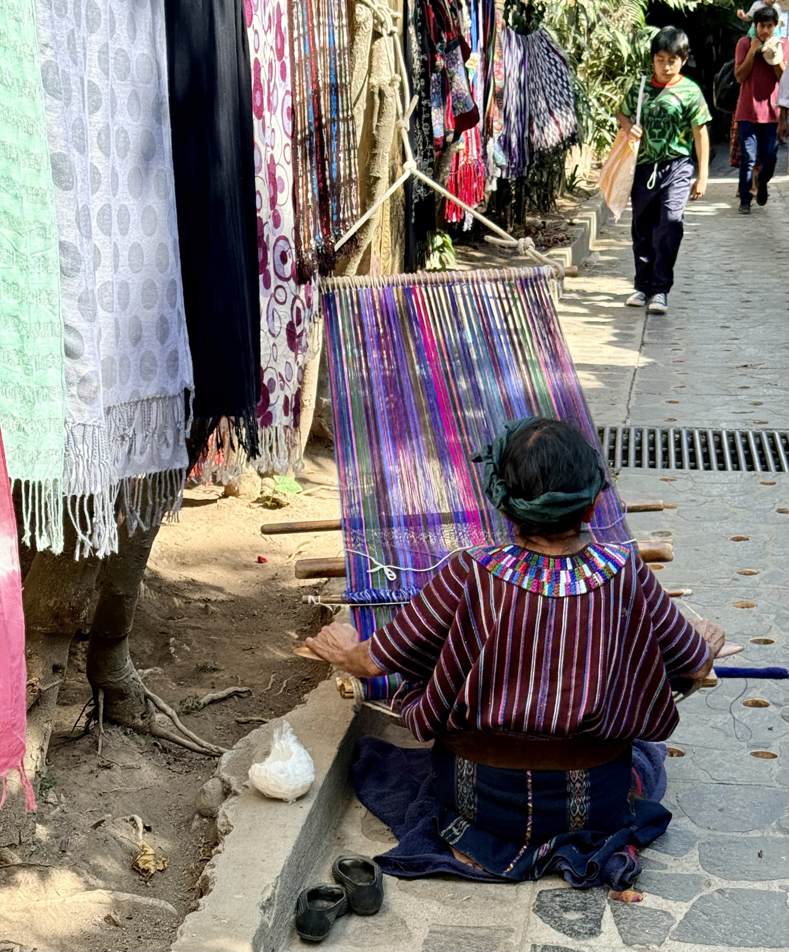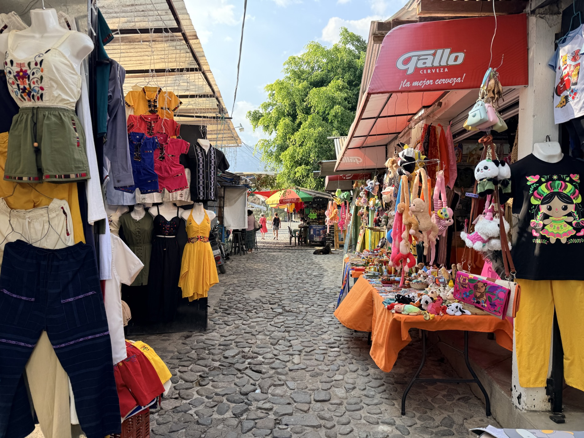 We ate lunch at Deleite Ancestral Experiencia Gastronomica Tz’utujil, which offered traditional Tz’utujil food. The town is awash with beautiful murals that symbolize Mayan tradition. For us, this was the most gorgeous of all the towns. Pavement is painted and two streets are covered in umbrellas and hats: Calle de las Sombrillas and Calle de los Sombreros.