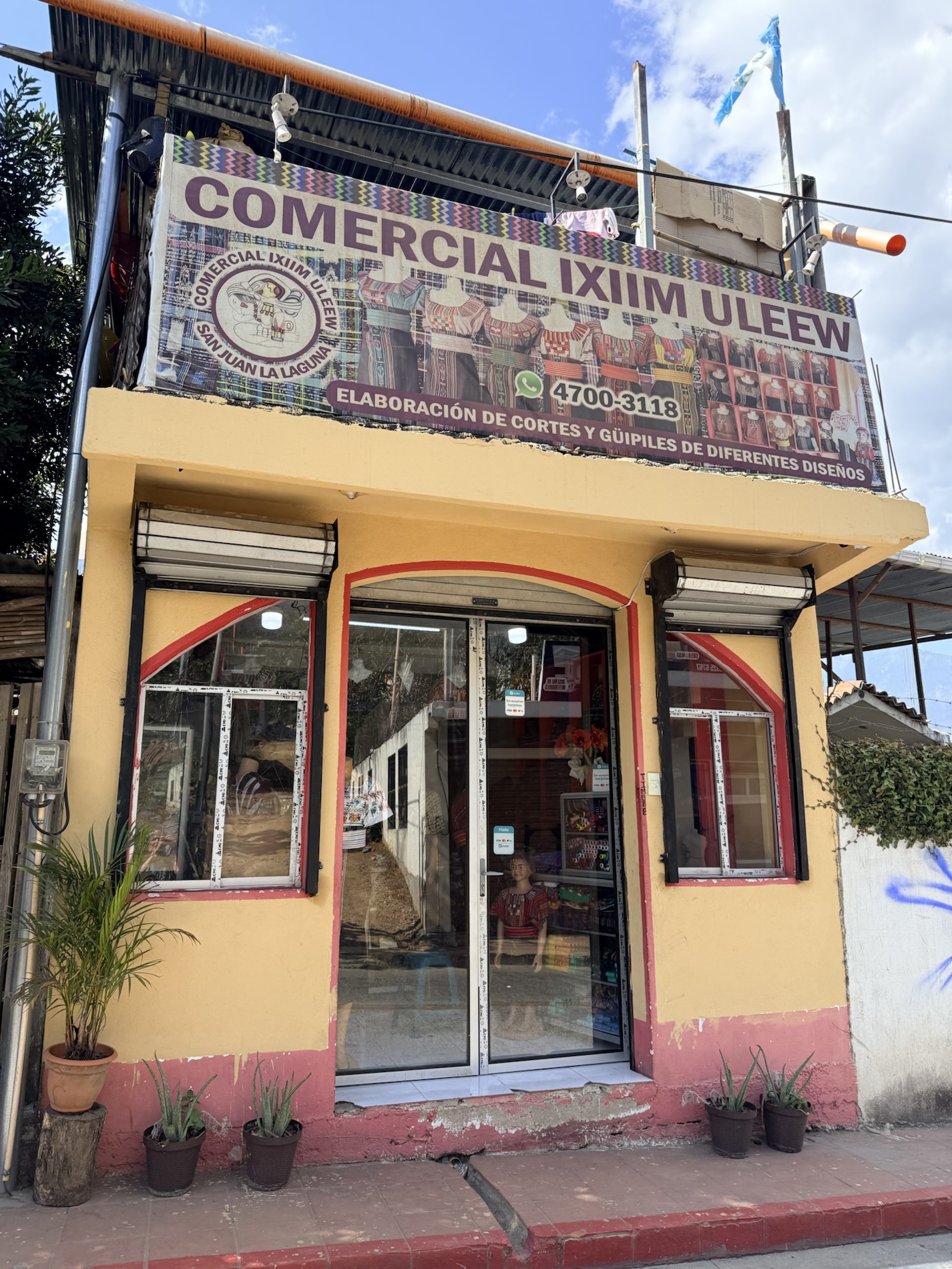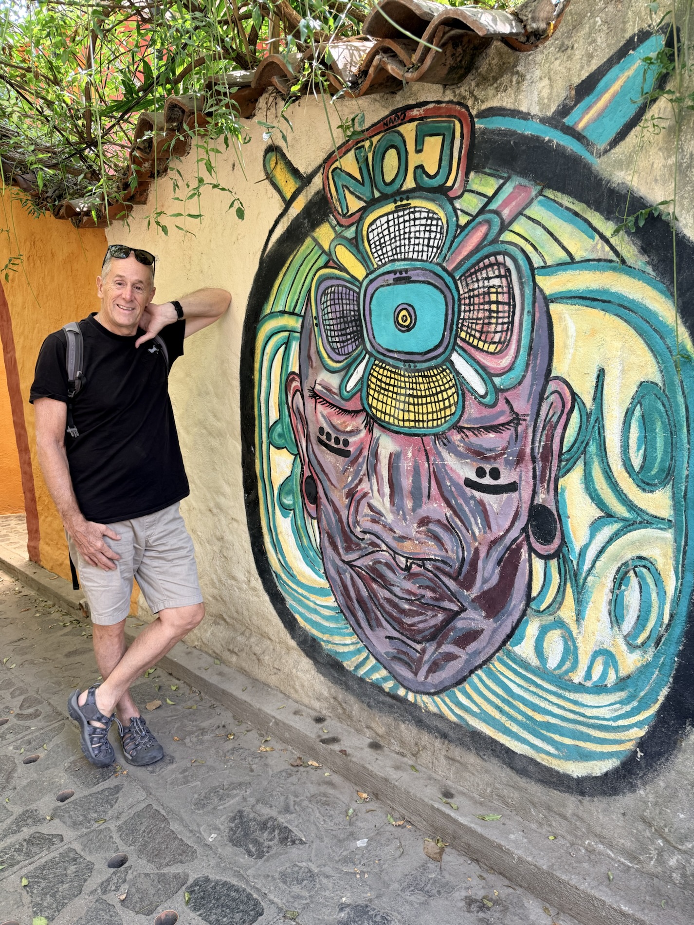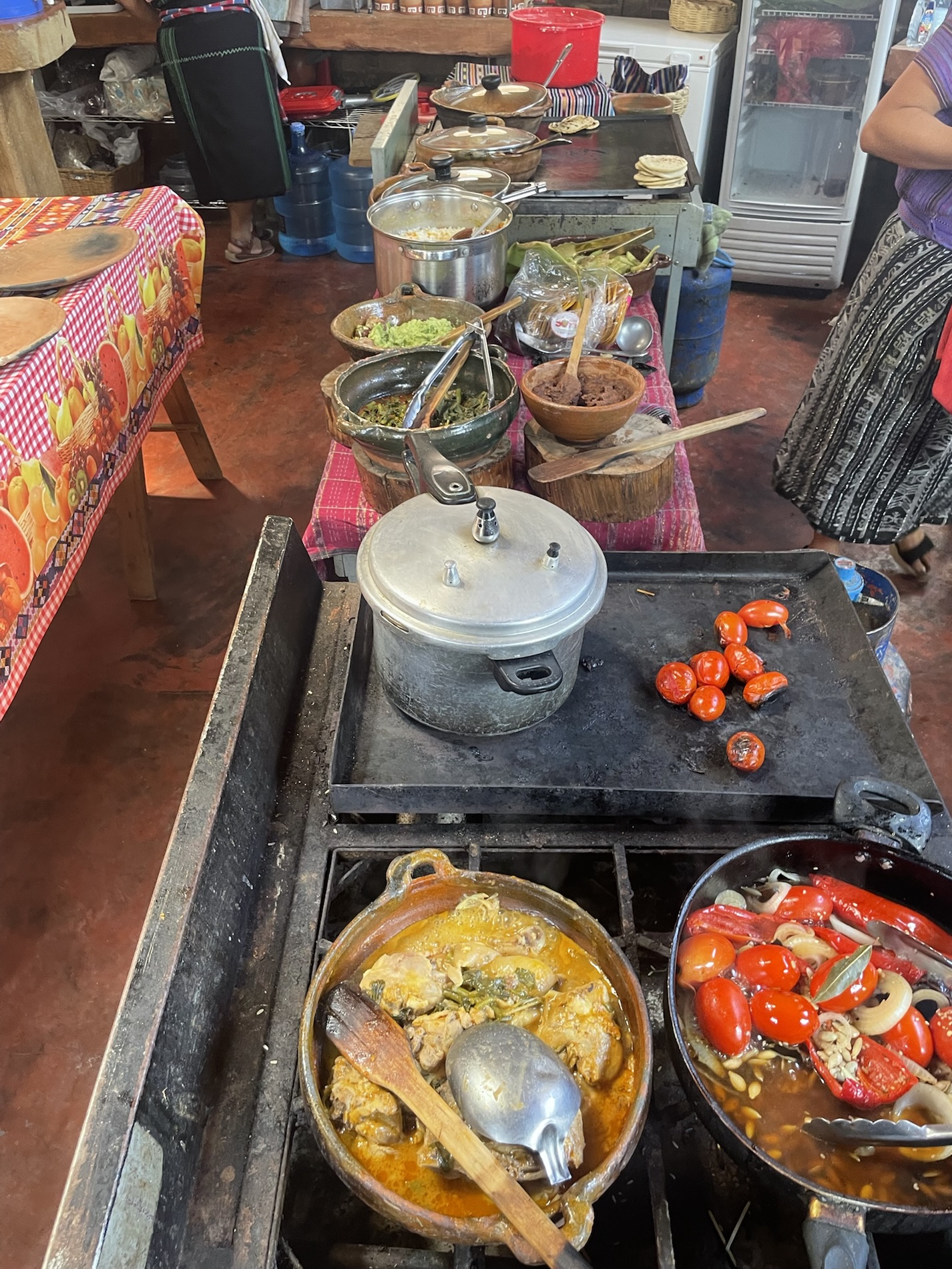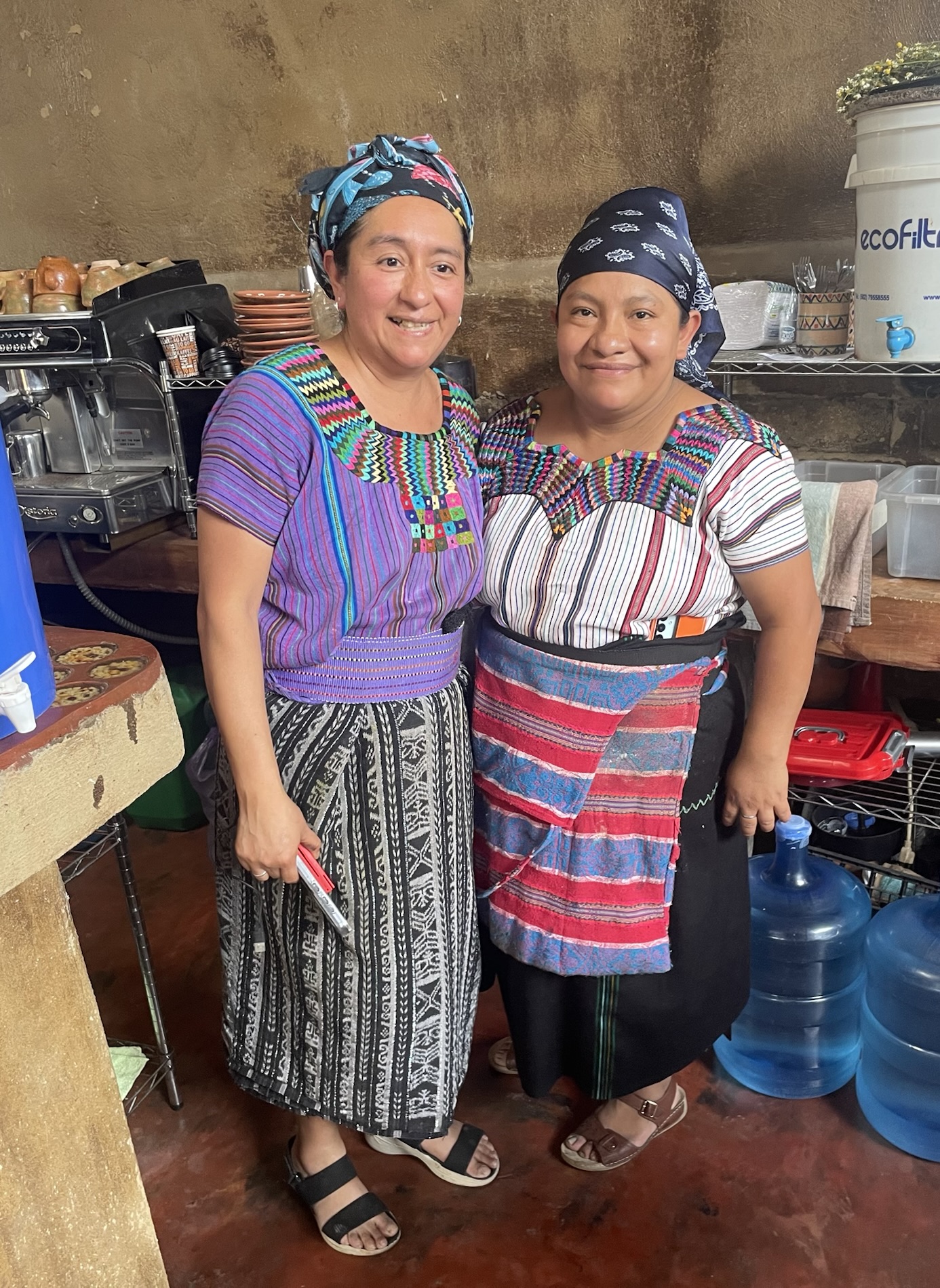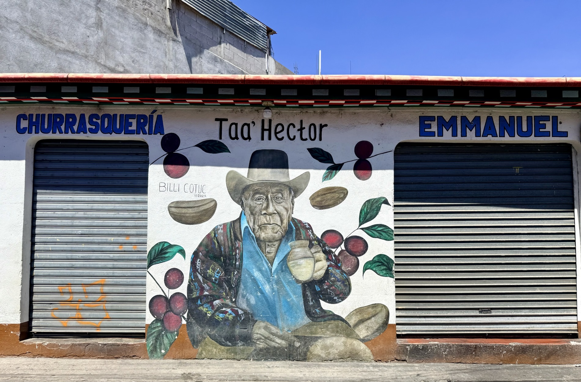 We ate lunch at Deleite Ancestral Experiencia Gastronomica Tz’utujil, which offered traditional Tz’utujil food. The town is awash with beautiful murals that symbolize Mayan tradition. For us, this was the most gorgeous of all the towns. Pavement is painted and two streets are covered in umbrellas and hats: Calle de las Sombrillas and Calle de los Sombreros.