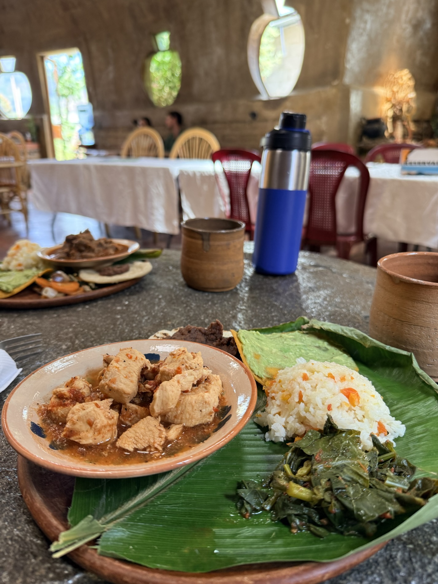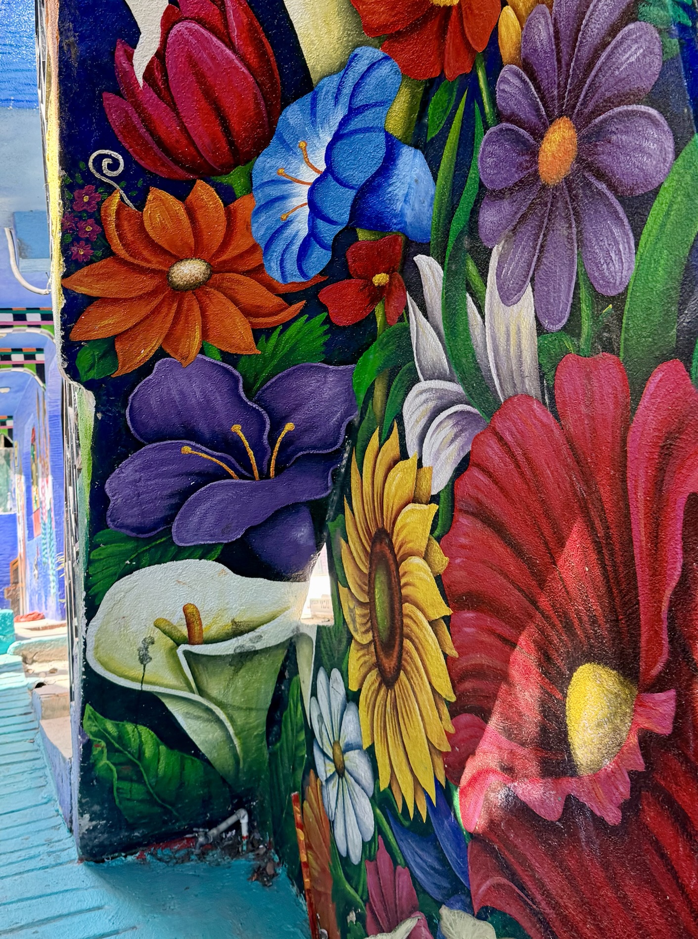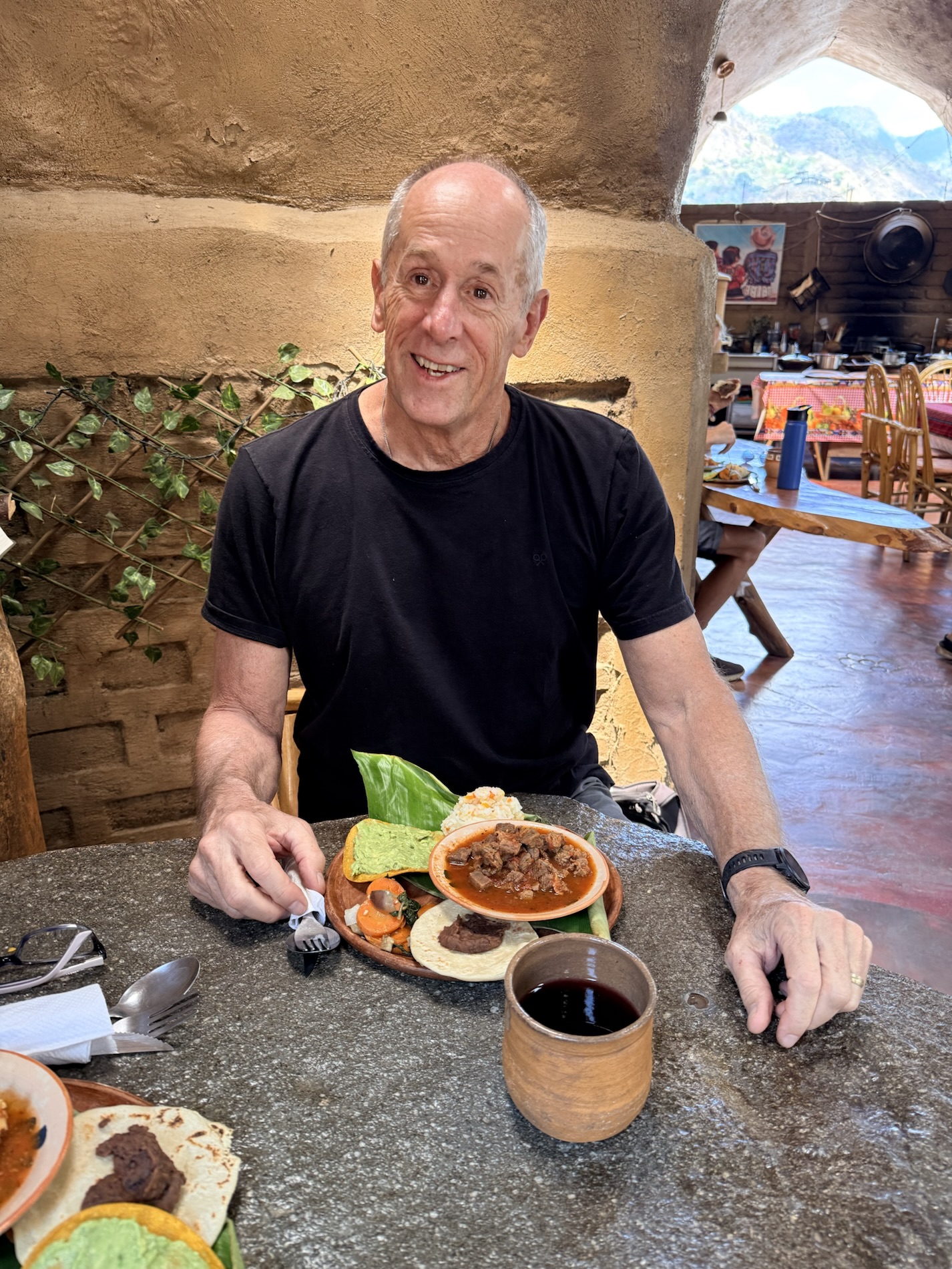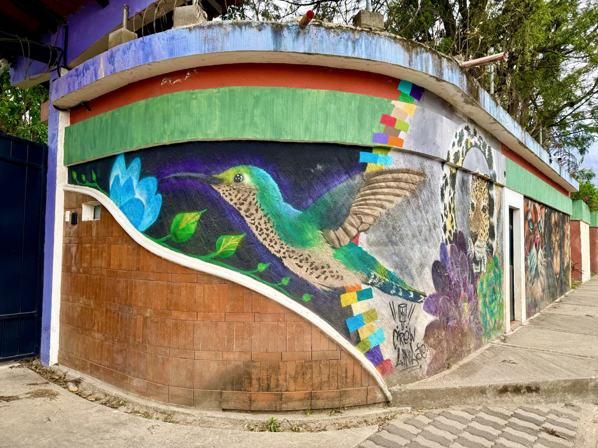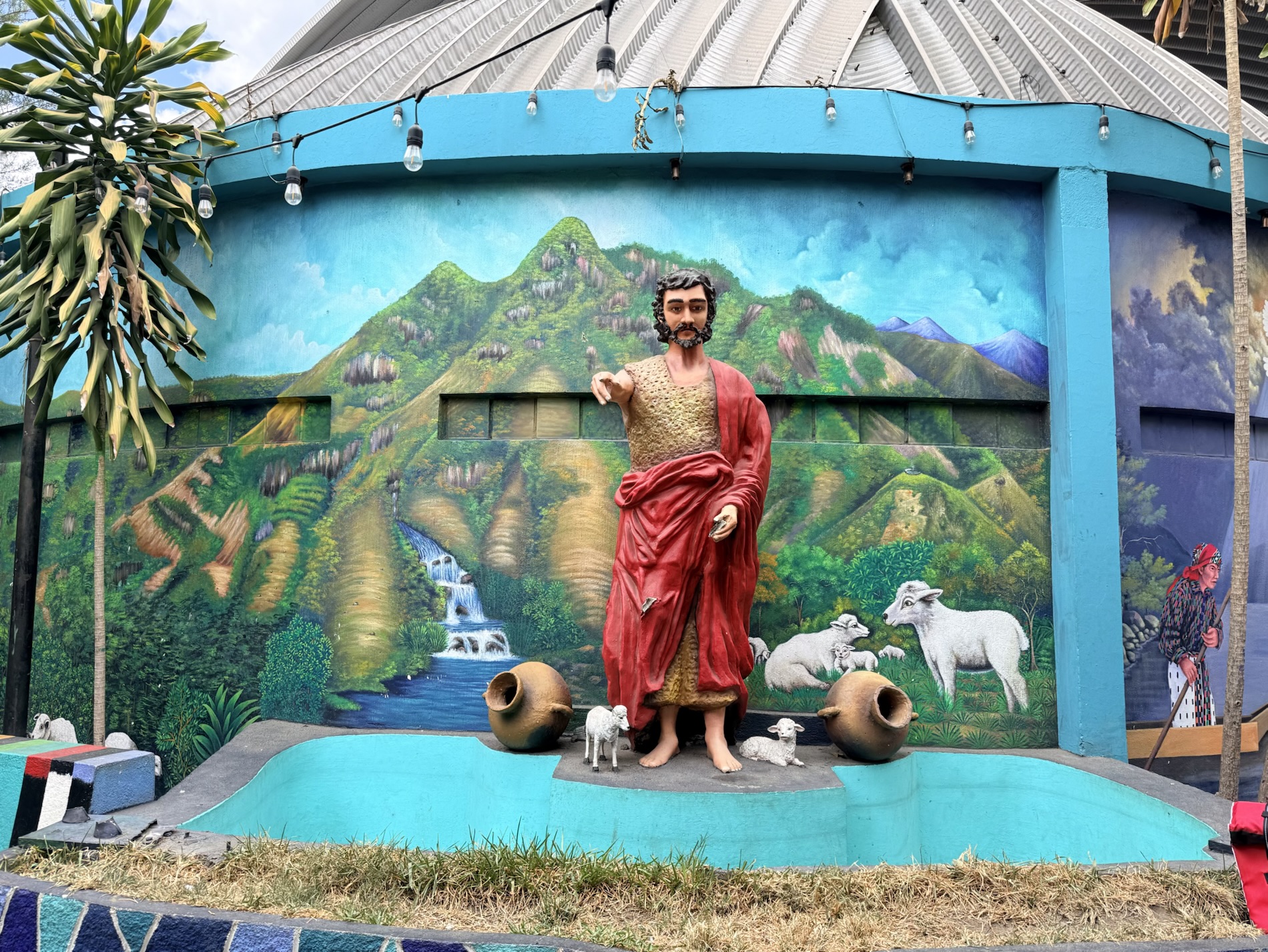 We ate lunch at Deleite Ancestral Experiencia Gastronomica Tz’utujil, which offered traditional Tz’utujil food. The town is awash with beautiful murals that symbolize Mayan tradition. For us, this was the most gorgeous of all the towns. Pavement is painted and two streets are covered in umbrellas and hats: Calle de las Sombrillas and Calle de los Sombreros.