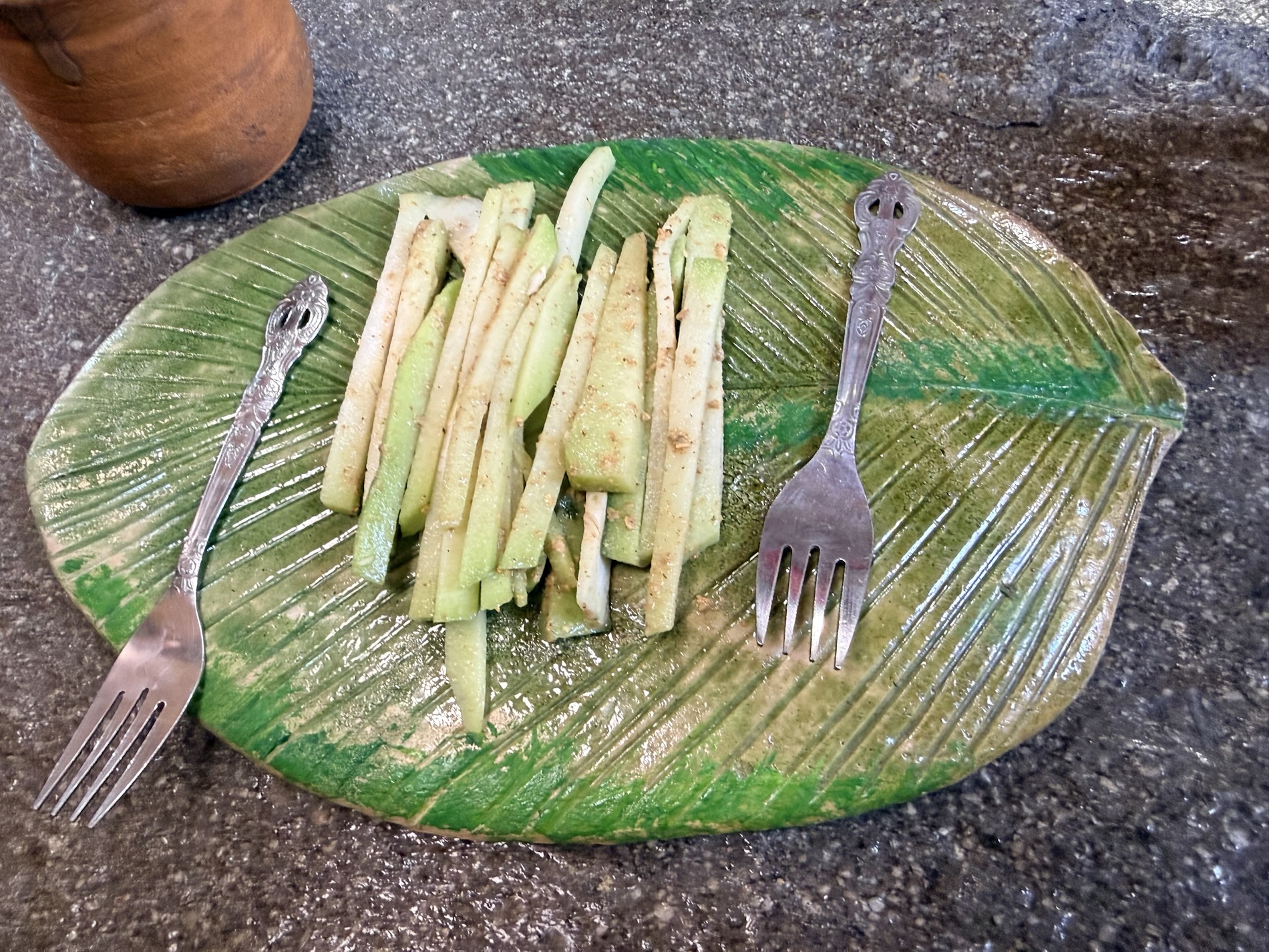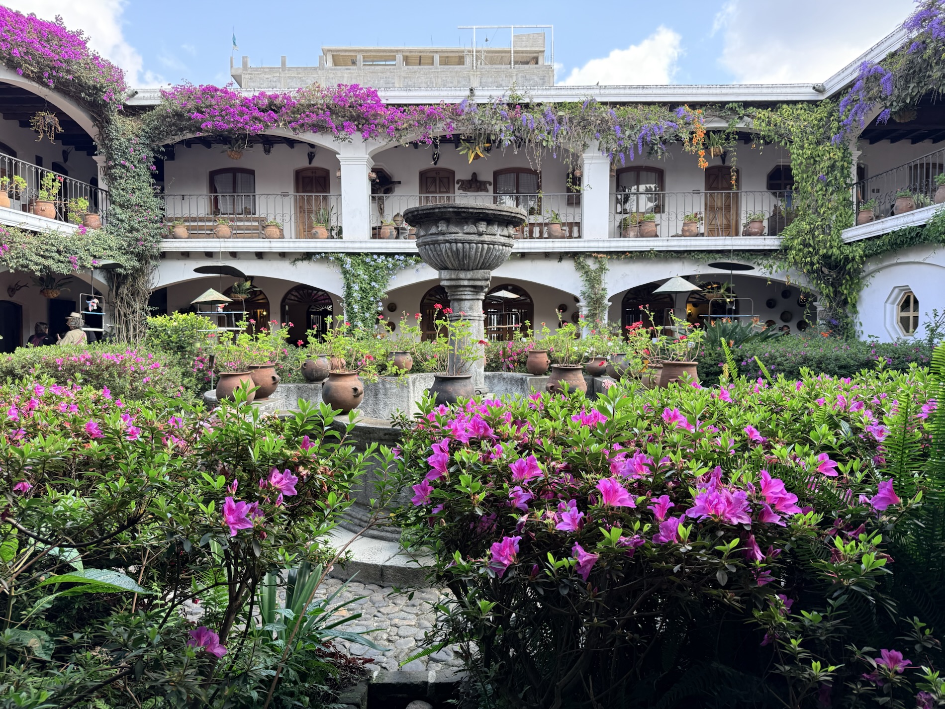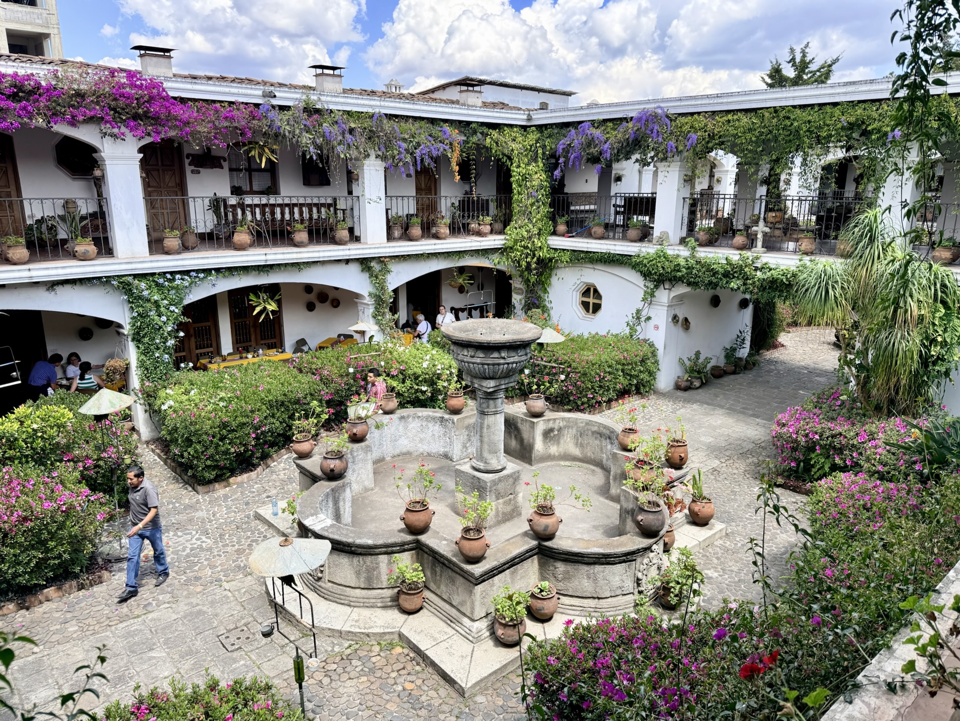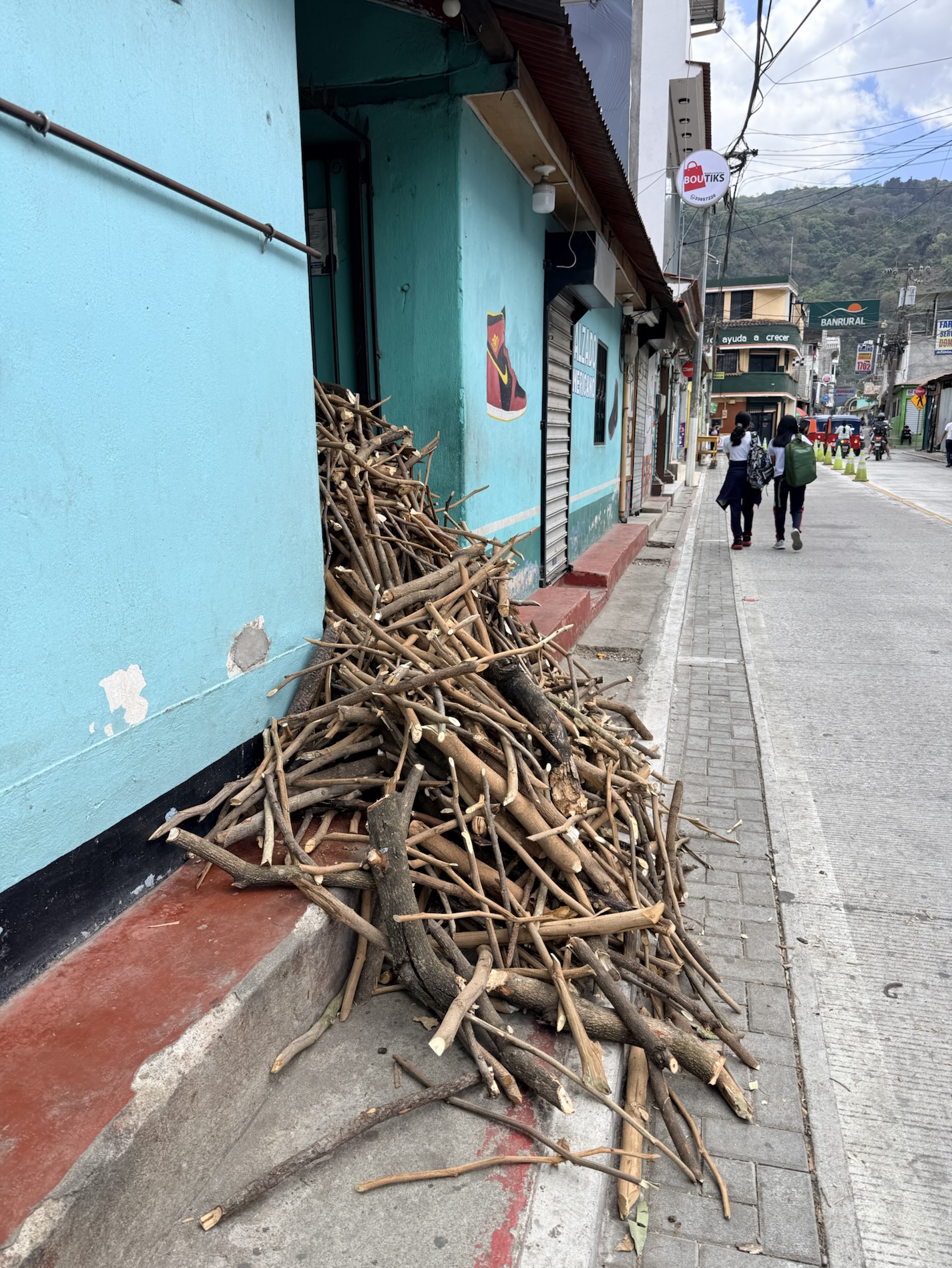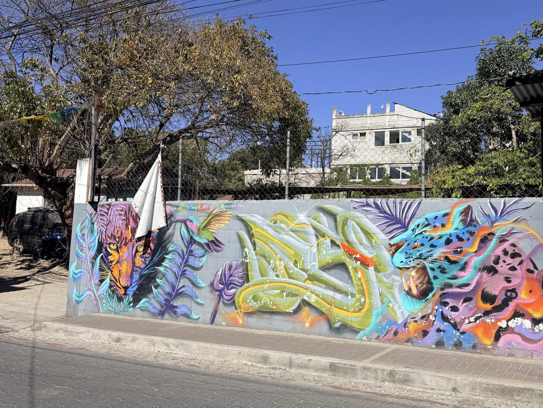 We ate lunch at Deleite Ancestral Experiencia Gastronomica Tz’utujil, which offered traditional Tz’utujil food. The town is awash with beautiful murals that symbolize Mayan tradition. For us, this was the most gorgeous of all the towns. Pavement is painted and two streets are covered in umbrellas and hats: Calle de las Sombrillas and Calle de los Sombreros.