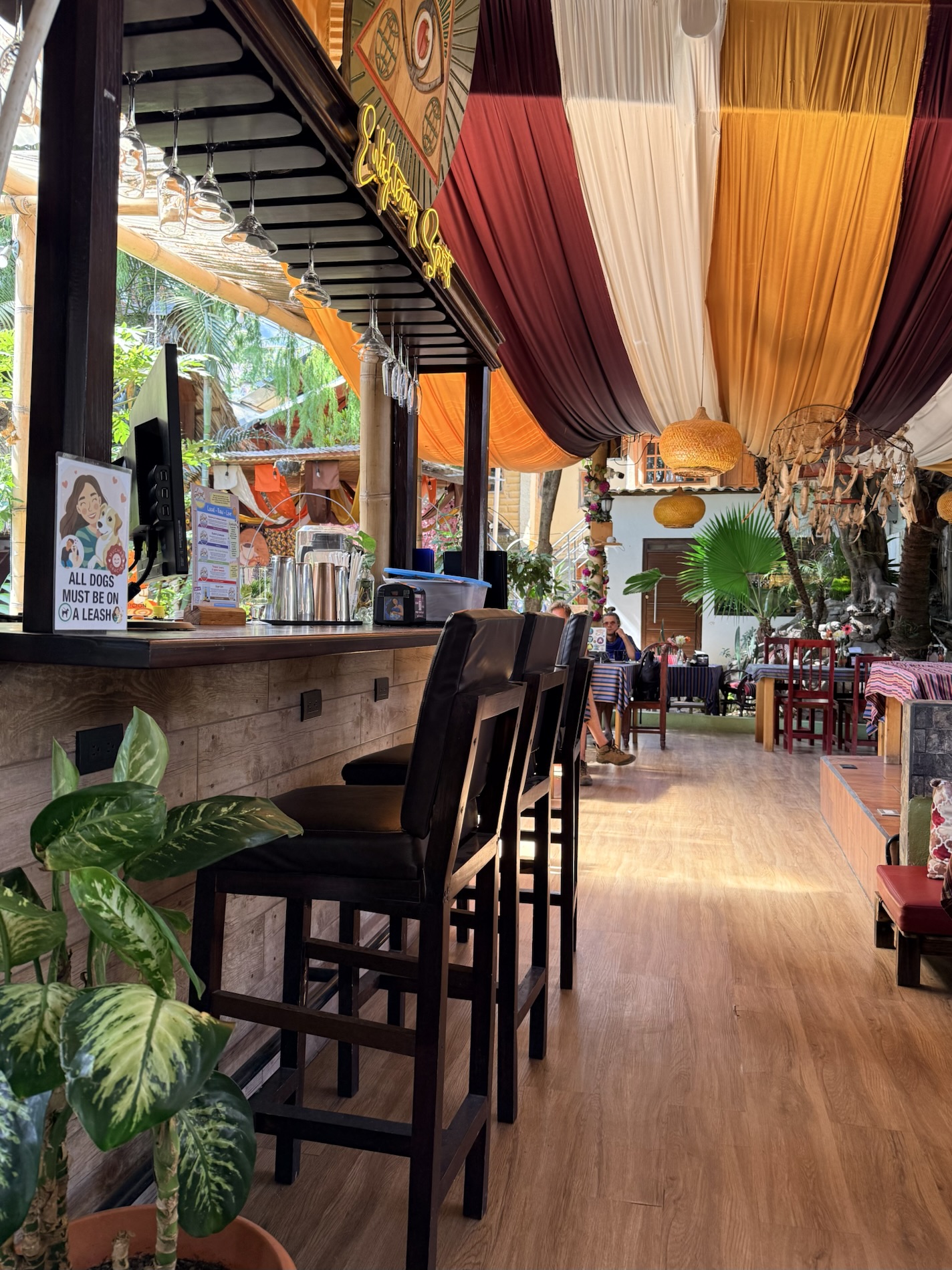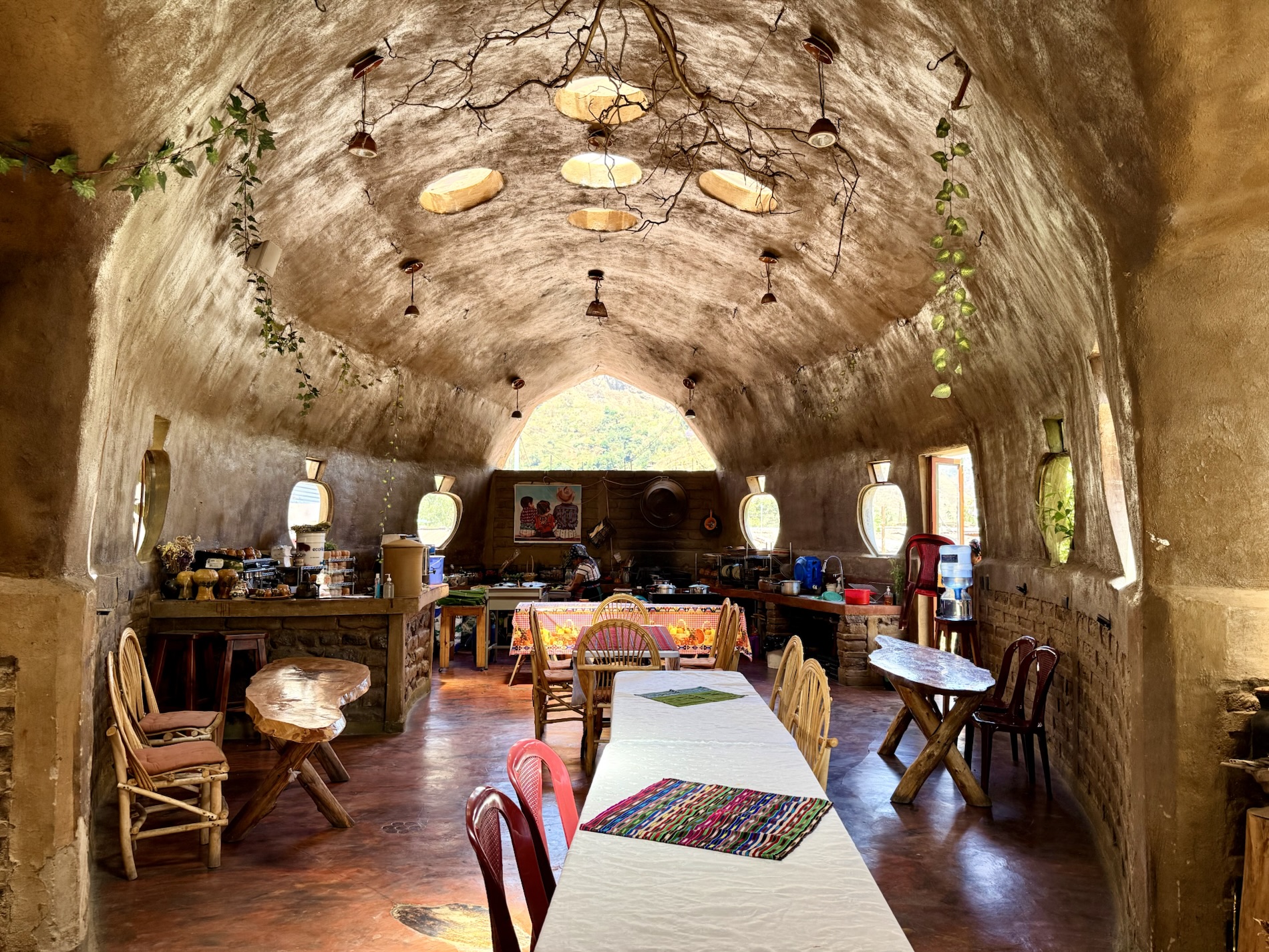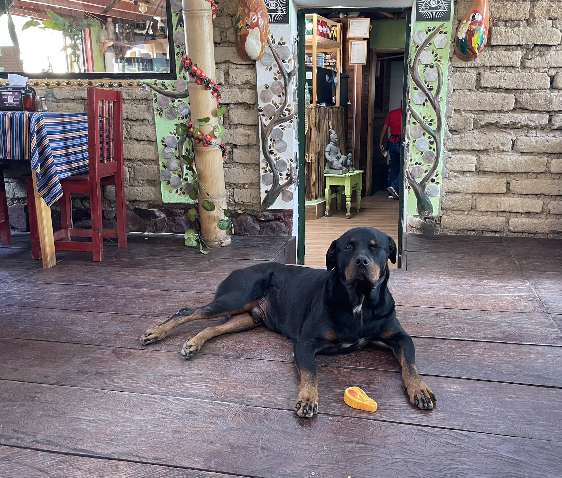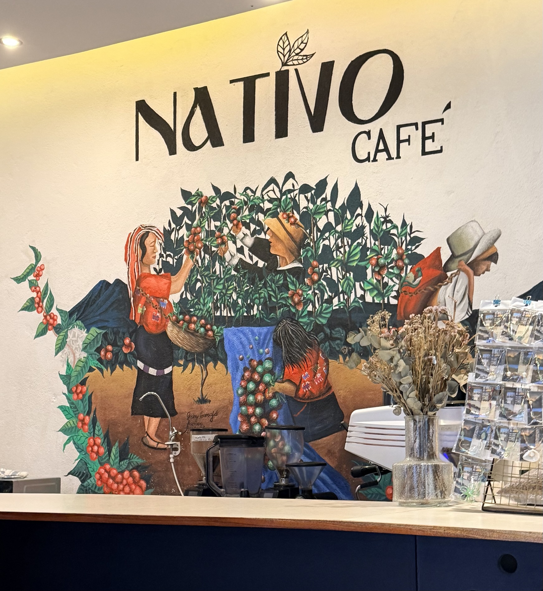 San Marcos la Laguna is NOT known for Mayan culture, but instead draws New Age and hippie types. It has murals, bohemian clothing shops, cafes and hostels. Offers for spiritual nurturing include yoga, mediation, tattoos, sound bathing, cacao ceremonies, reiki, chakra alignment, massage, and full moon dances.