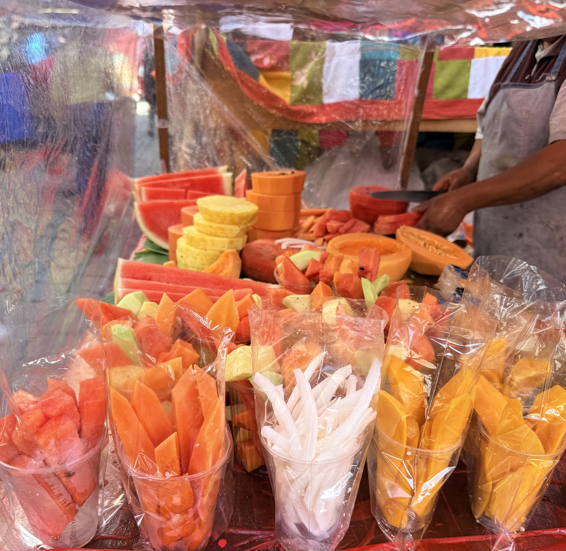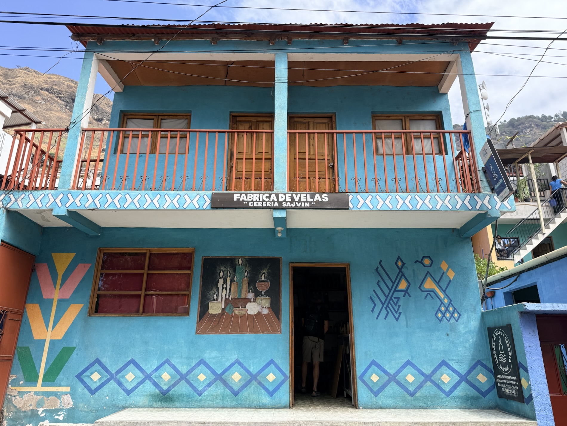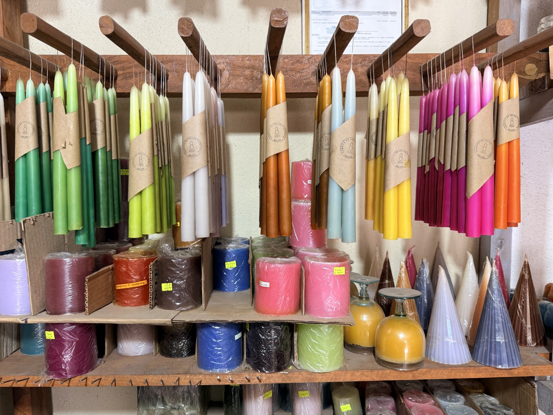 painted with Mayan symbols. In a candle factory, rainbows