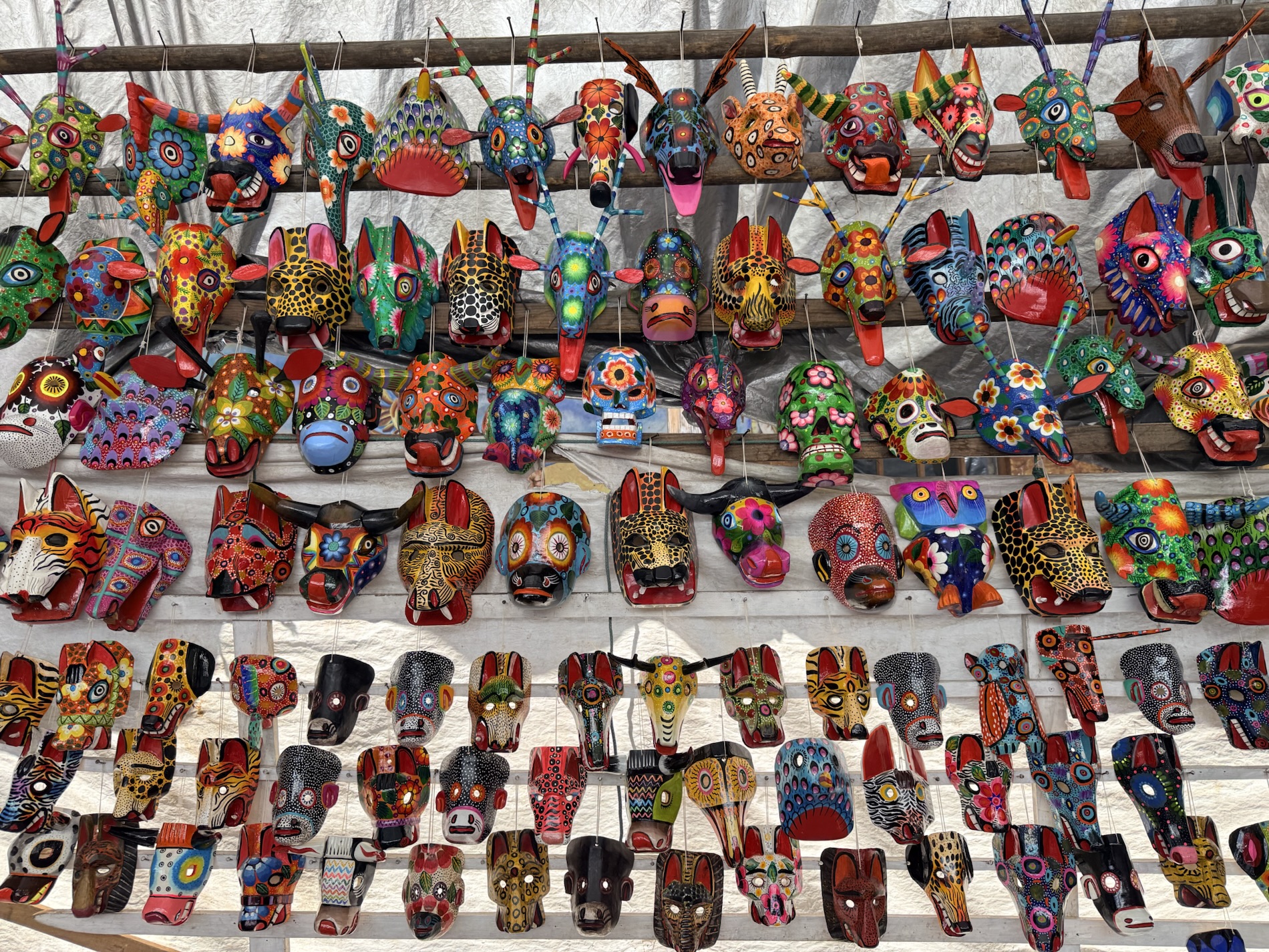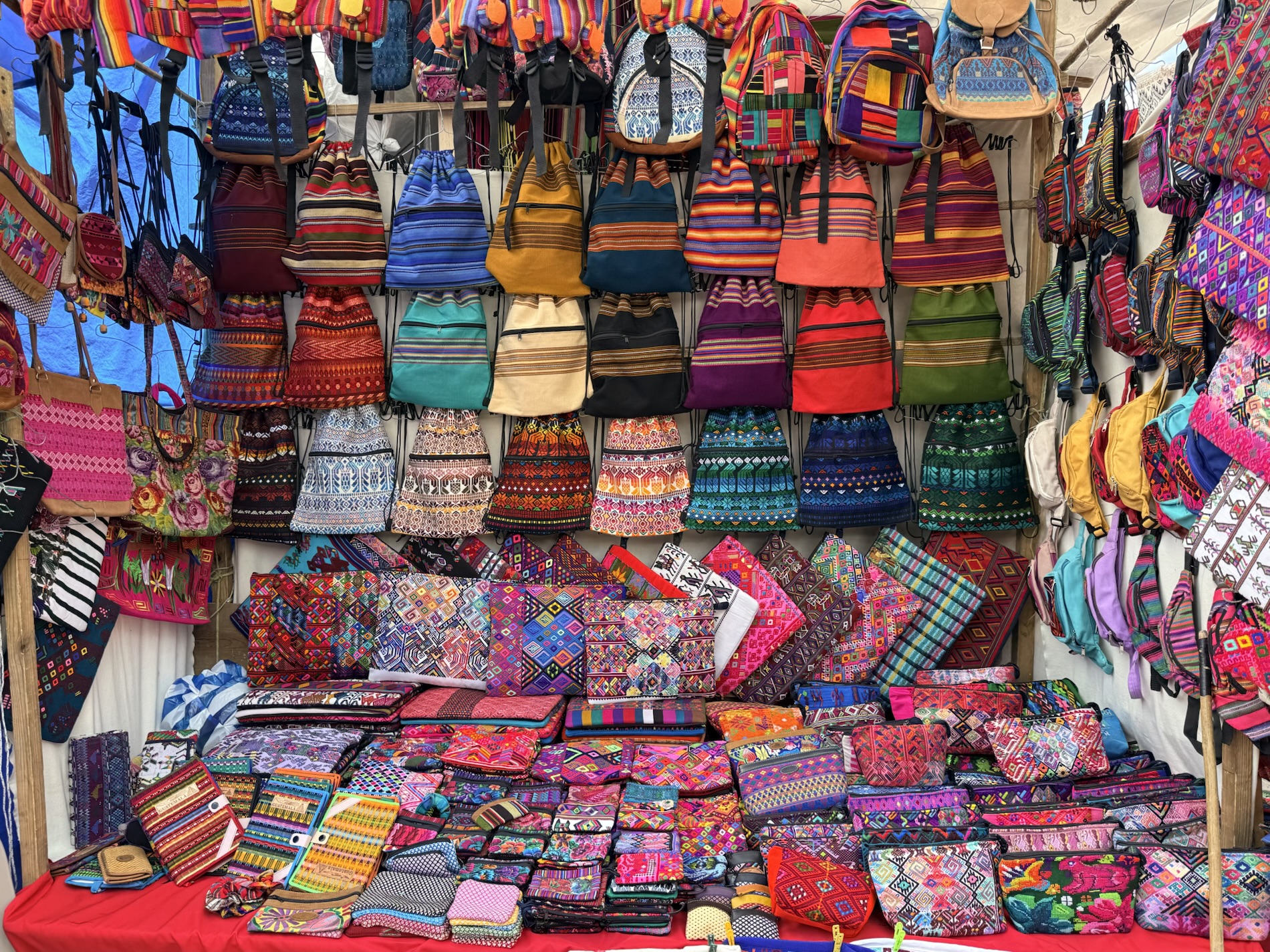 In the town’s Thursday and Sunday markets, vendors sell handicrafts, food, flowers, pottery, handbags, wooden boxes, condiments, medicinal plants, candles, and copal (traditional incense), cal (lime stones for preparing tortillas), grindstones, pigs and chickens, machetes and other tools. Woven textiles are famously sold here, particularly women’s blouses called huipil.