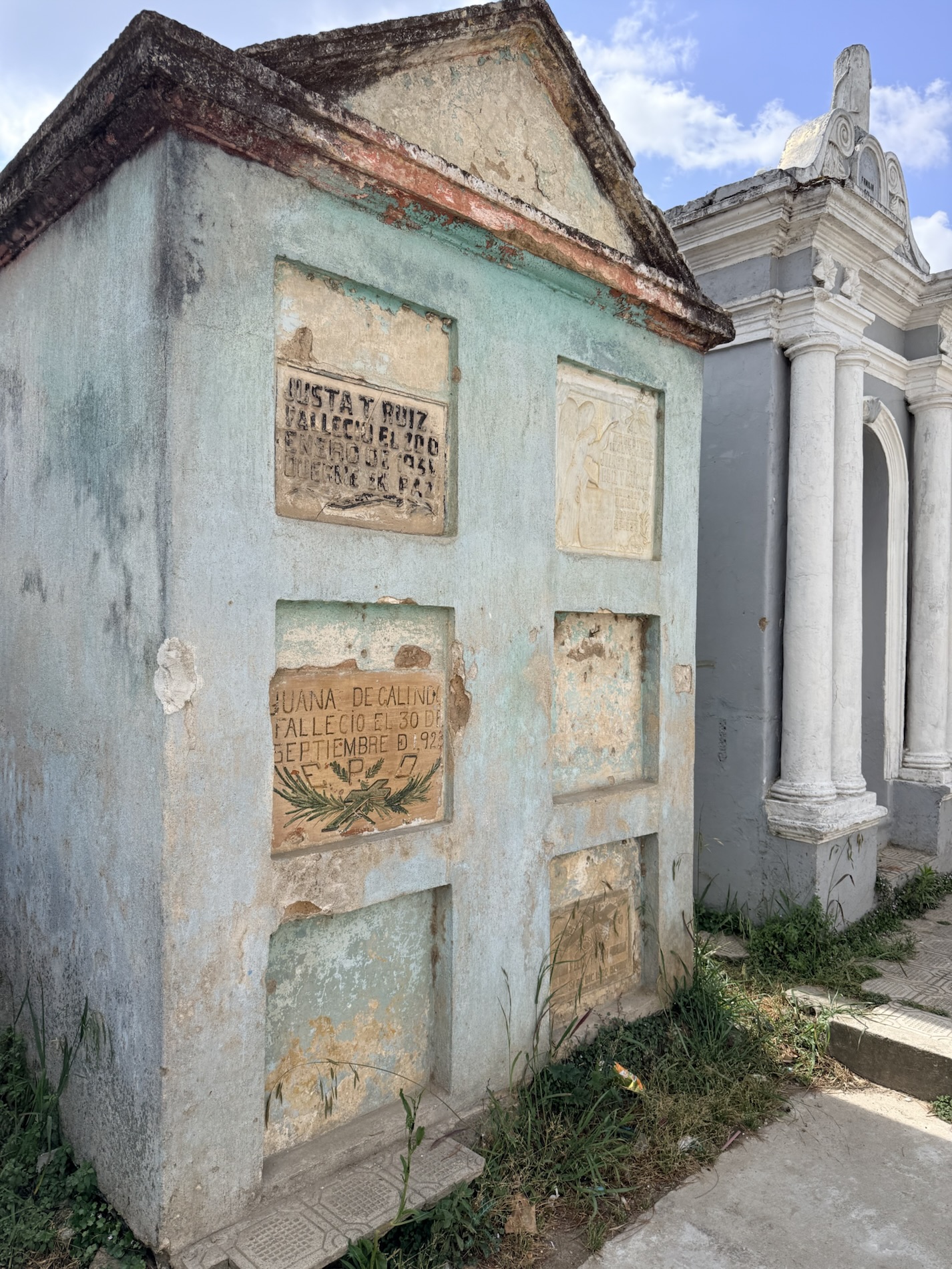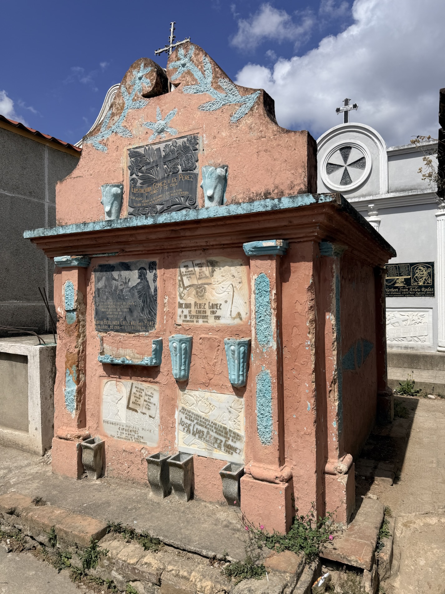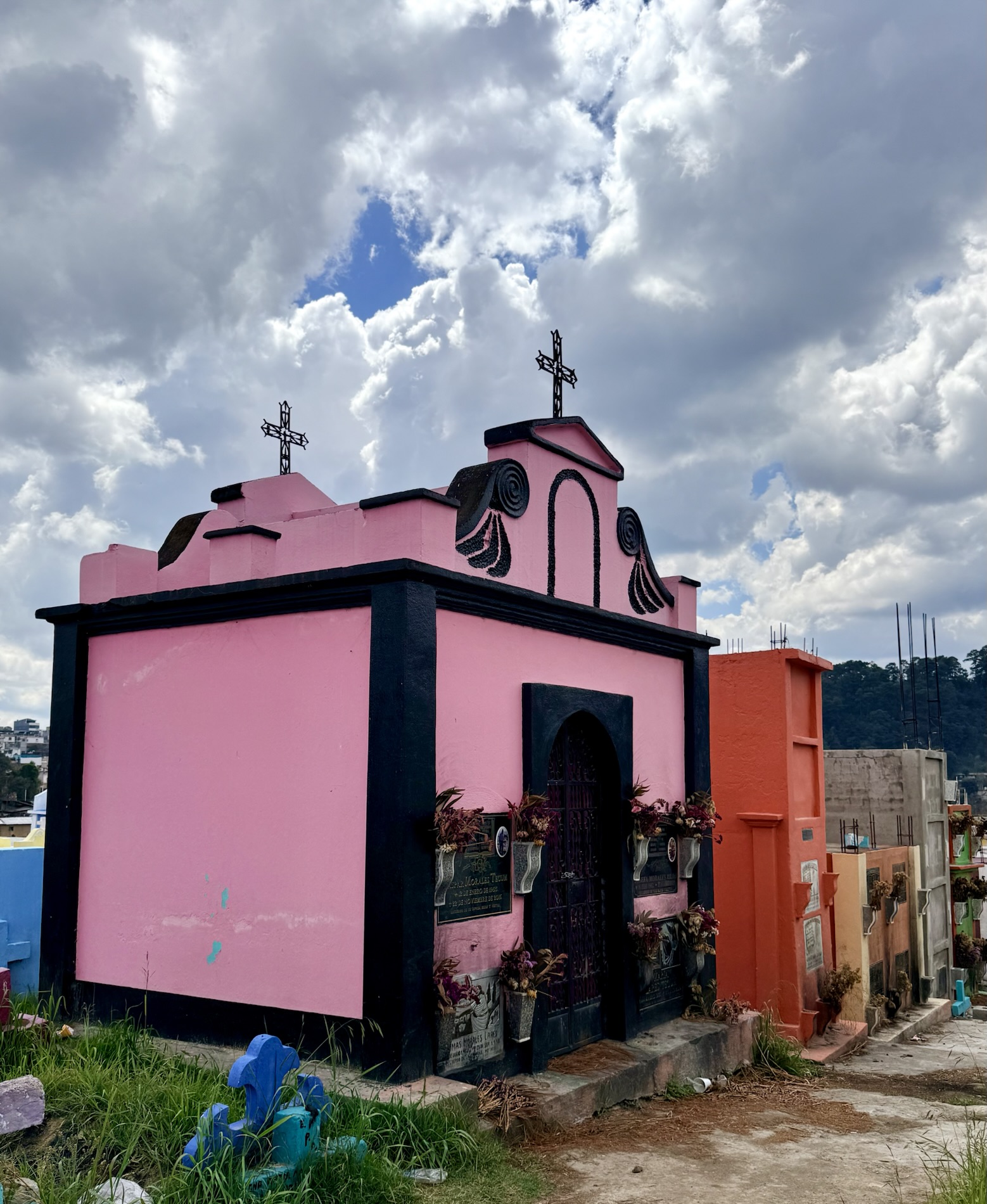 in the hilltop cemetery of candy-colored mausoleums and tombstones –