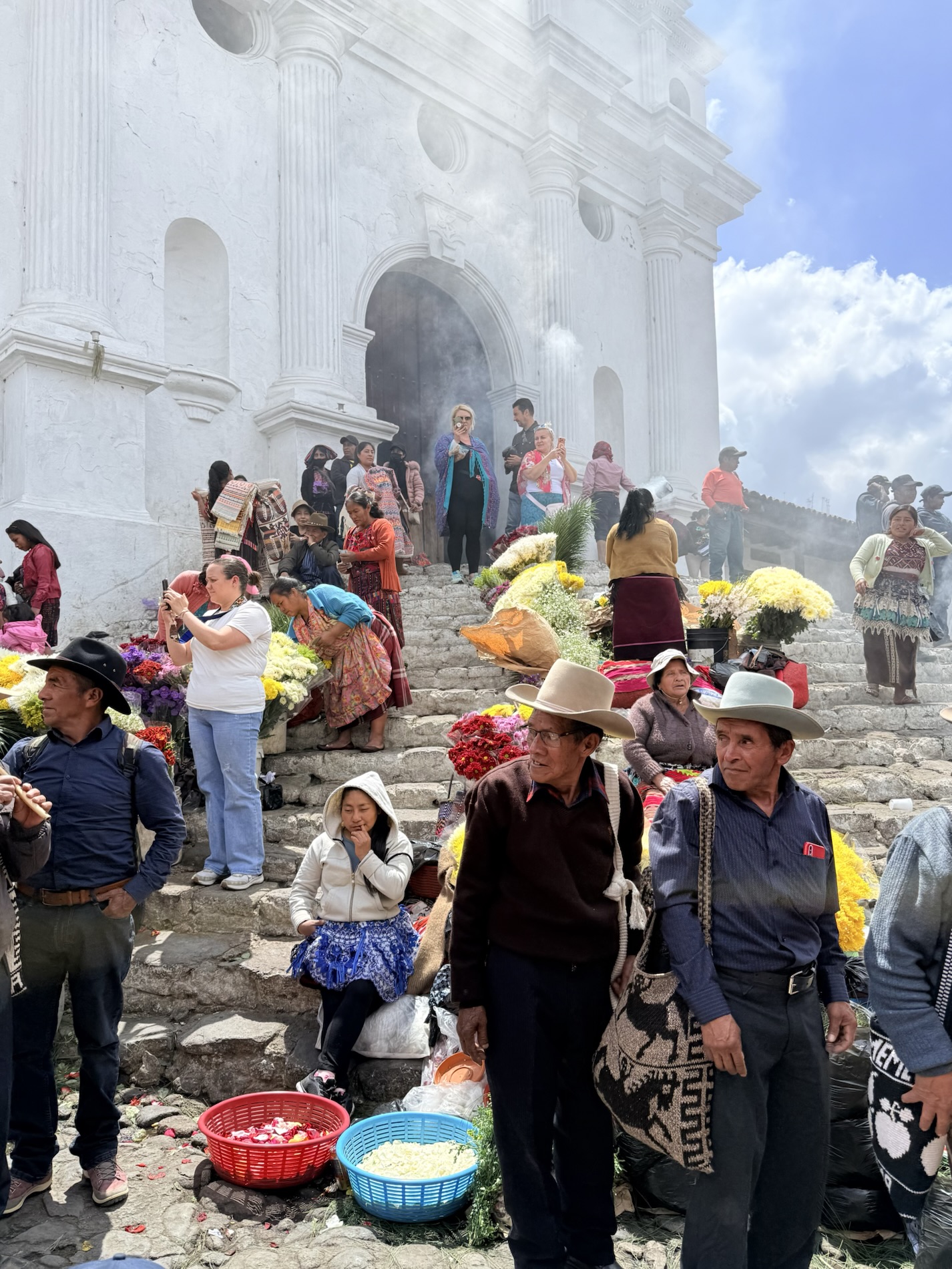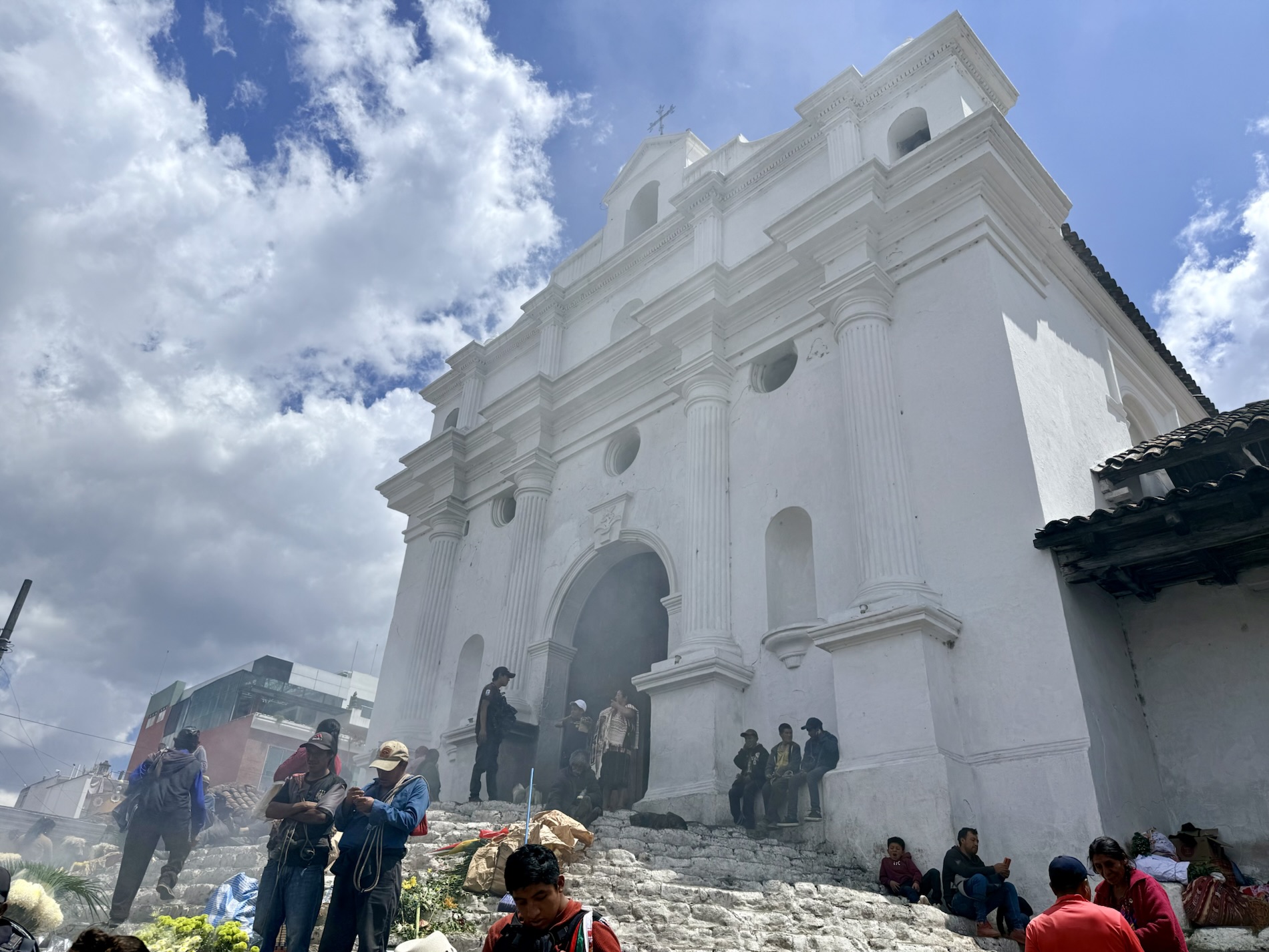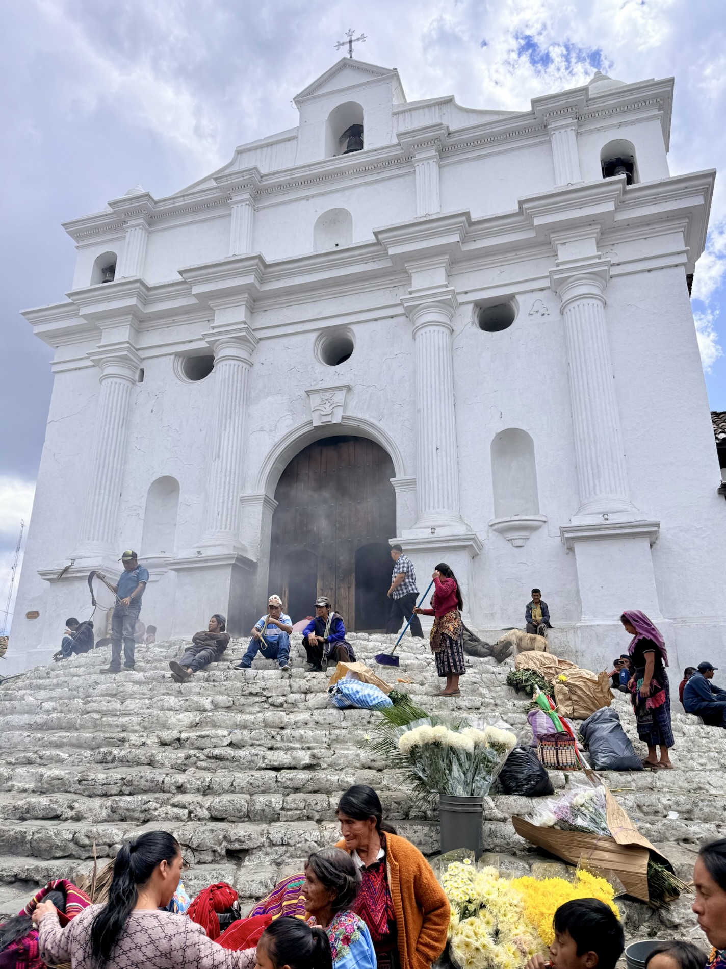 Chichicastenango (nicknamed Chichi) is a town an hour and a half north of Panajachel in a mountainous region of Guatemala, populated by mostly the K’iche’ (98.5%), one of the Mayan peoples. Masheños (citizens of Chichi) are famous for their adherence to pre-Christian beliefs and ceremonies. The town’s famous cofradías (religious brotherhoods) hold processions in observance of their saints around the Iglesia de Santo Tomás, which dates back to the 16th century. It was built on top of an existing Mayan temple. The 18 steps leading up to the church are original and symbolize the 18 months of the Mayan calendar.