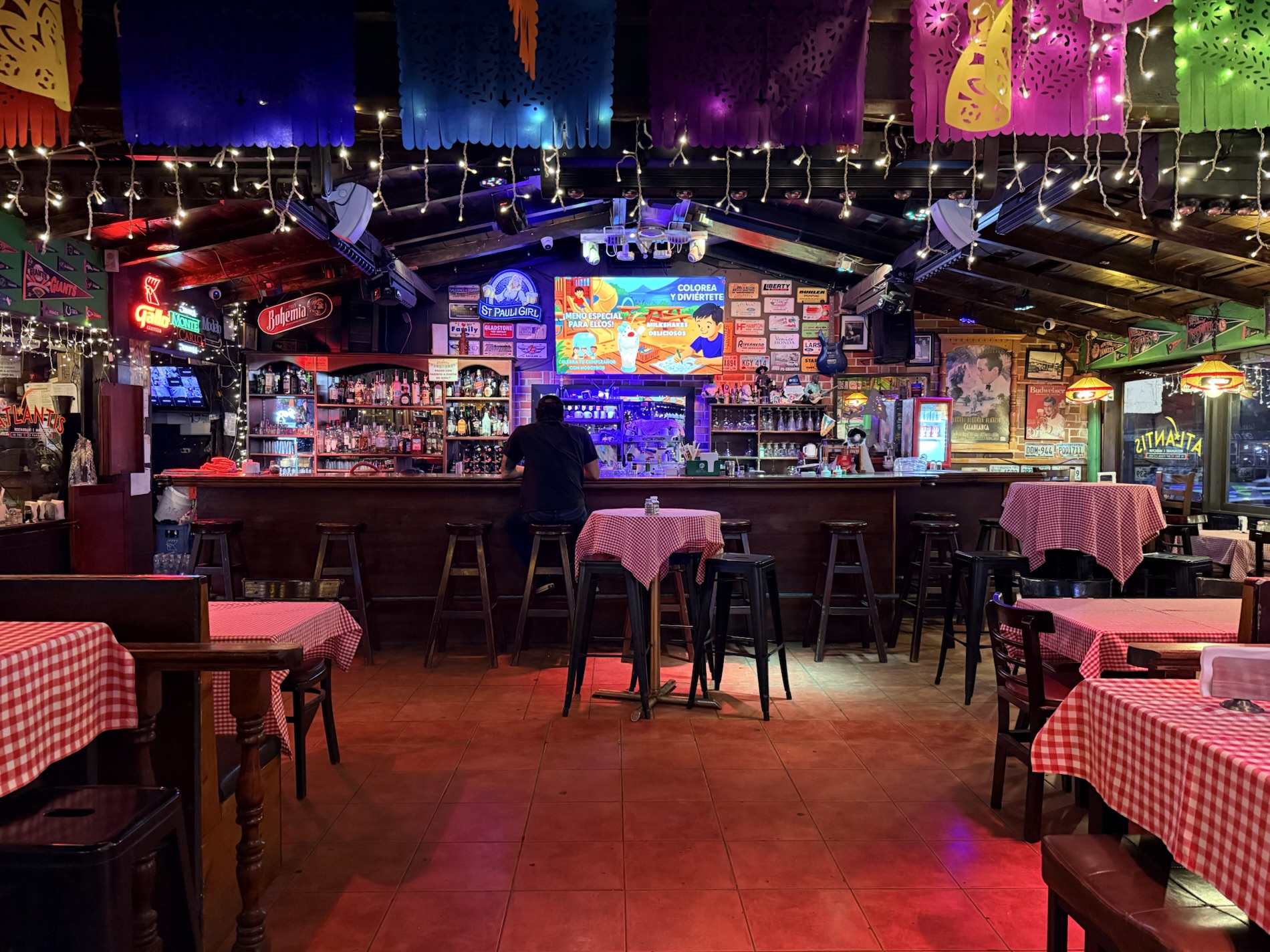 of banderitas at Atlantis, with her husband, gathering her thoughts.
