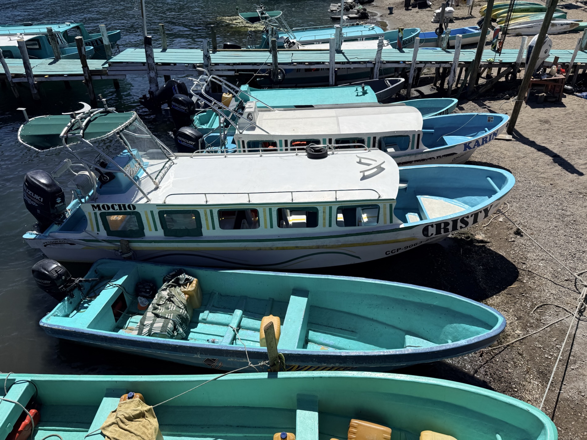 The next day, she takes a lancha southwest across