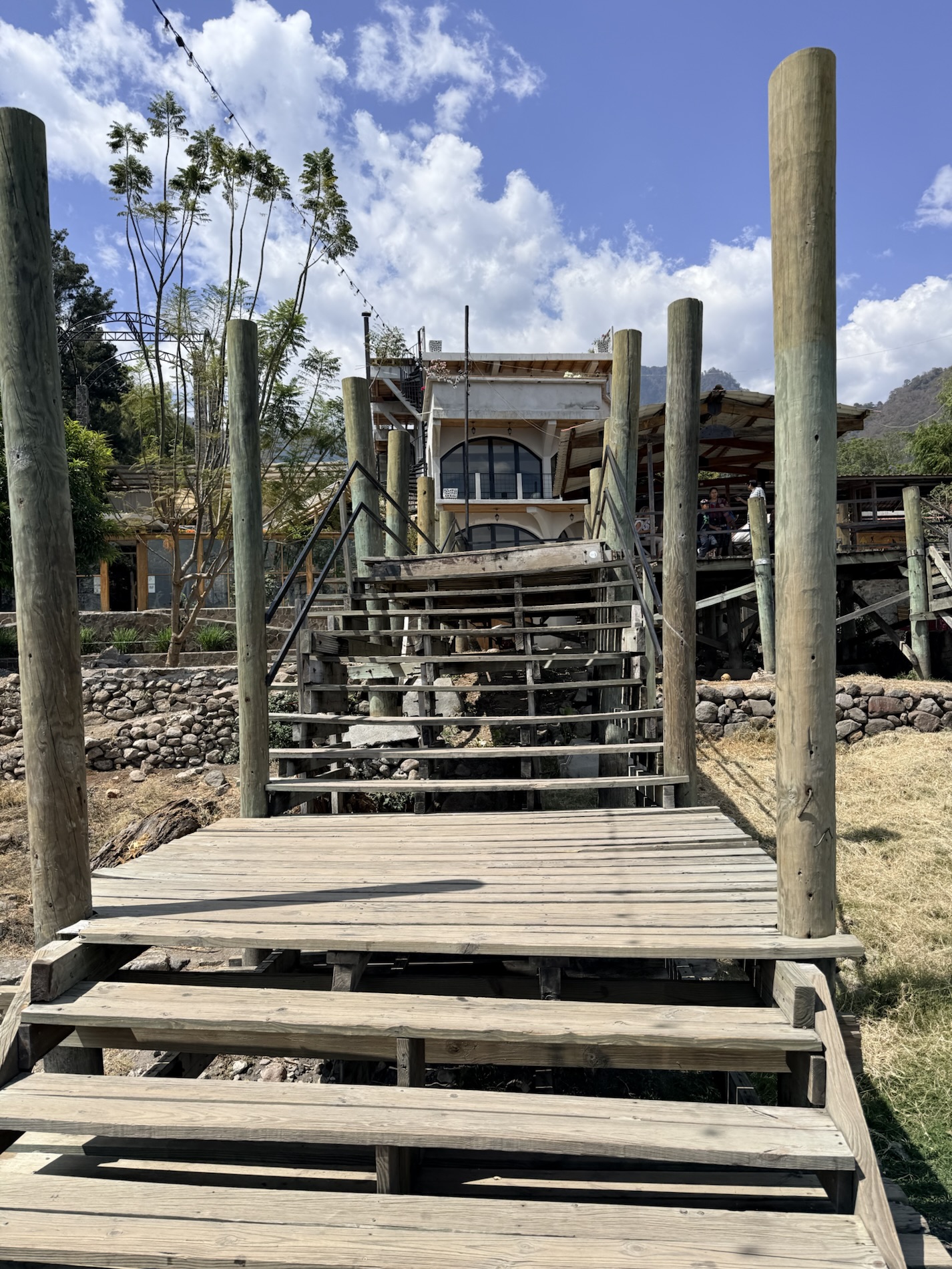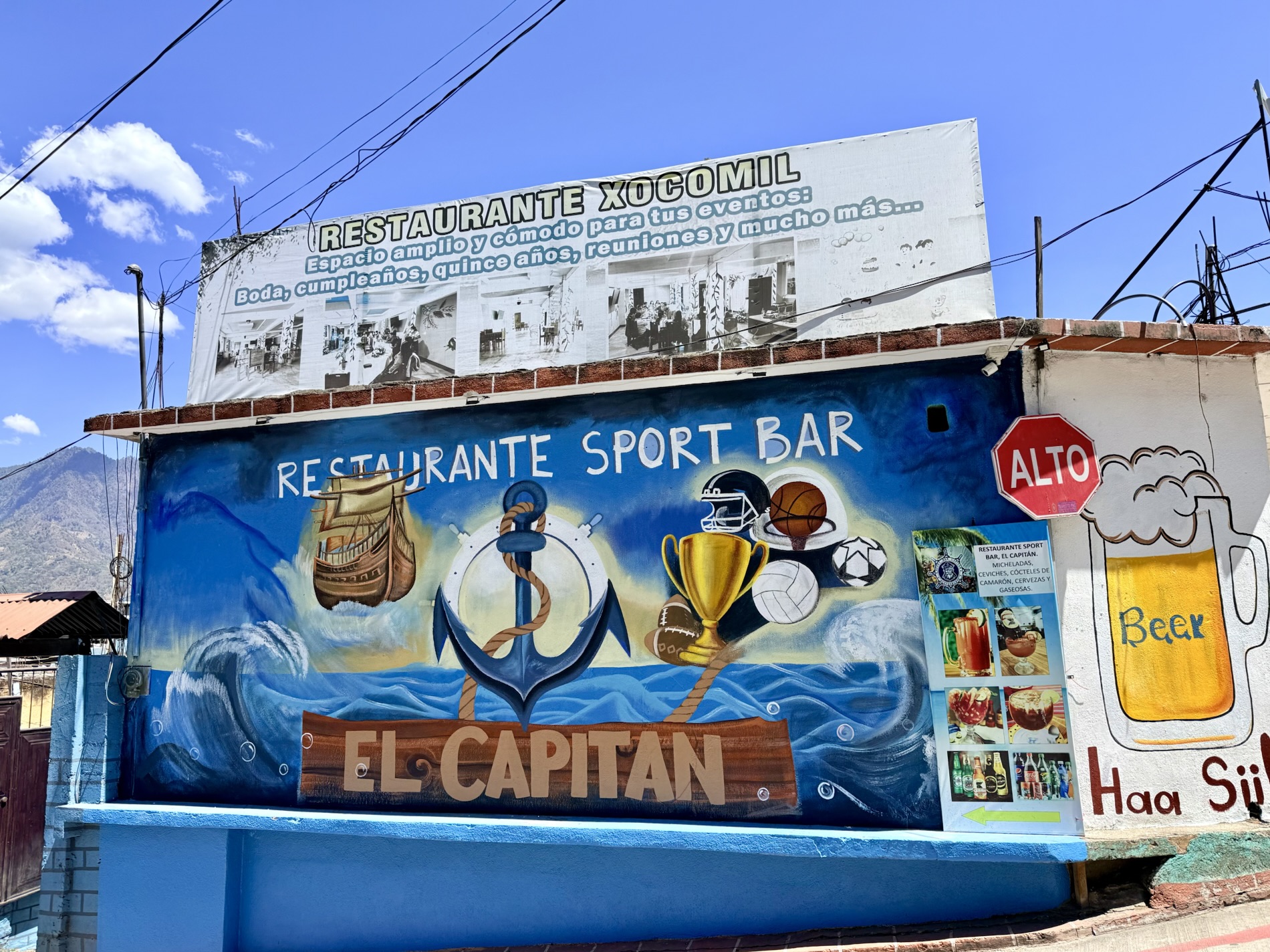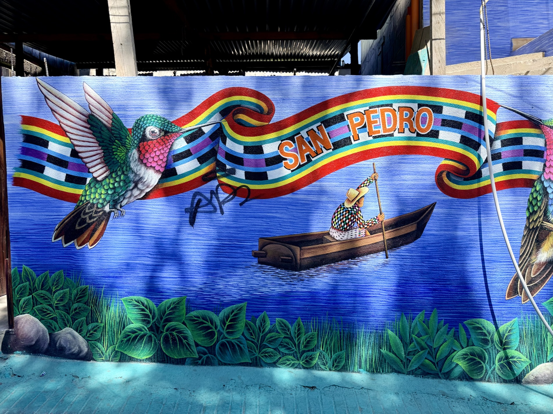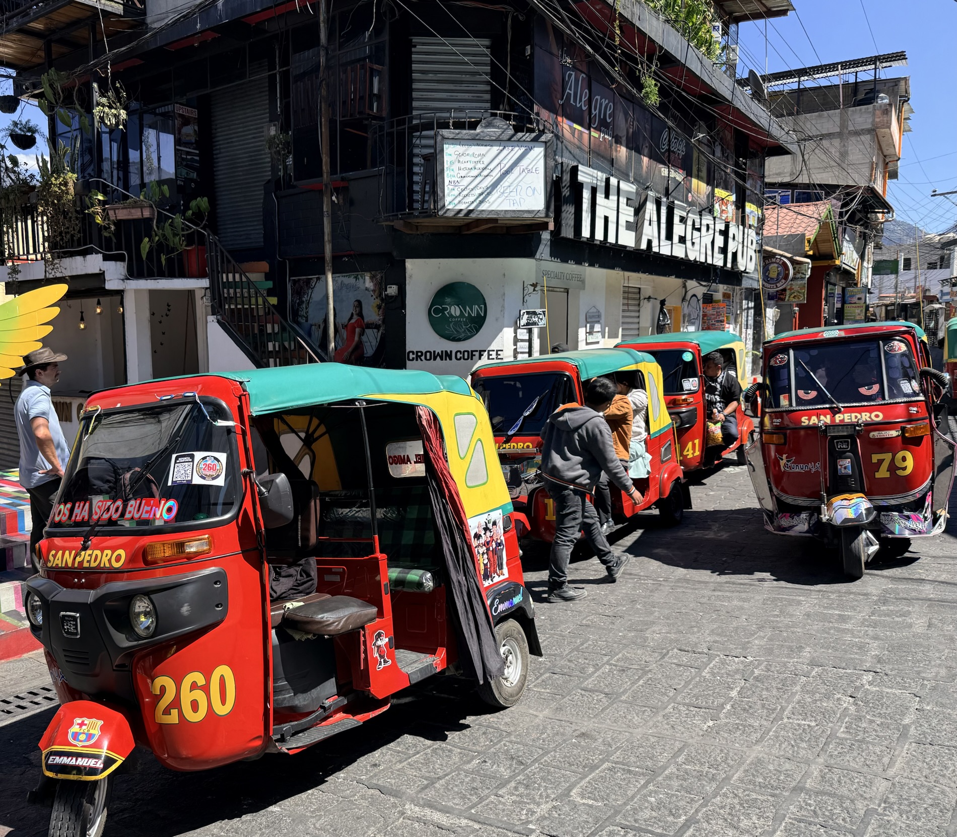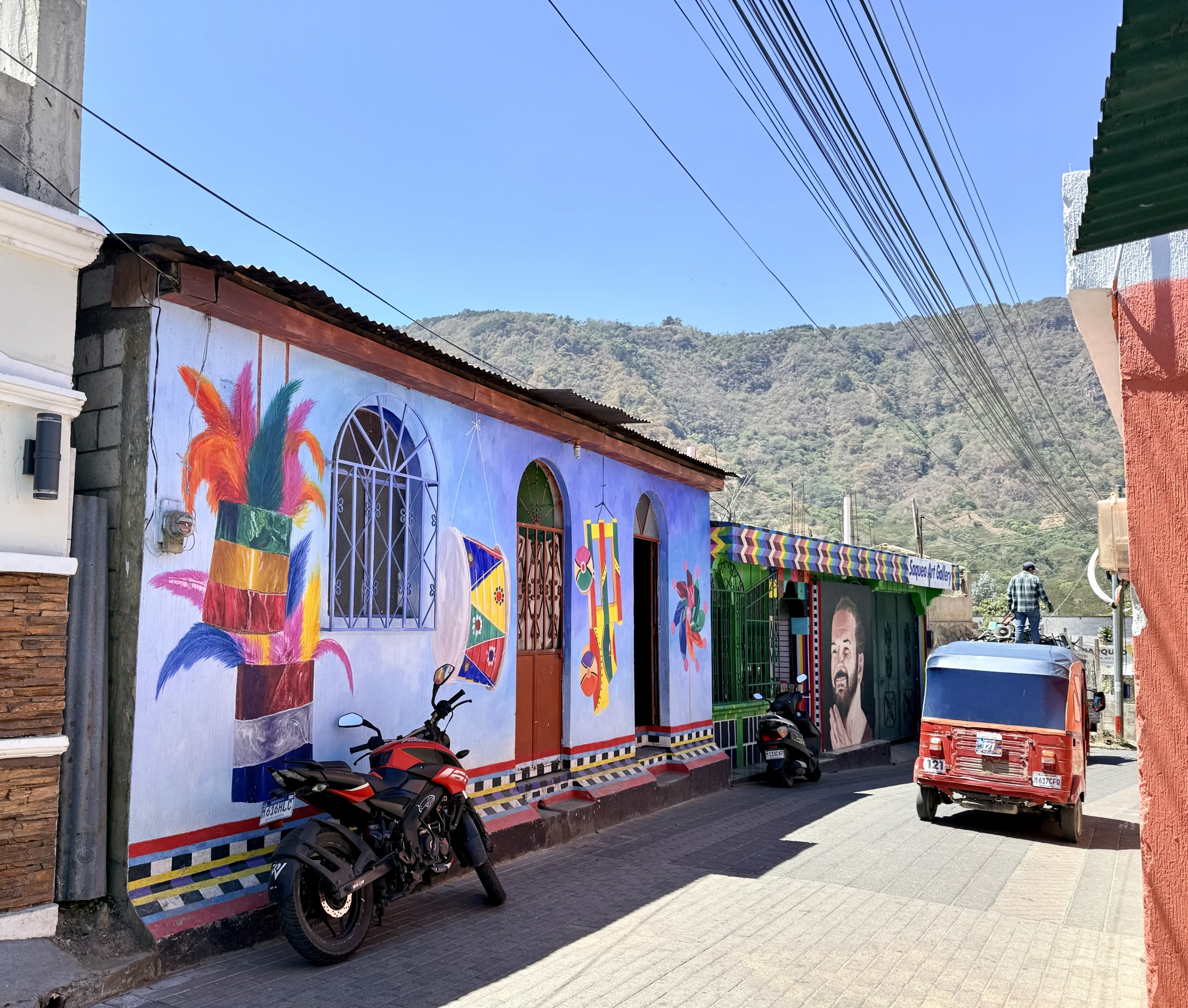 San Pedro la Laguna is known as a backpacker and party town. It is dotted with cheap accommodations, international restaurants, street murals, and terraces perched above the lake. A big Israeli ex-pat community owns many of the businesses.