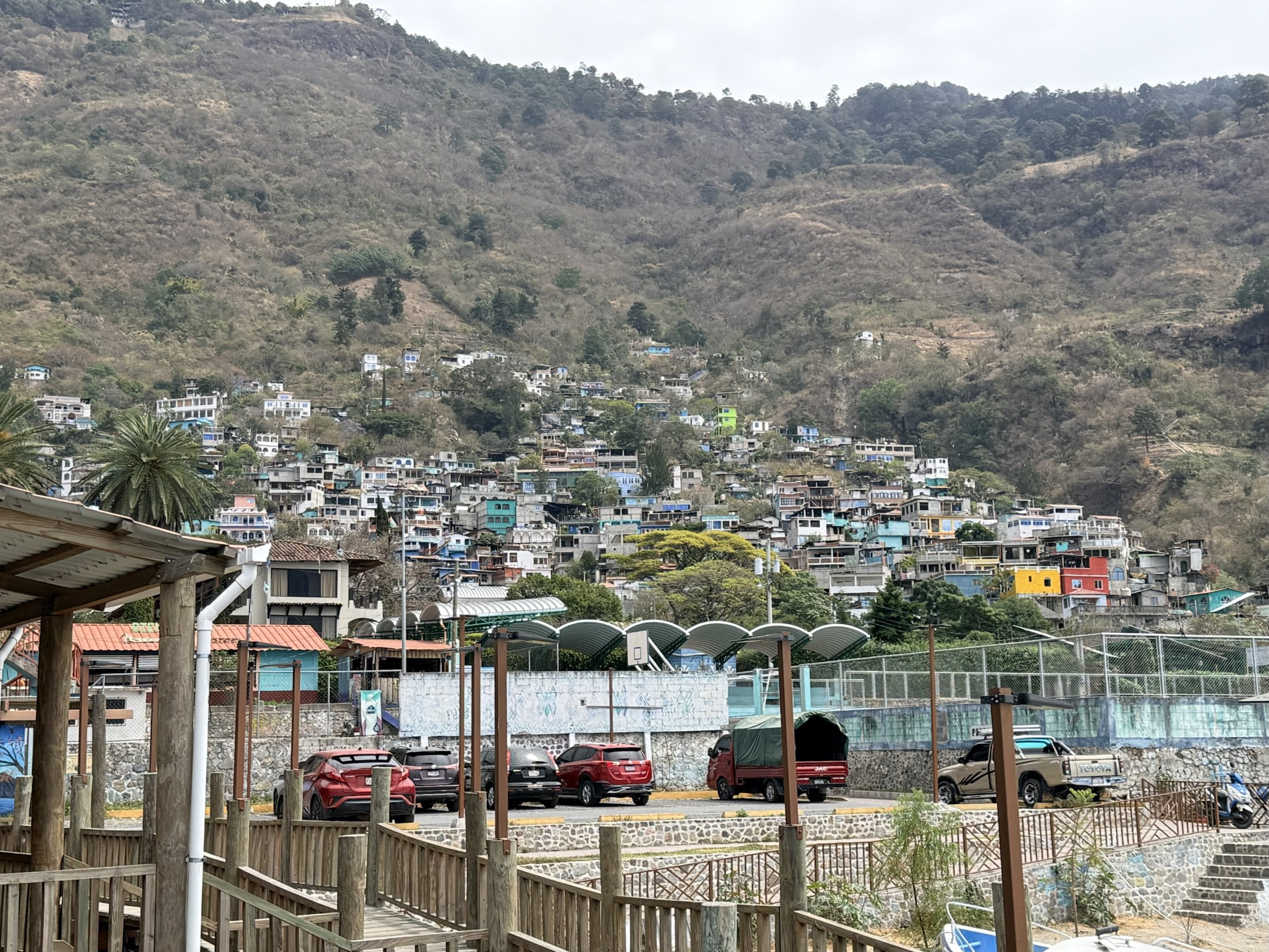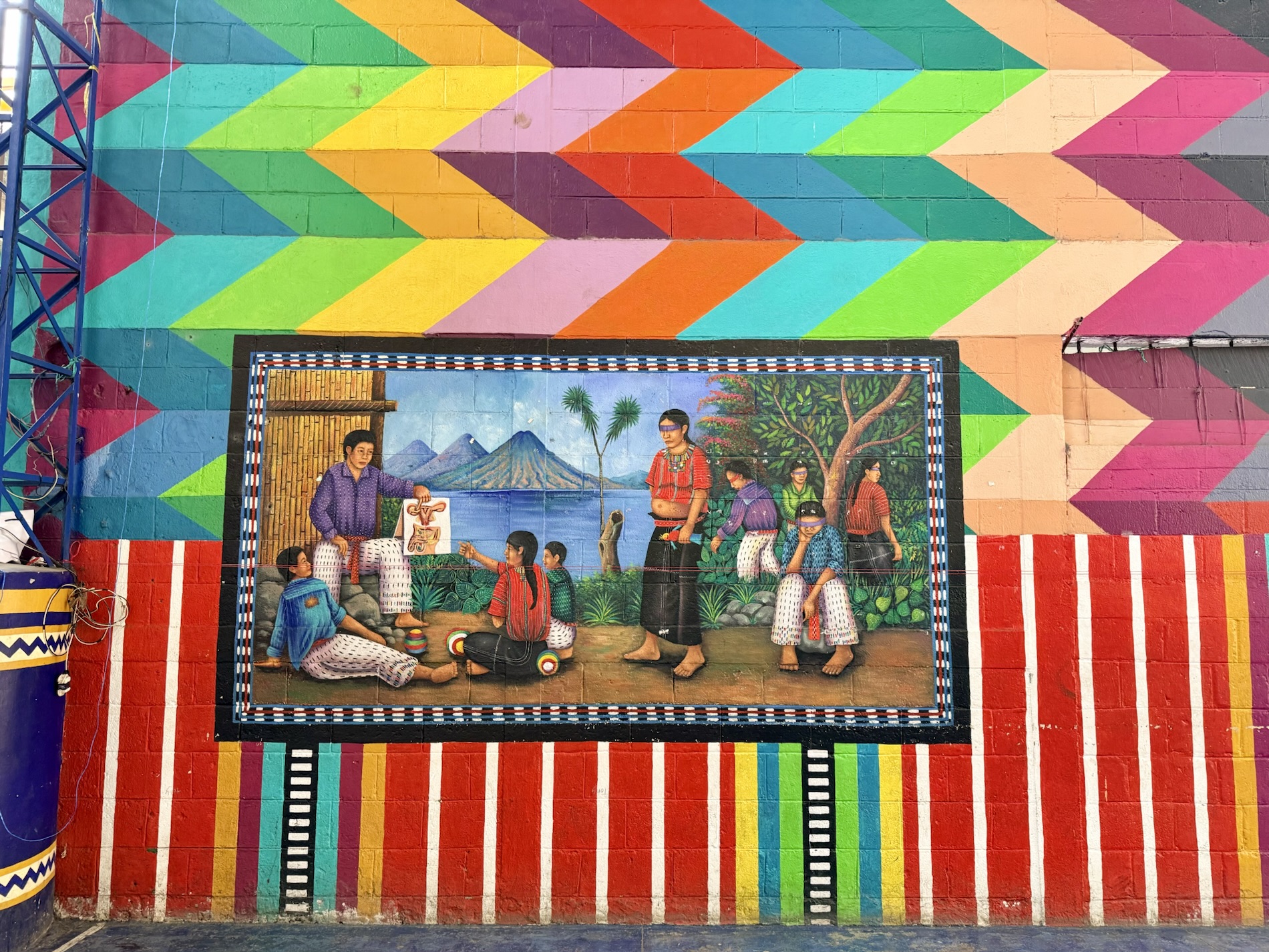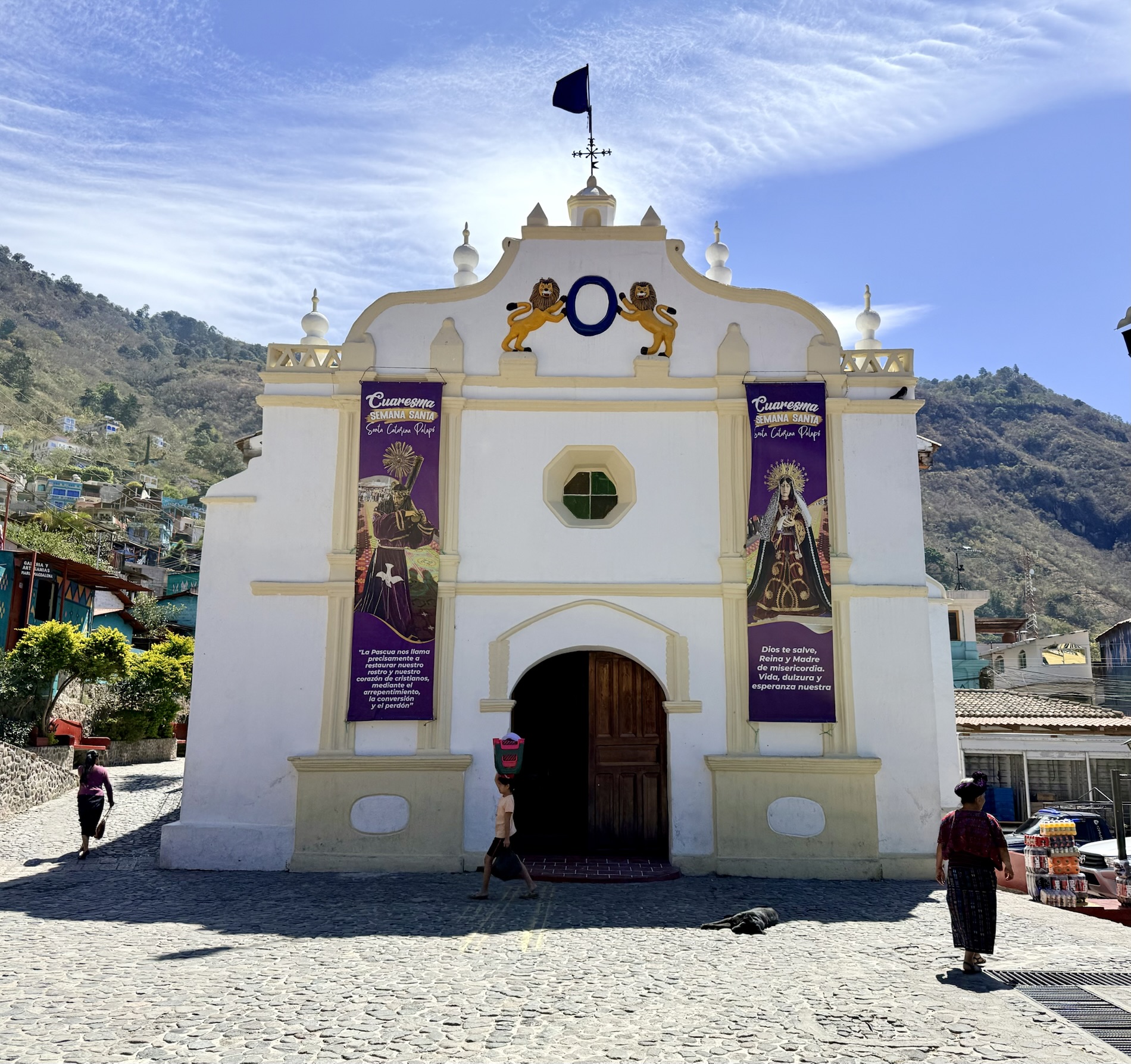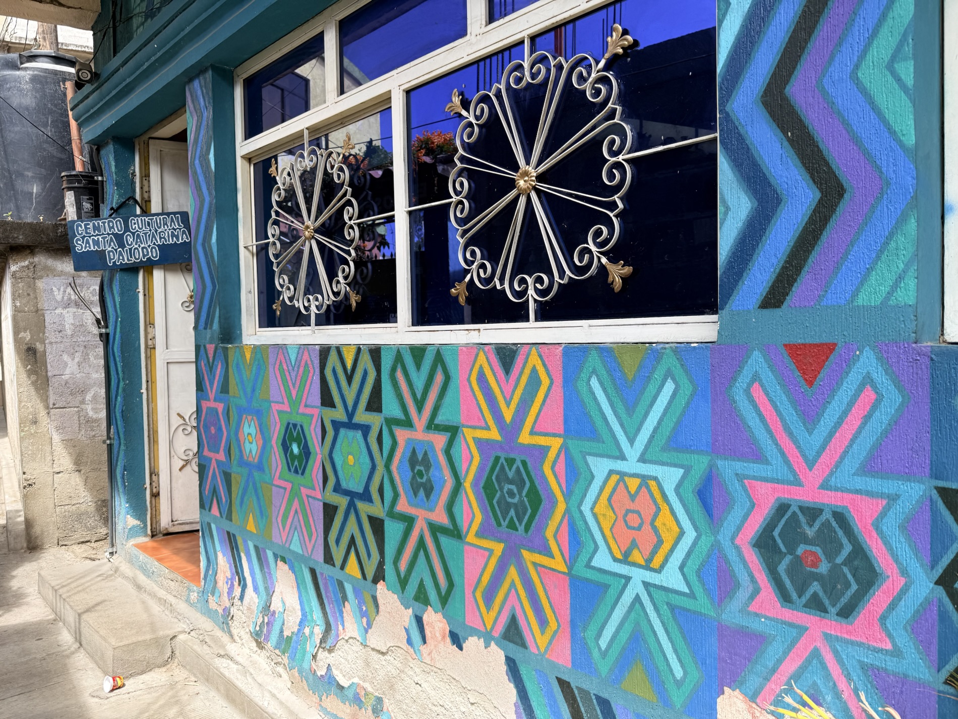 Santa Catarina Palopó is a town we could get to by tuk-tuk as it isn’t far from Panajachel. The town is painted in vibrant colors and Mayan symbols to encourage tourism, thanks to a local initiative Pintando el Cambio (Painting the Change). The project painted all 850 houses and buildings in the town. Local families choose the colors and traditional Mayan symbols they want on their houses. The town boasts great views of the volcanoes.