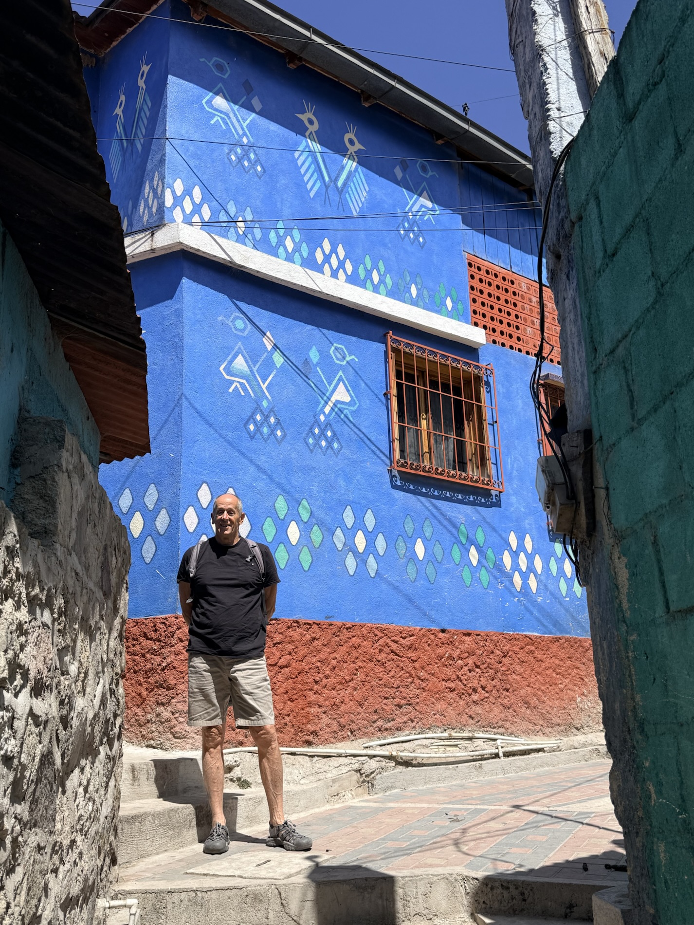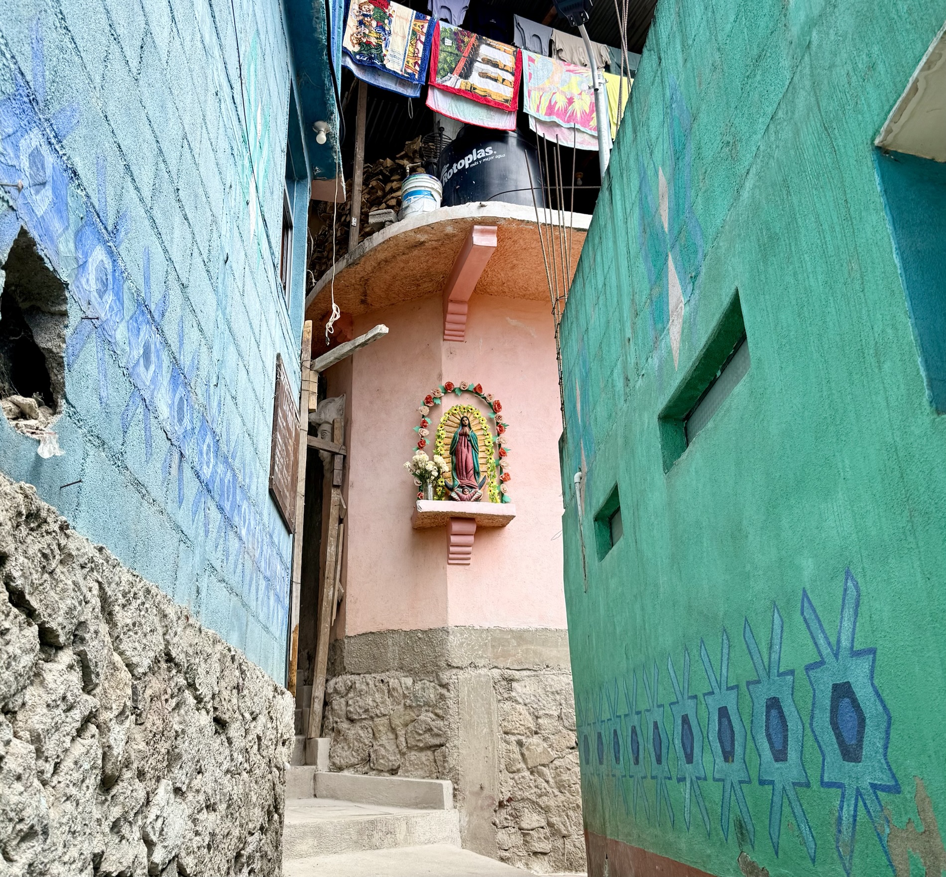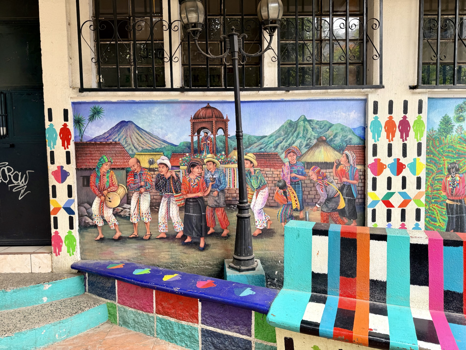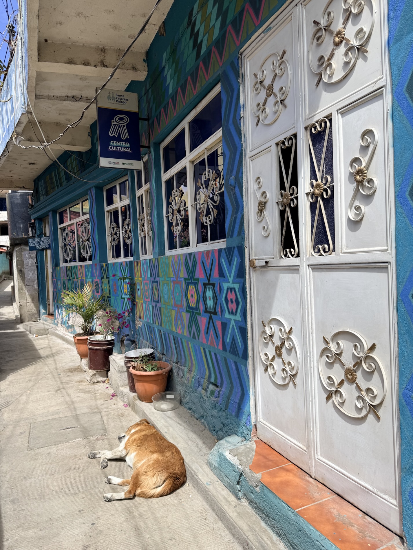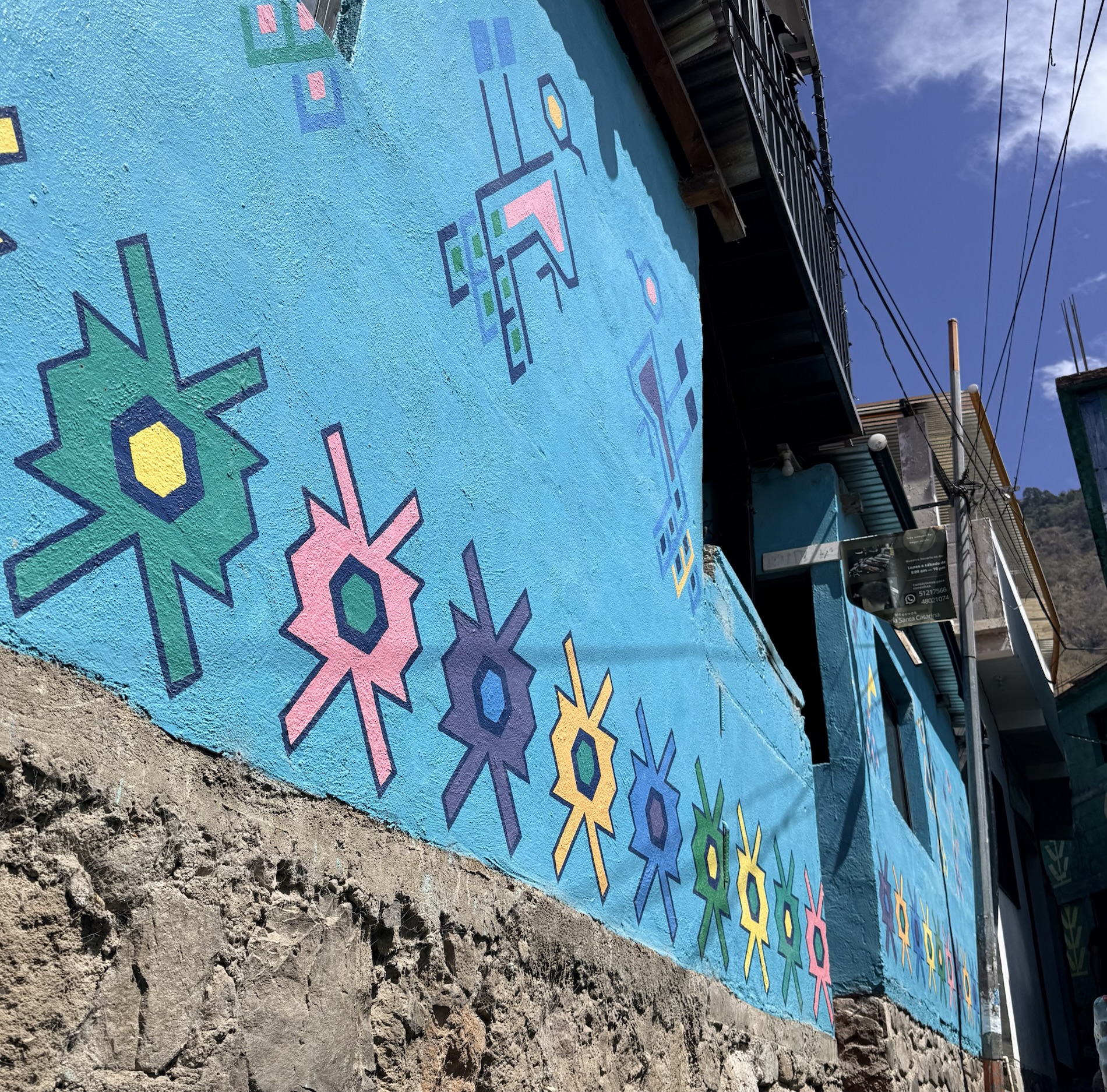 Santa Catarina Palopó is a town we could get to by tuk-tuk as it isn’t far from Panajachel. The town is painted in vibrant colors and Mayan symbols to encourage tourism, thanks to a local initiative Pintando el Cambio (Painting the Change). The project painted all 850 houses and buildings in the town. Local families choose the colors and traditional Mayan symbols they want on their houses. The town boasts great views of the volcanoes.