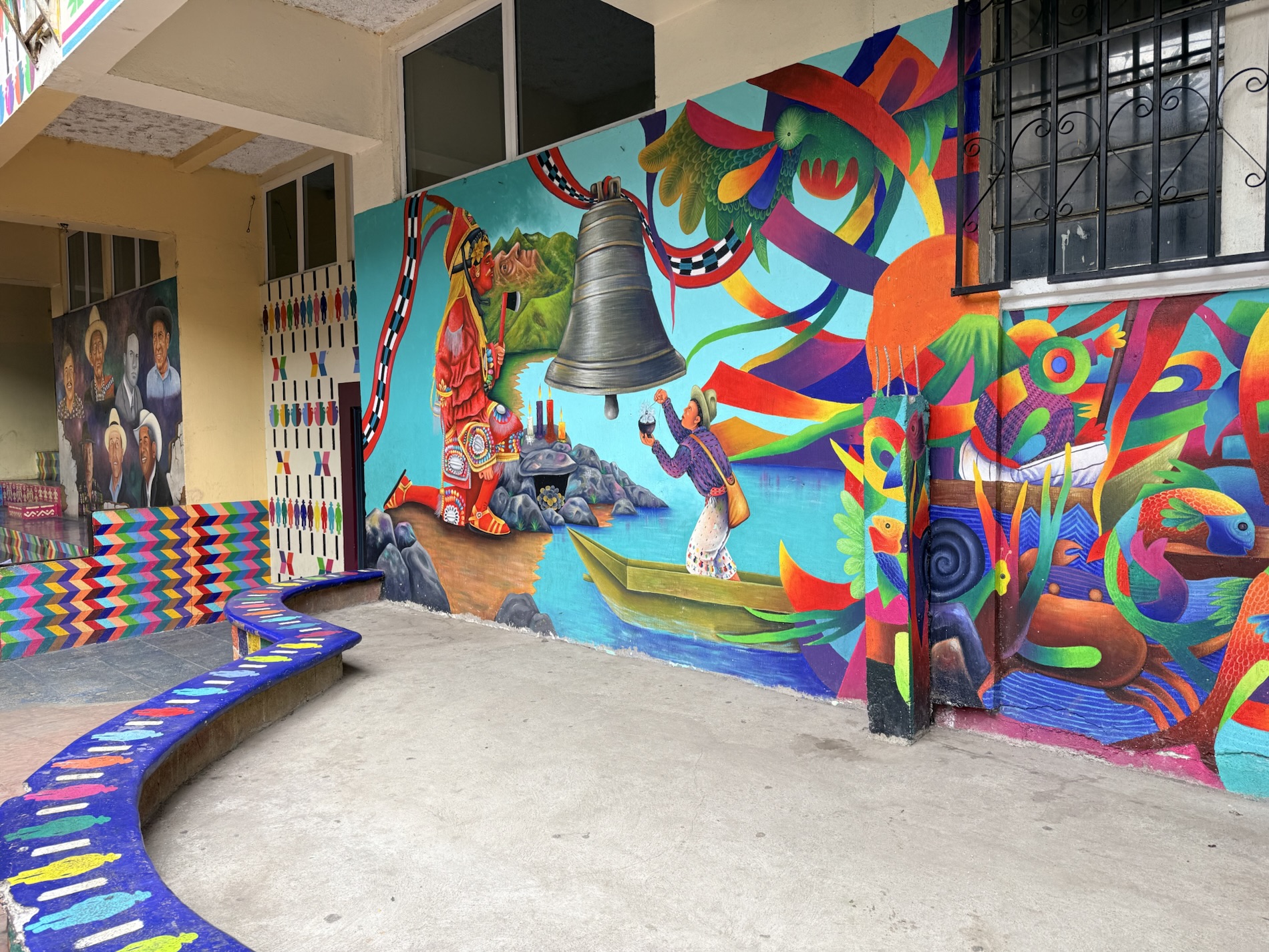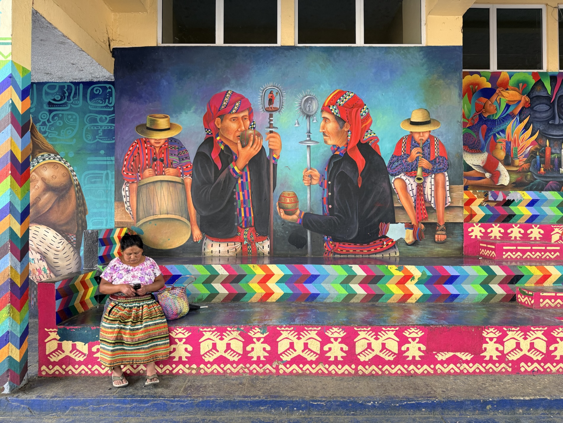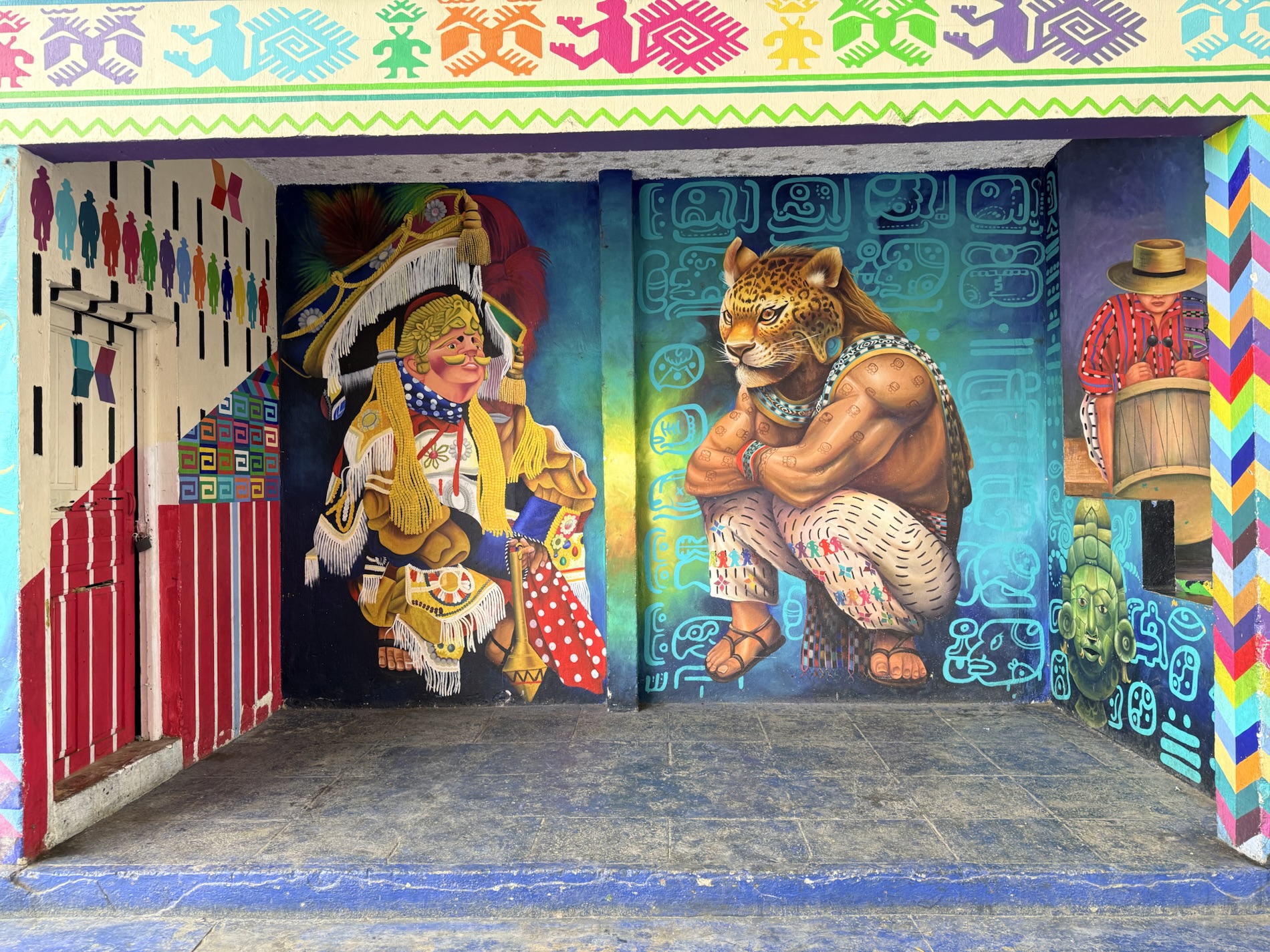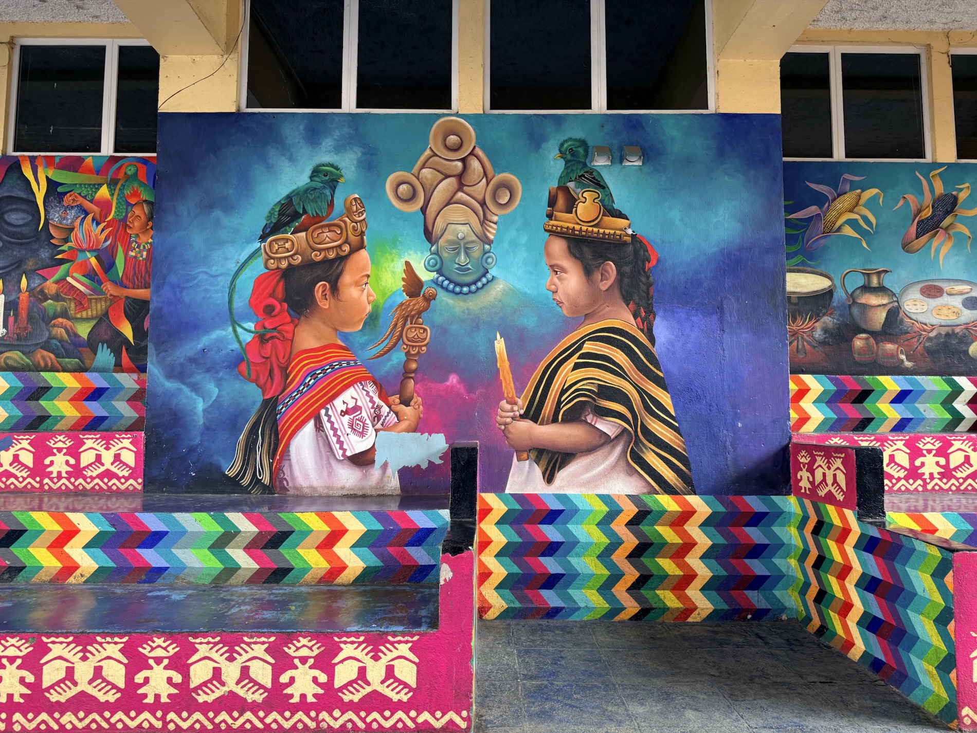 in life. Murals in the town square manifest Mayan stories -