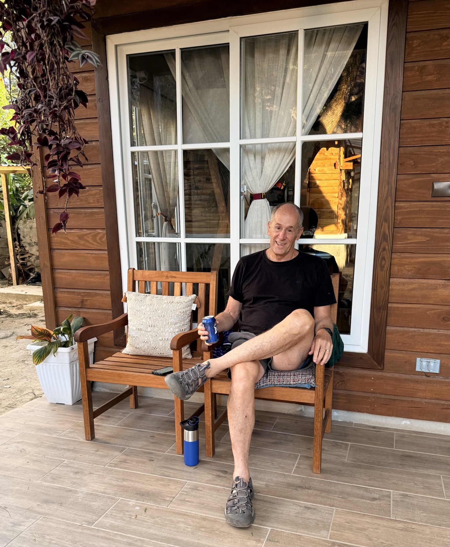 Back in Pana, she sips a beer on the porch with her husband