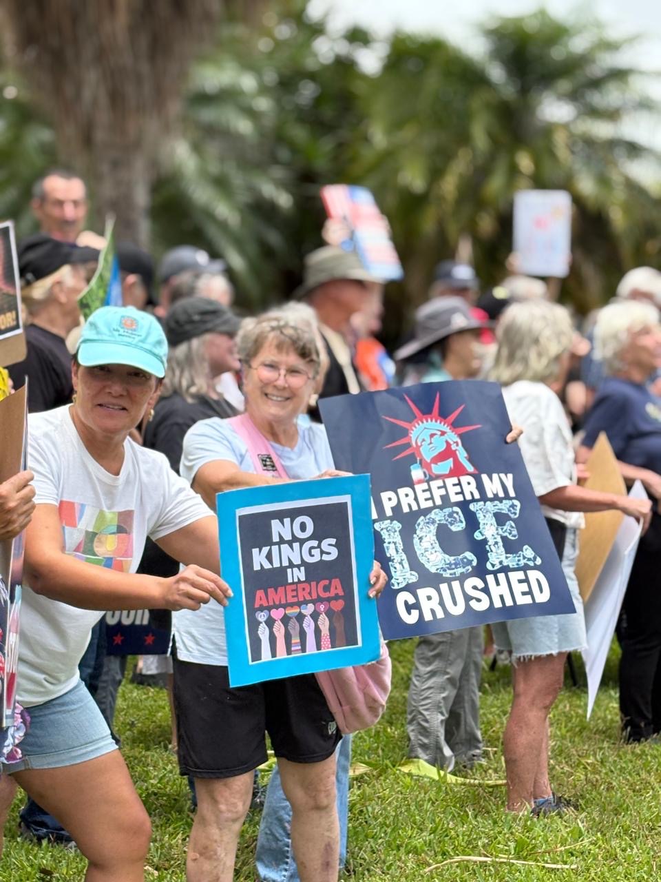 On Saturday, March 28, we met a group of about 75 like-minded folks to wave our NoKings signs and get photographed by phones and a drone. It’s always uplifting to find how many people throughout the world are against our current fascist administration. I was also encouraged by the turnout in over 3,000 locations in the U.S. and in other locations throughout the world.