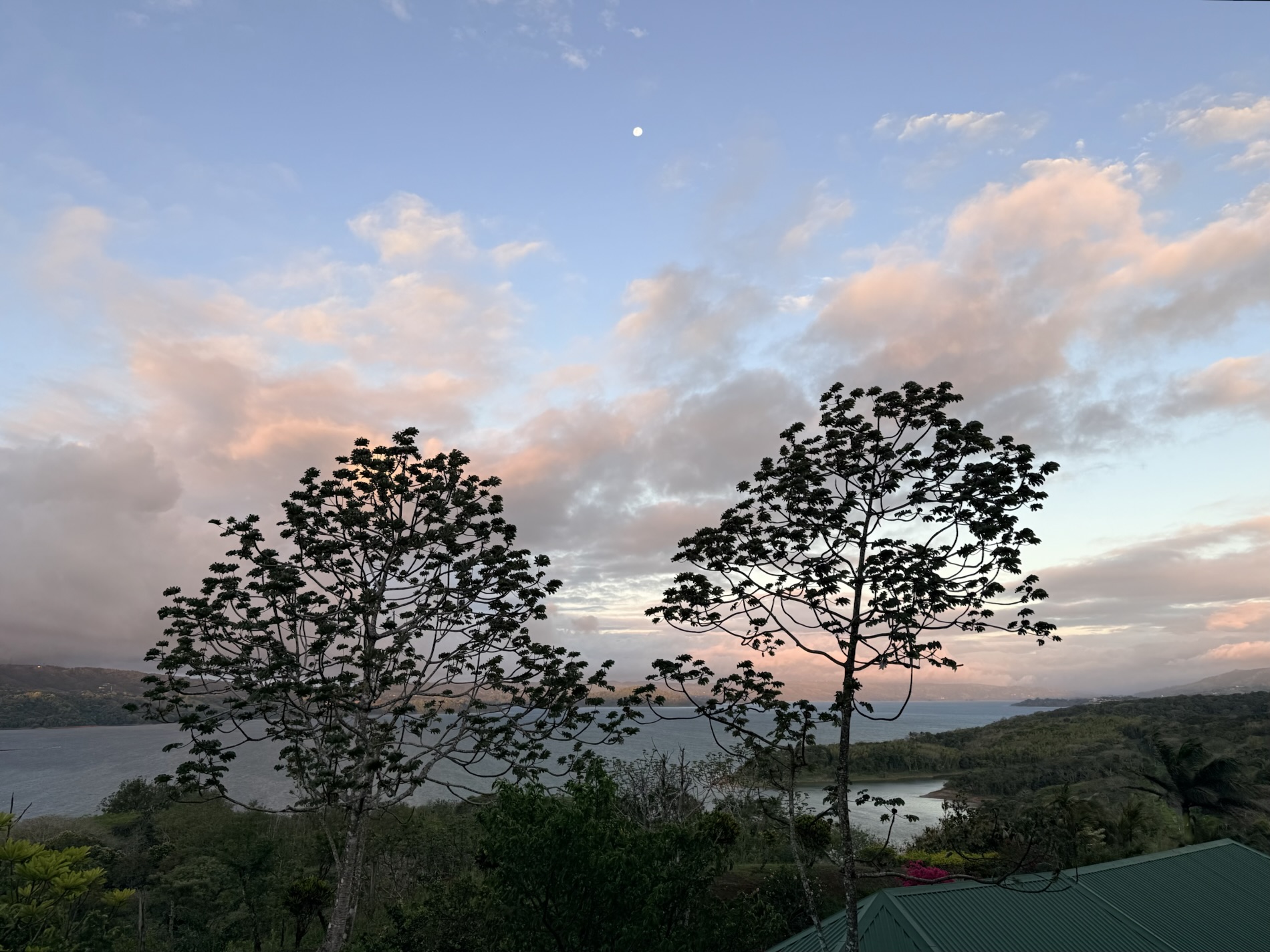 March 31, 2026: Welcome to our March cocktail hour. Let’s have some traditional Guatemalan beverages such as Gallo beer, Ron Zacapa Centenario rum, or “Rosa de Jamaica.” We can finally venture out to our sprawling balcony as the dry season has finally arrived! Maybe we’ll be lucky enough to see Volcán Arenal or the Worm Moon. You can even come along vicariously on our trip to Guatemala and Belize where we explored colorful Guatemalan culture and Mayan ruins. Sunset is is now at around 5:50 every night and, hopefully, we can enjoy some magnificent painterly skies at sunset.