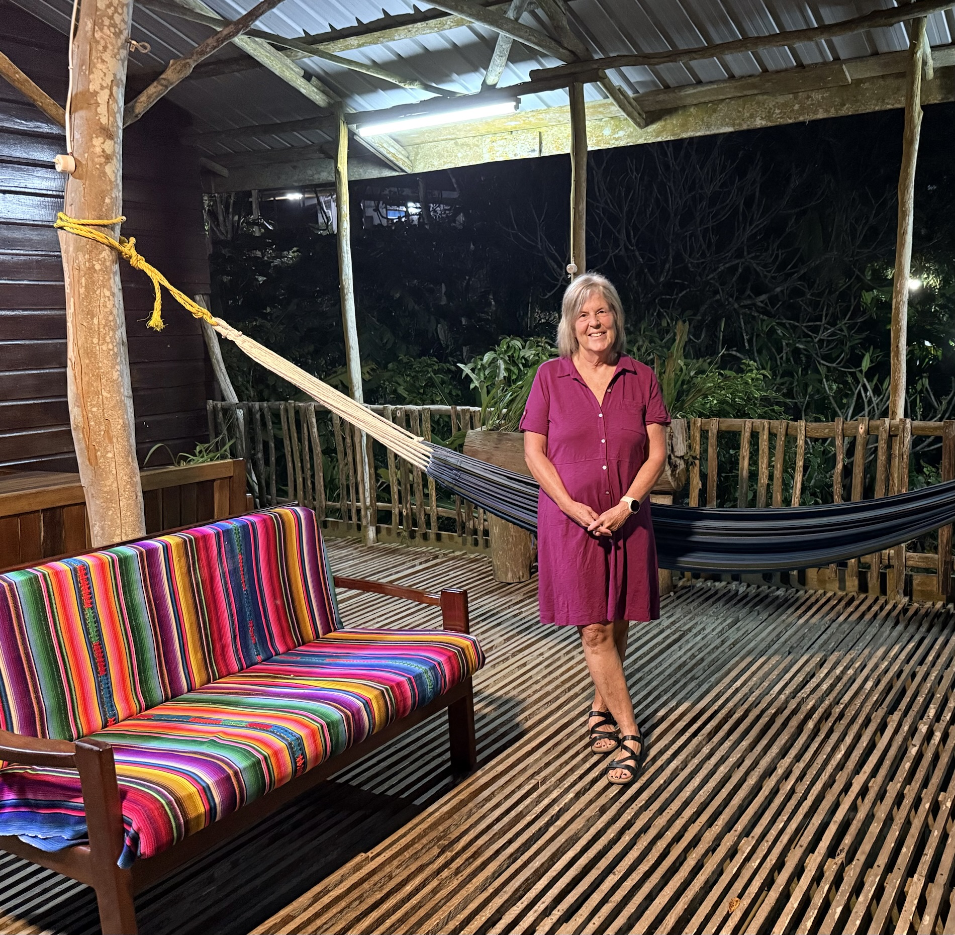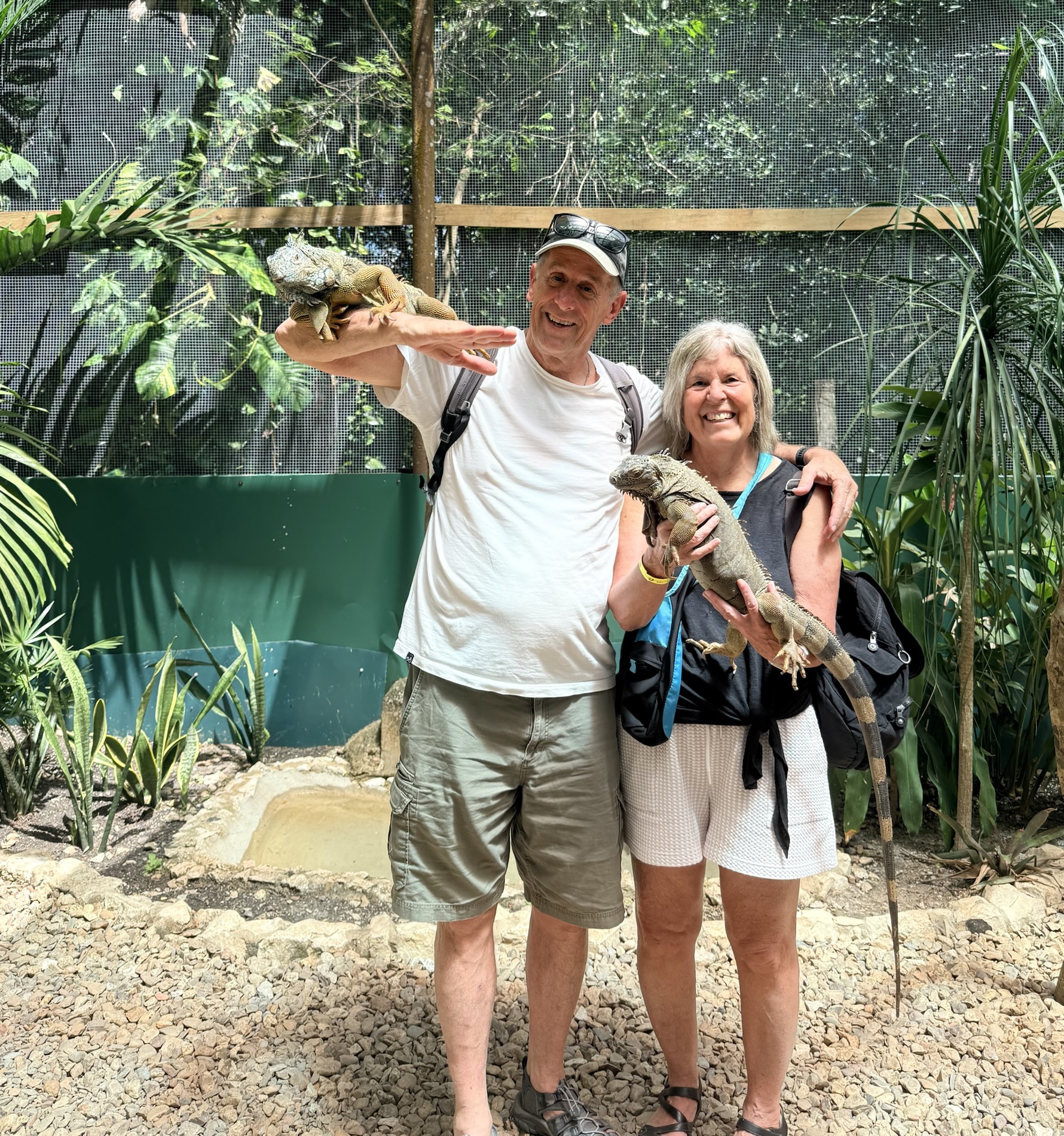 We took an early shuttle from Flores across the Belize border and onward to San Ignacio, Belize. Our first day, we wandered through the town’s Saturday market; visited an iguana project, where we were able to pet and hold the iguanas; ate lunch at San Ignacio Resort Hotel; hung out by the pool at Maya Mountain Lodge; and ate a delicious dinner there at Fiona’s. On our second day, we visited the Mayan sites of Xunantunich and Cahal Pech, ate lunch at the wonderful Ko-ox-han-nah, and then relaxed in the afternoon at the hotel pool and ate another fabulous dinner at Fiona’s. We checked out at 11:00 on Monday but had to wait around by the pool for our 2:30 shuttle back across the Belize border to Flores, where we caught a flight at 8:45 p.m. back to Guatemala City.