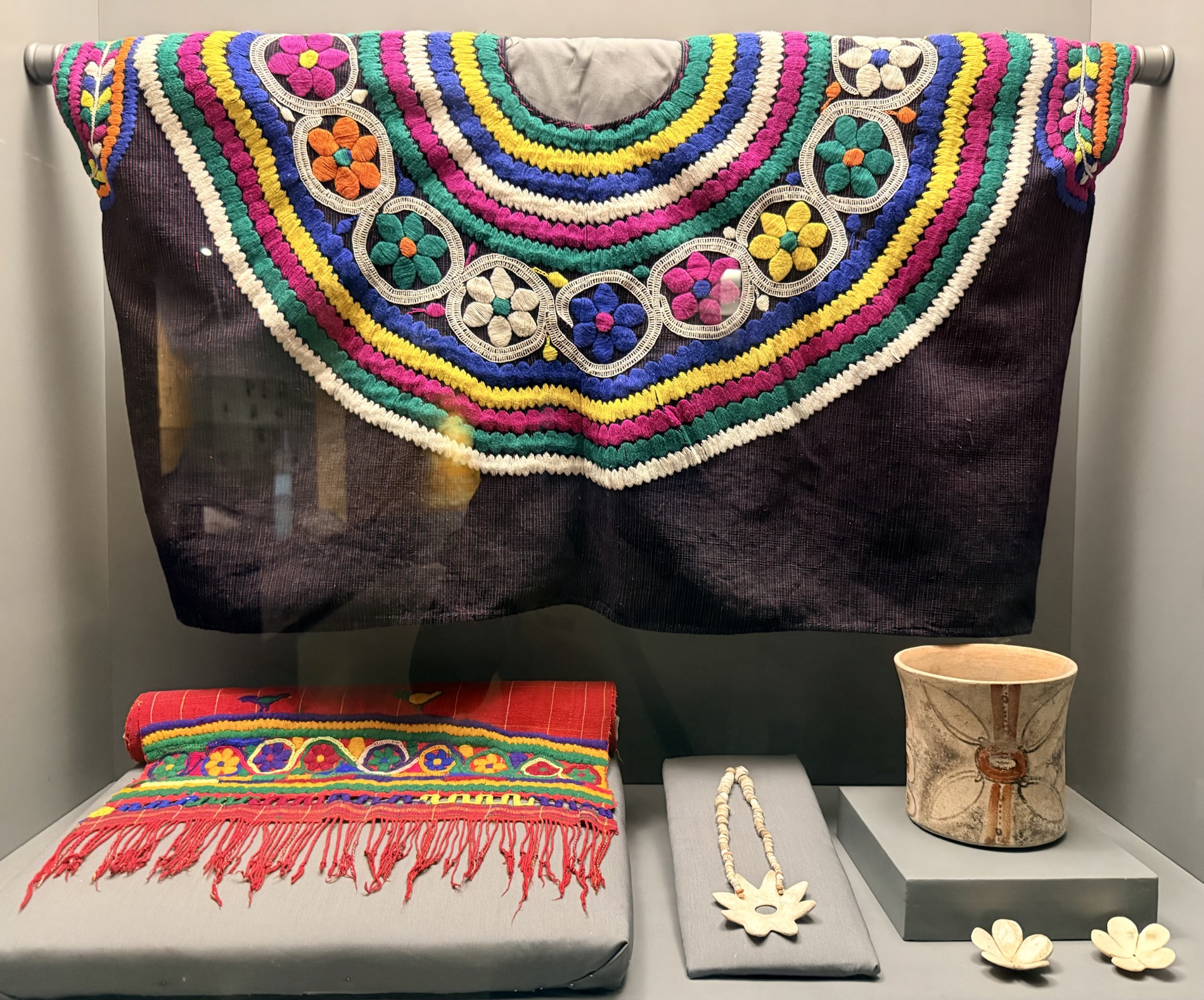 We had an afternoon in Guatemala City after a private driver brought us back from Panajachel to Guatemala City, where we would catch a flight early the next morning to Flores. On that afternoon, we visited the Museo Nacional de Arqueología y Etnología where we saw hundreds of items collected from Mayan sites all over Guatemala, including Tikal. That night we ate dinner at Kyoto Restaurant, where we enjoyed sake, Sapporo and sushi. After we returned from Flores/Tikal and Belize, we spent another day exploring two museums on the beautiful campus of Universidad Francisco Marroquin: Museo Popol Vuh (museum with Mayan art and relics) and Museo Ixchel del Traje Indigena (cultural museum focusing on indigenous dress). We ate another dinner at Kyoto, and left early the next morning (5:30 a.m.) to fly back to San José.