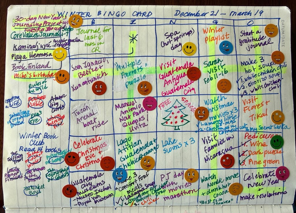 I wrapped up my Winter BINGO card and made up a new Spring BINGO card. I was finally happy to put away my 2025 bullet journal, which held my Winter BINGO card.