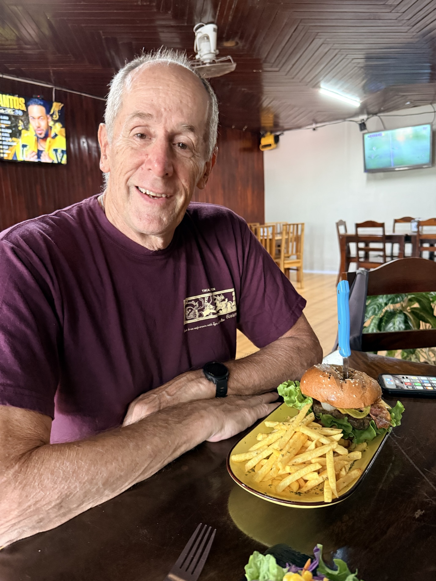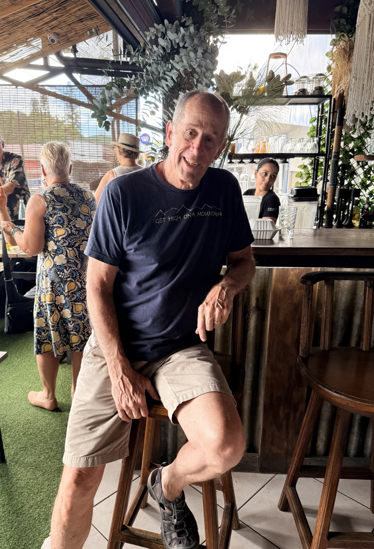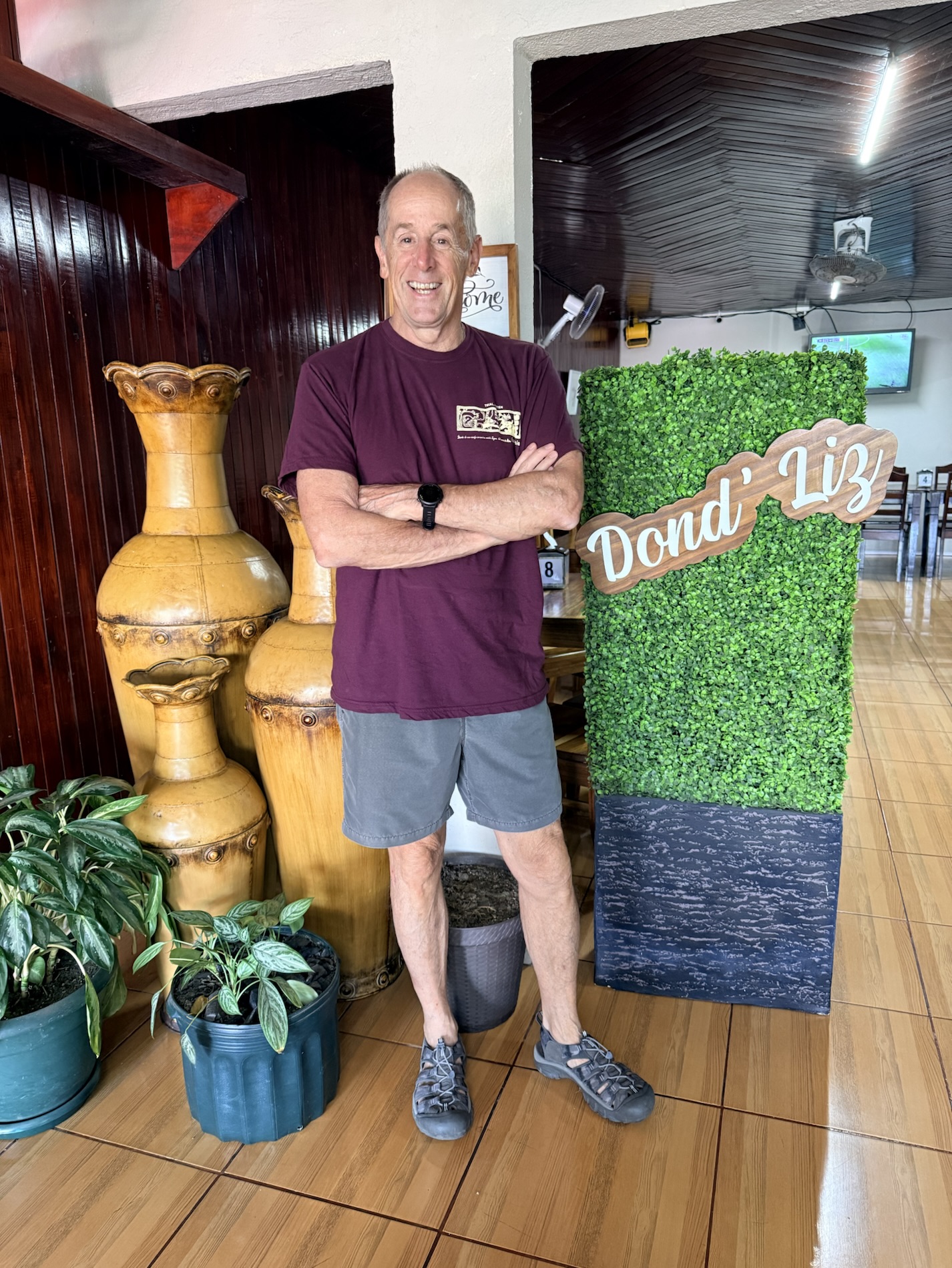 Once we returned home from Guatemala, we went to Moya’s Place to listen to the debut of the band Deep Cover; we are acquainted with two of the members. I enjoyed a Pad Thai with shrimp while Mike had a Fajita Bowl with chicken. We also have on our Spring BINGO card to try three new restaurants before we leave Costa Rica, so we tried Dond’Liz, a restaurant in Tronadora that we discovered has a great lending library. I enjoyed my grilled tilapia with garlic sauce while Mike ate a hamburger. I picked up a book, My Grandmother Asked Me to Tell You I’m Sorry by Fredrik Backman, adding additional pressure on myself to finish all the books I brought from Virginia so I don’t have to haul them back home. After going there for the first time, we ended up going there twice in the same week, the second time just before we attended El Gran Tope de Tronadora. On Friday night we went out with Darrell and Farida to Casa Italia in Nuevo Arenal, where we had a wild night filled with laughter. 🙂