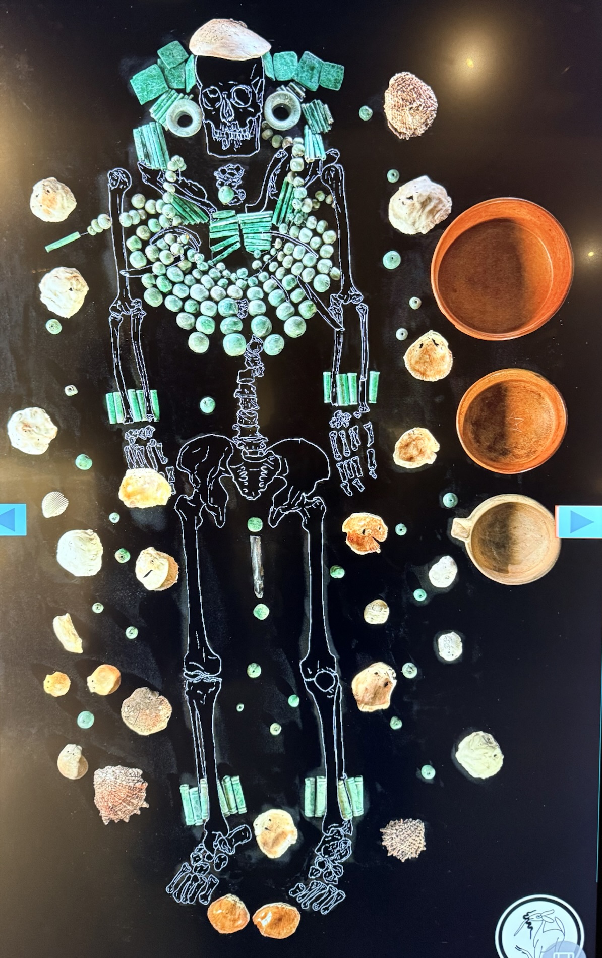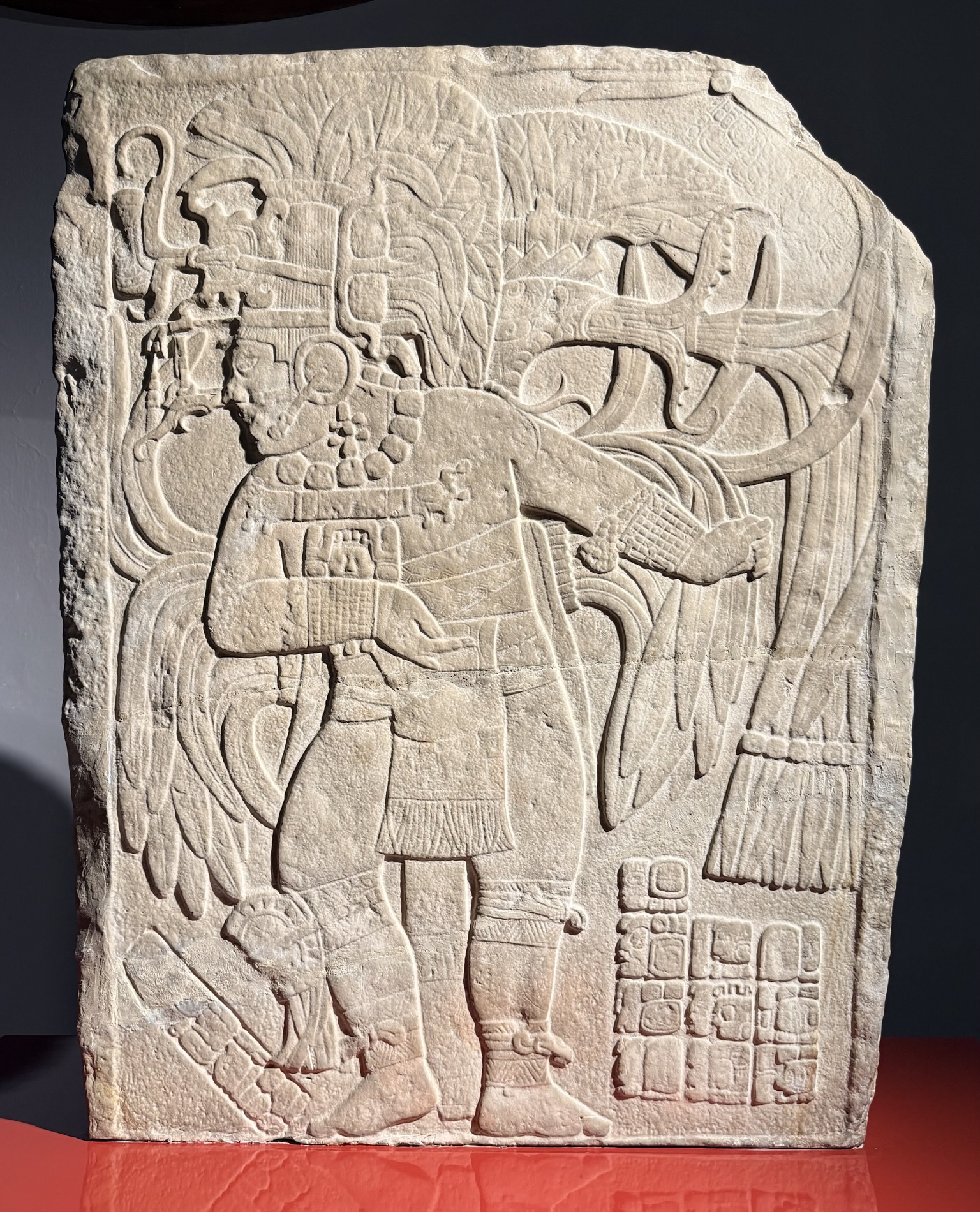 We learned about Jasaw Chan K’awil (682AD- 734AD), known for bringing about the resurgence of Tikal after defeating the commonwealth of Calakmul. His remains were found deep in the Great Jaguar Pyramid at Tikal, wrapped in fabrics and jaguar hide, surrounded by pyrite, metal mirrors, ceramic offerings and bone collections, seashells, pearls, and an ostentatious funerary jade trousseau.