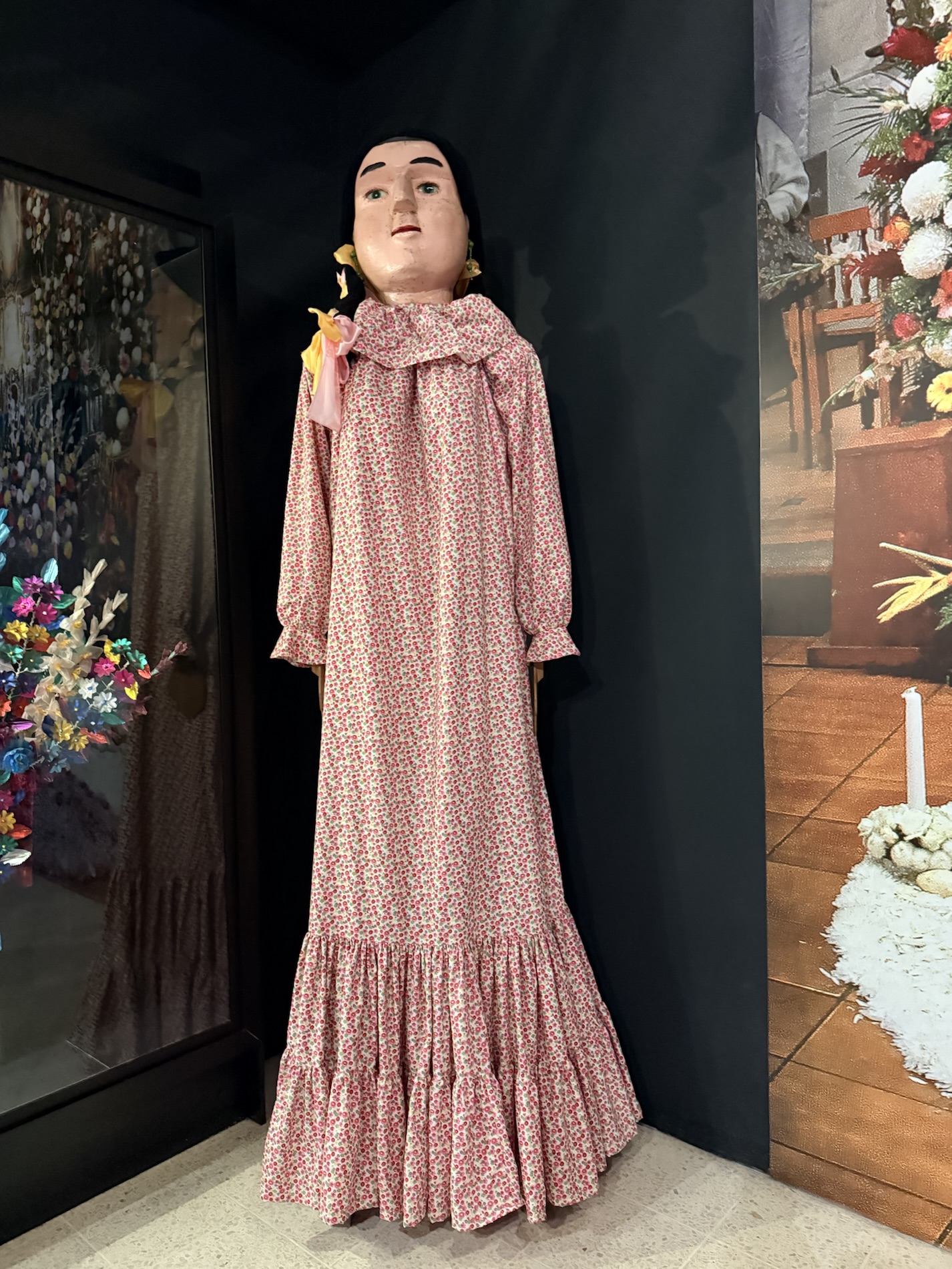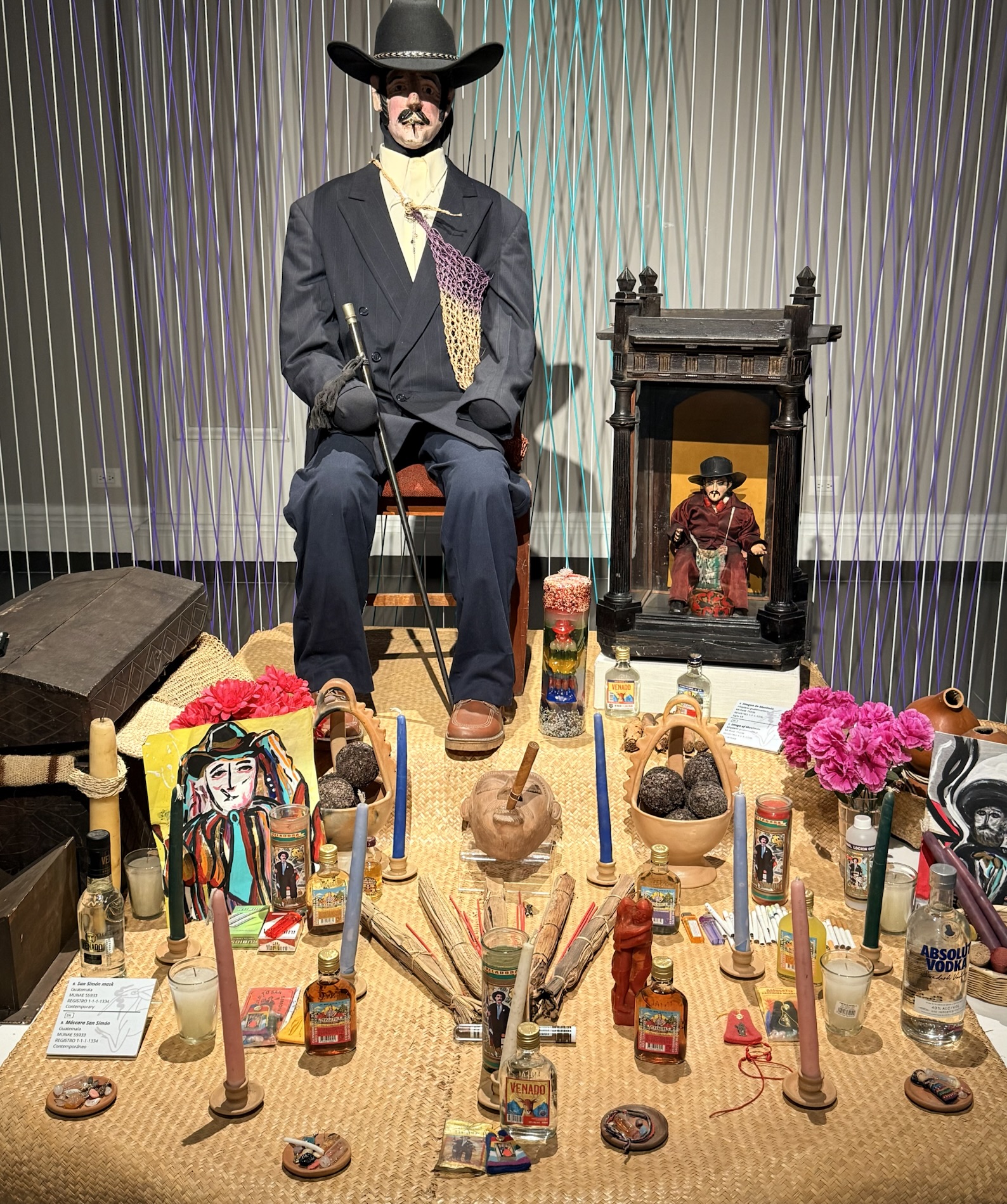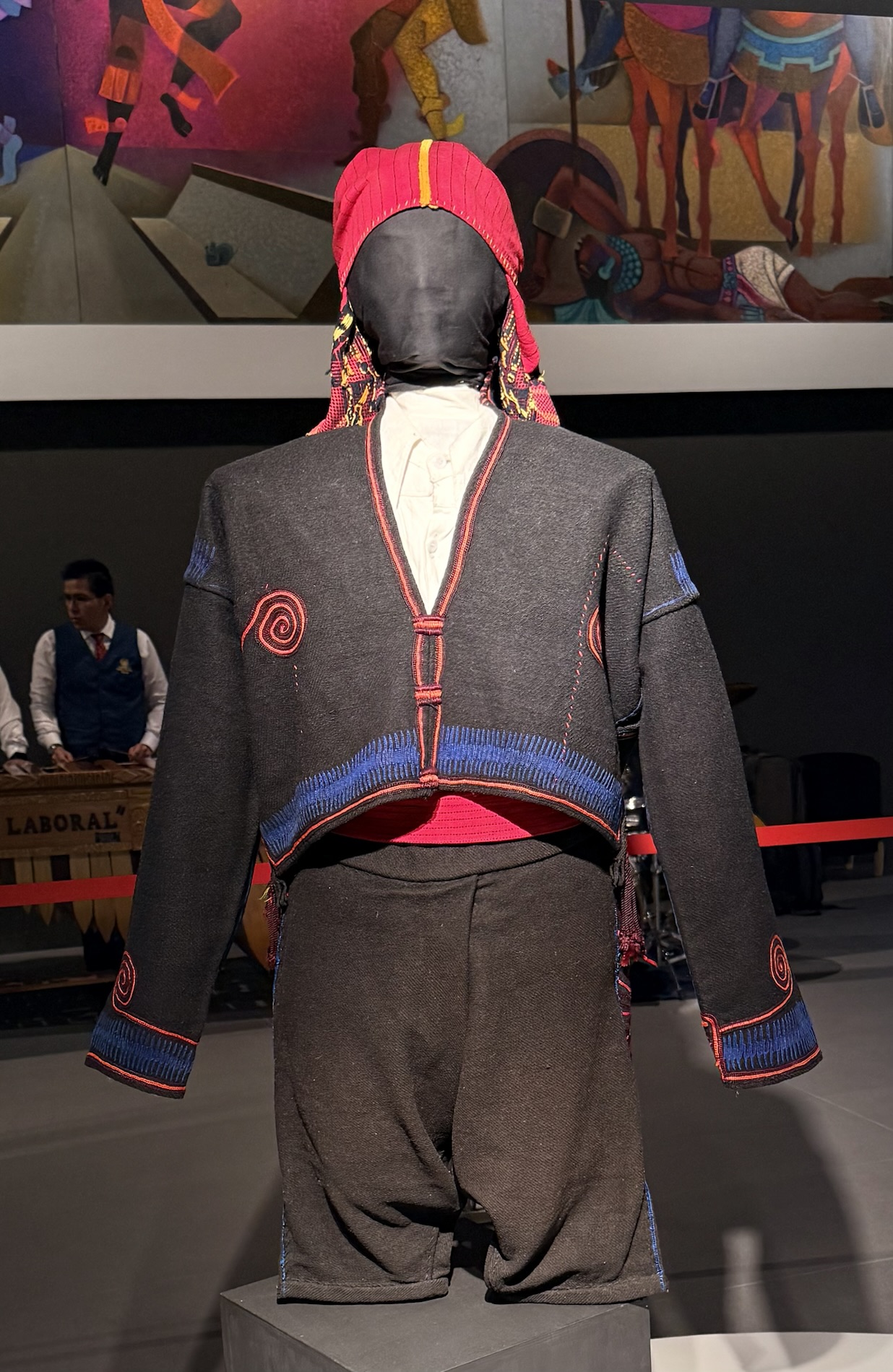 Another exhibit displays apparel worn by the cofradía members organizing religious ceremonies devoted to a patron saint, who is celebrated by a mass and then carried in procession through the streets on the feast day, accompanied by marimbas, dancers and the faithful. These rites, for which blessings will hopefully be received, help participants to bond with each other.