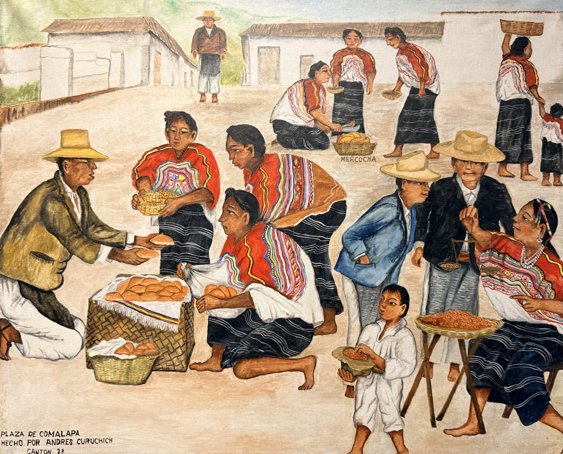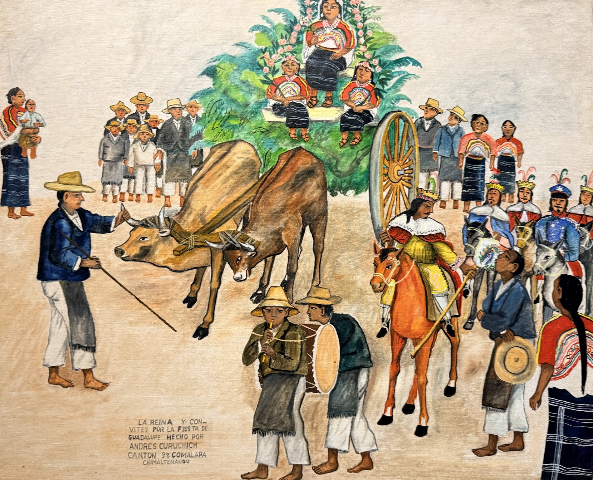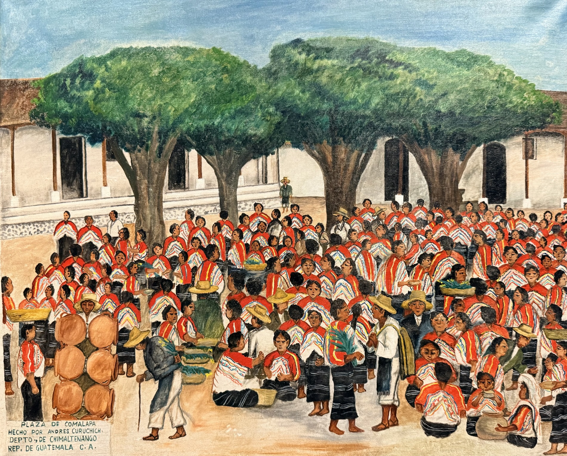 Andrés Curruchich (1891-1969) painted the traditions of his town, San Juan Comalapa, first on pieces of wood and gourds, and later on cotton cloth, using paints he prepared himself with vegetable and mineral dyes. Around 1960, the Guatemalan government recognized his merits by granting him the Order of the Quetzal. The paintings on display show the town and nearby villages, the Comalapan attire and different everyday and ceremonial activities from decades ago.