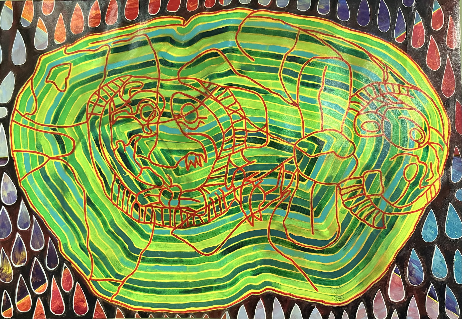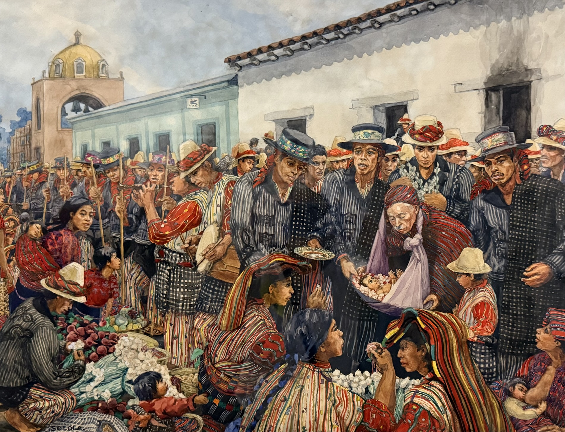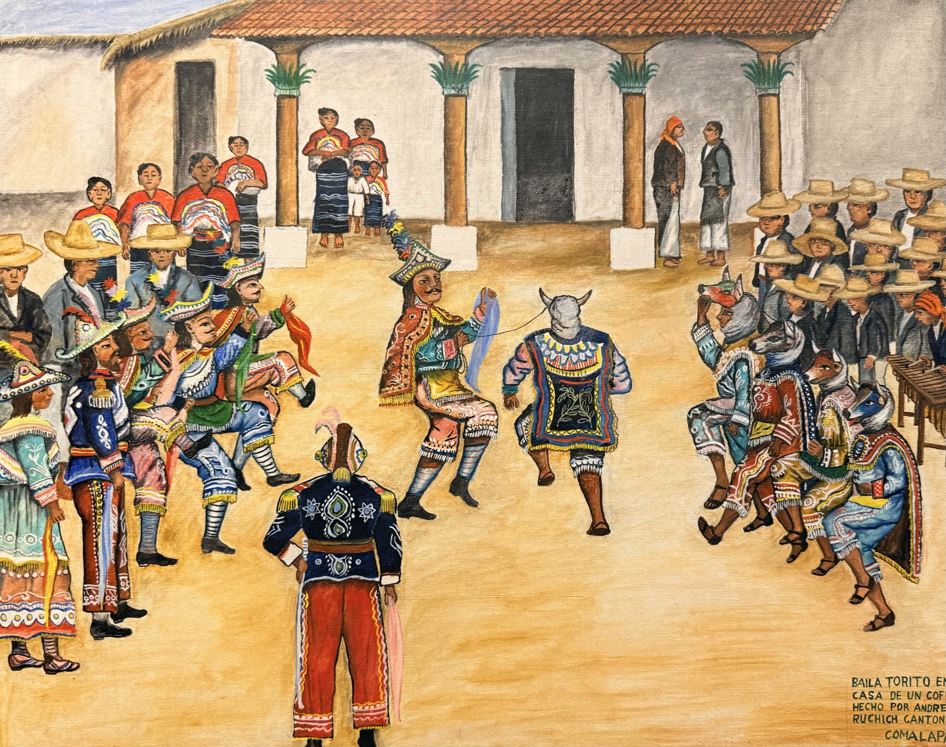 Andrés Curruchich (1891-1969) painted the traditions of his town, San Juan Comalapa, first on pieces of wood and gourds, and later on cotton cloth, using paints he prepared himself with vegetable and mineral dyes. Around 1960, the Guatemalan government recognized his merits by granting him the Order of the Quetzal. The paintings on display show the town and nearby villages, the Comalapan attire and different everyday and ceremonial activities from decades ago.