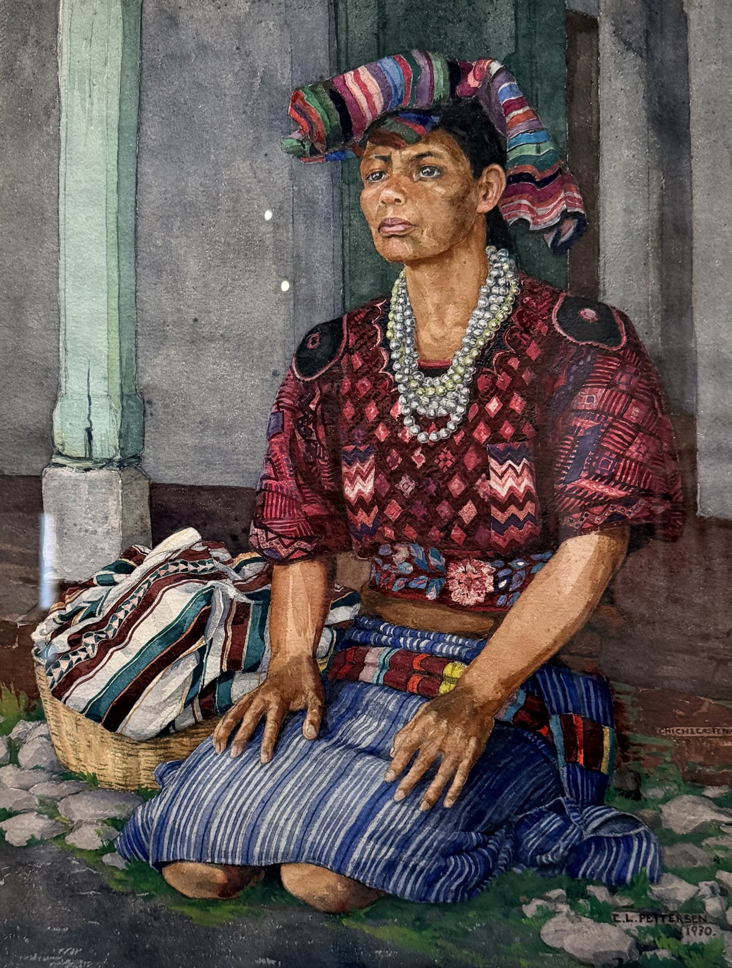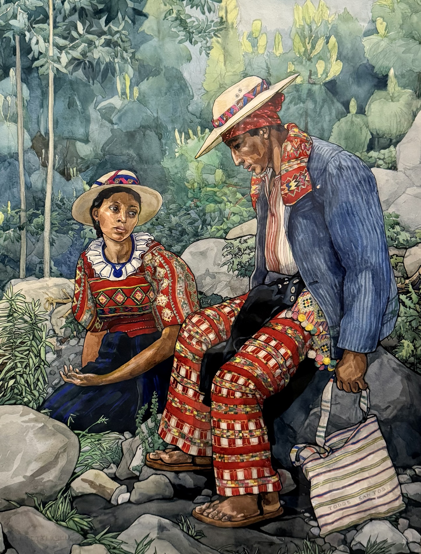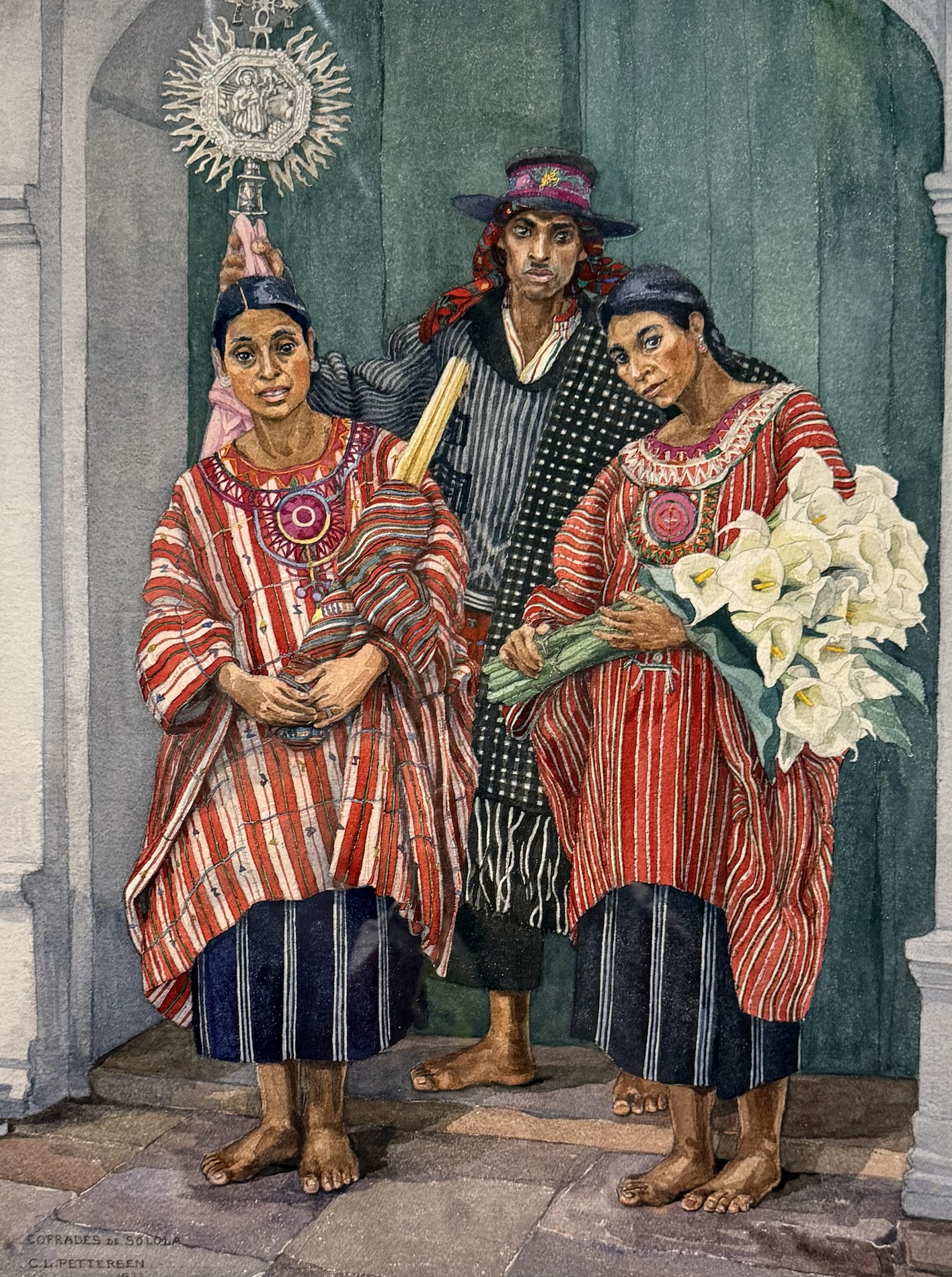 Carmen G. de Pettersen (Guatemala, 1900-1991) painted detailed watercolors in which she portrays people wearing ceremonial, cofradía, and everyday indigenous attire from different Guatemalan regions. Women and men are pictured in different locations, adorned with traditional silver jewelry and complemented with insignias and other luxury items. In addition to the paintings, some of the original garments depicted in the artist’s paintings are displayed.