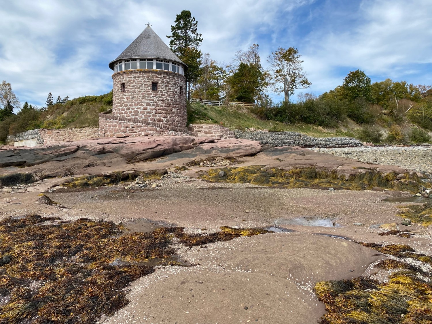 We took a short walk on the red sand beach then went on to the Cape Tryon Lighthouse and the red cliffs of Cape Tryon. The unassuming wooden lighthouse, which stands 33.4m tall is perched near the edge of a gorgeous sandstone cliff on Cousins Shore. The top of the lighthouse was lying on the ground and we couldn’t help but wonder if it was blown off by Hurricane Fiona.